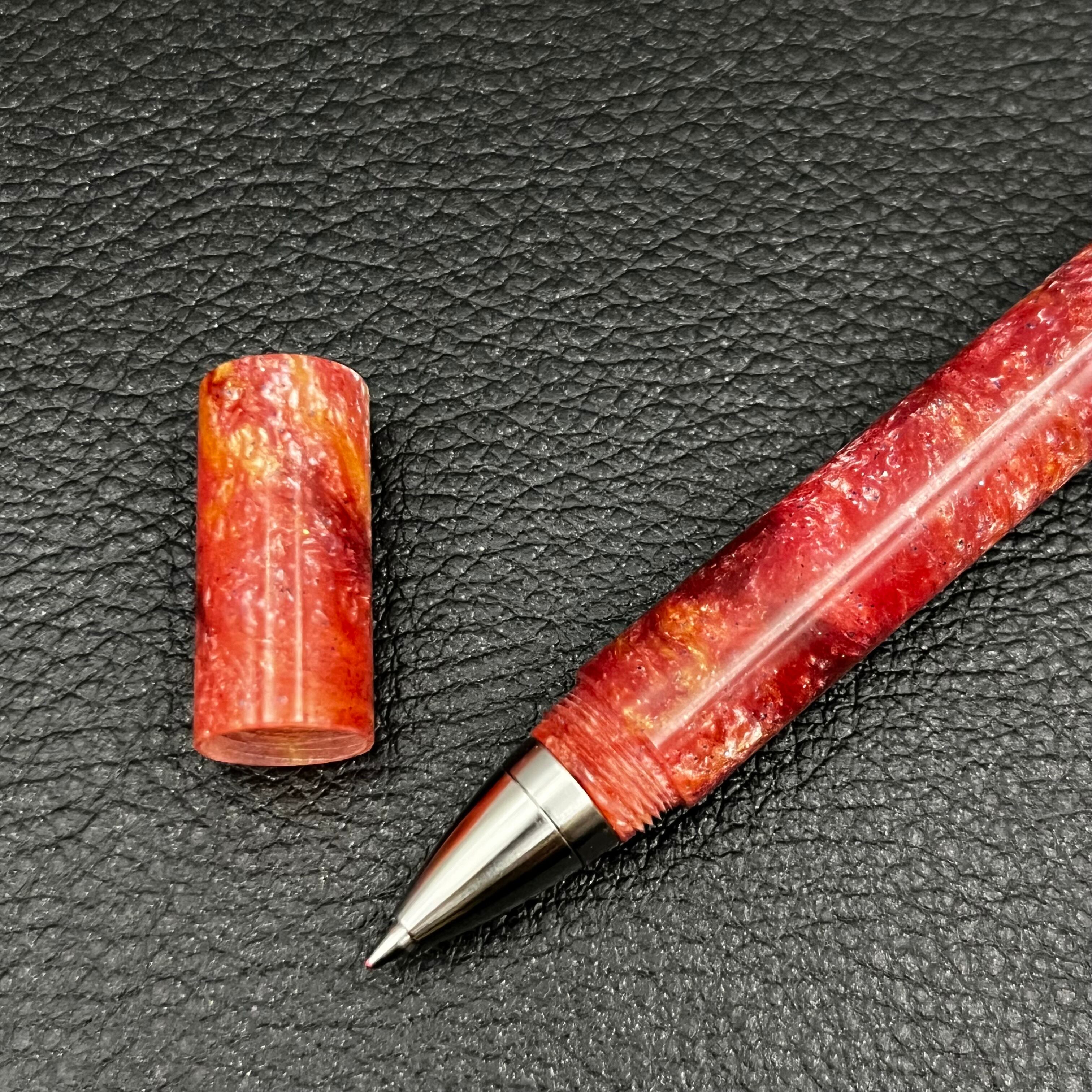 金具職人さんが万年筆「粋」の制作で得た樹脂加工の技術と知識を活かして制作したこだわりの1本です。オリジナルアクリル透明ペン置きもセットになっています。
