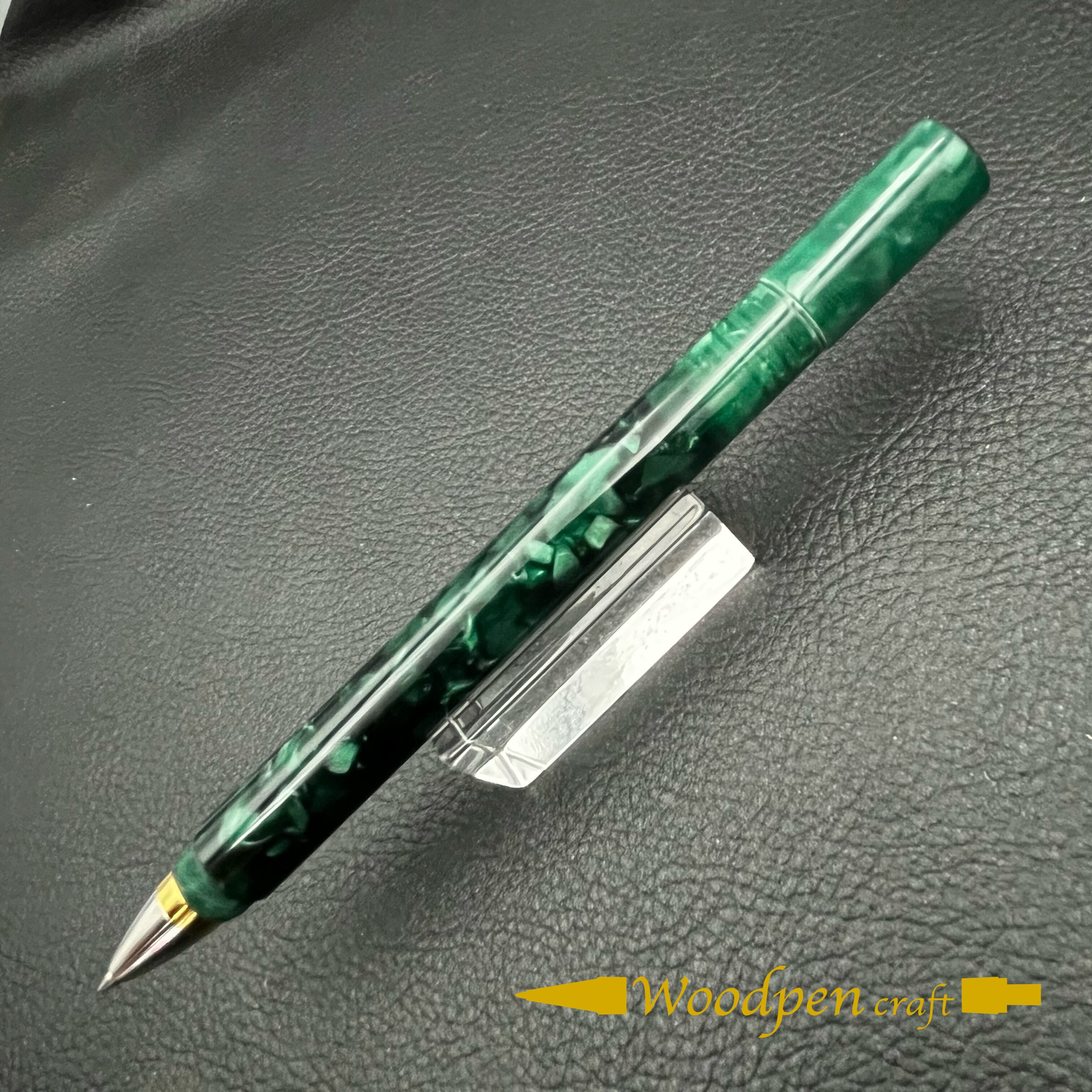 金具職人さんが万年筆「粋」の制作で得た樹脂加工の技術と知識を活かして制作したこだわりの1本です。オリジナルアクリル透明ペン置きもセットになっています。