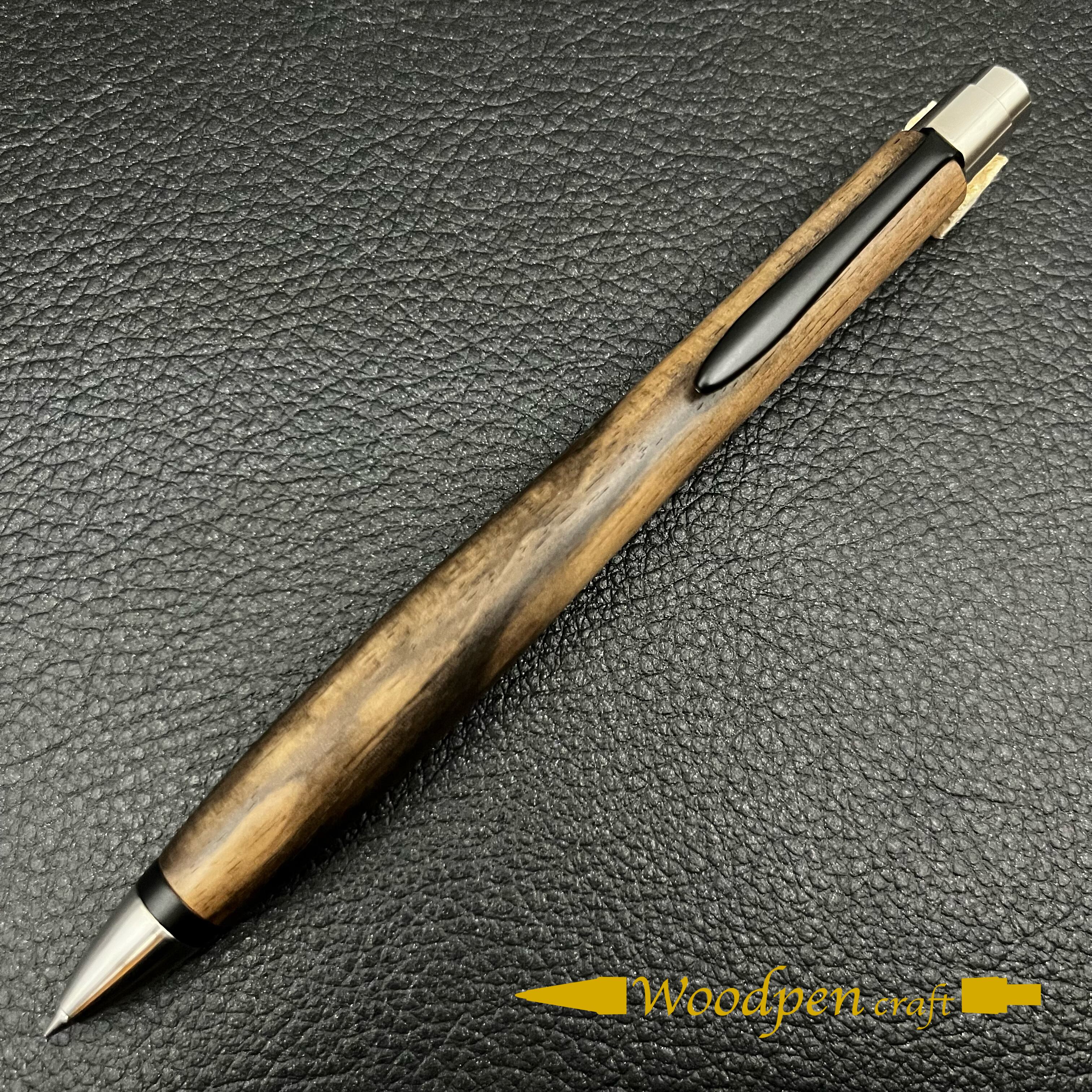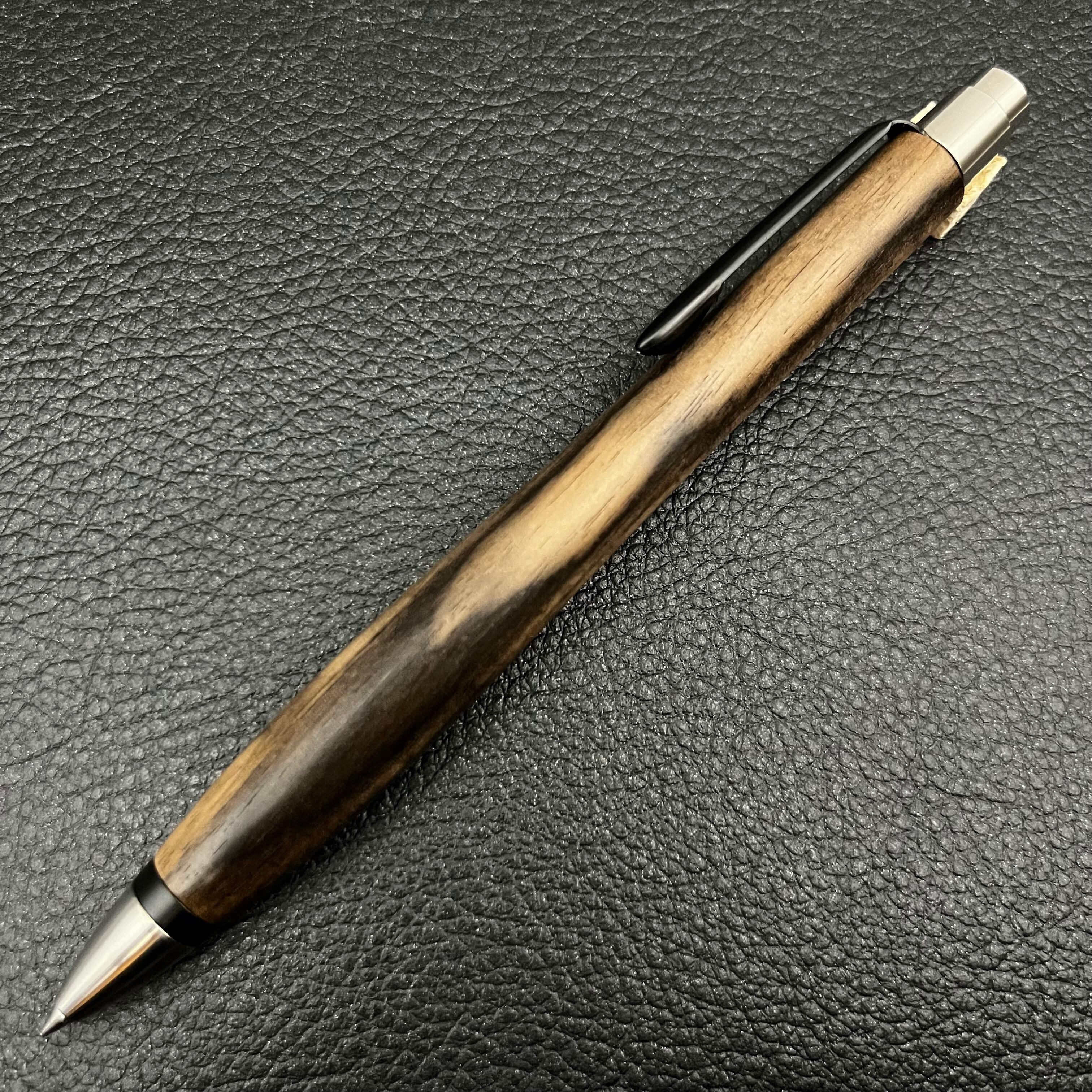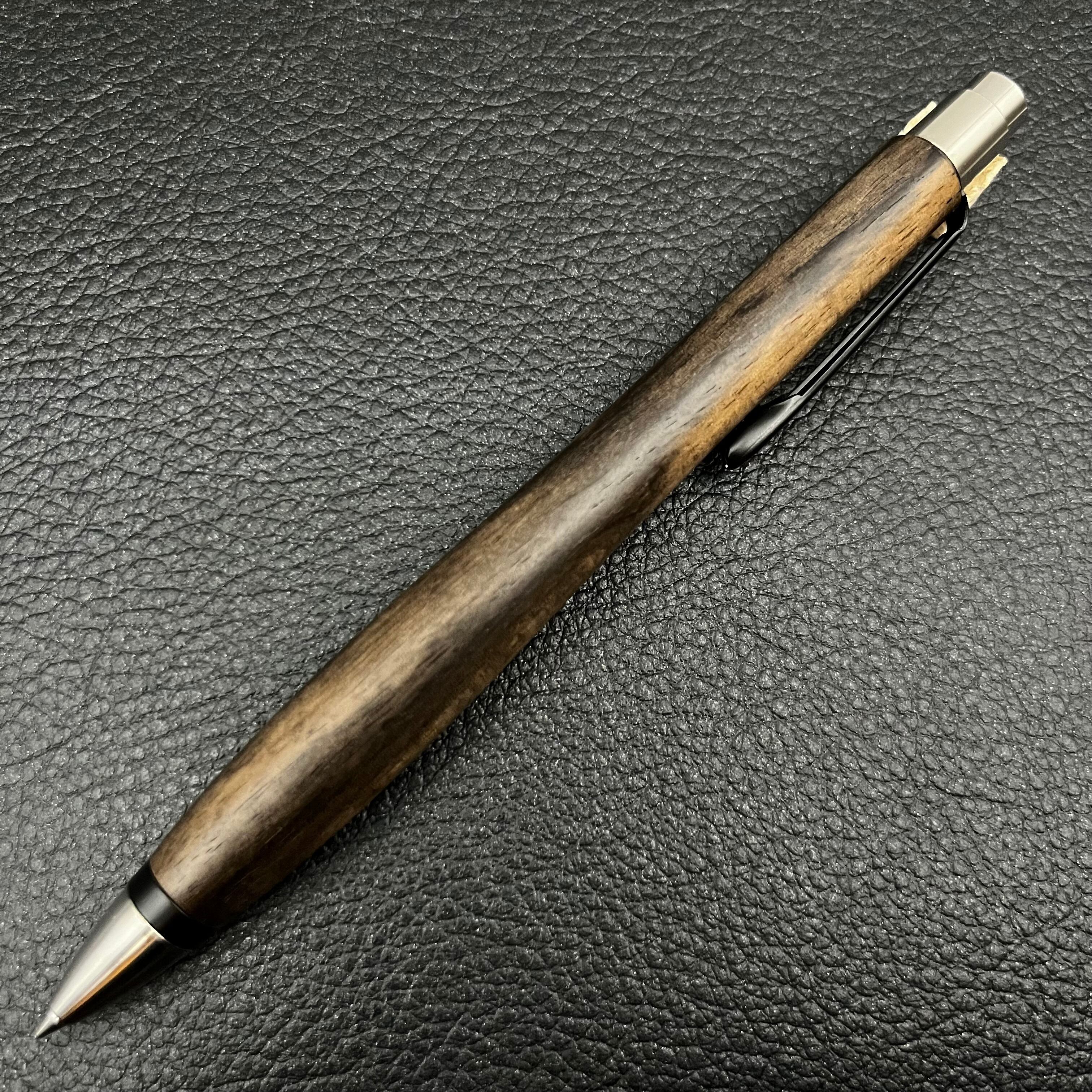 ボールペンのノックシステムは、ドイツ最高のクリックメカニズムを採用してあります。このメカニズムはユニークな機構のため、クリックしたときのカチカチ音が静かで、どんな場所でも気兼ねなく使うことができます。滑らかに動くこのプッシュ感覚を一度味わうと他には戻れなくなってしまうほどの魅力があります。 100分の1単位の加工精度で削り出されたペン先は、軸ブレも全くありません。