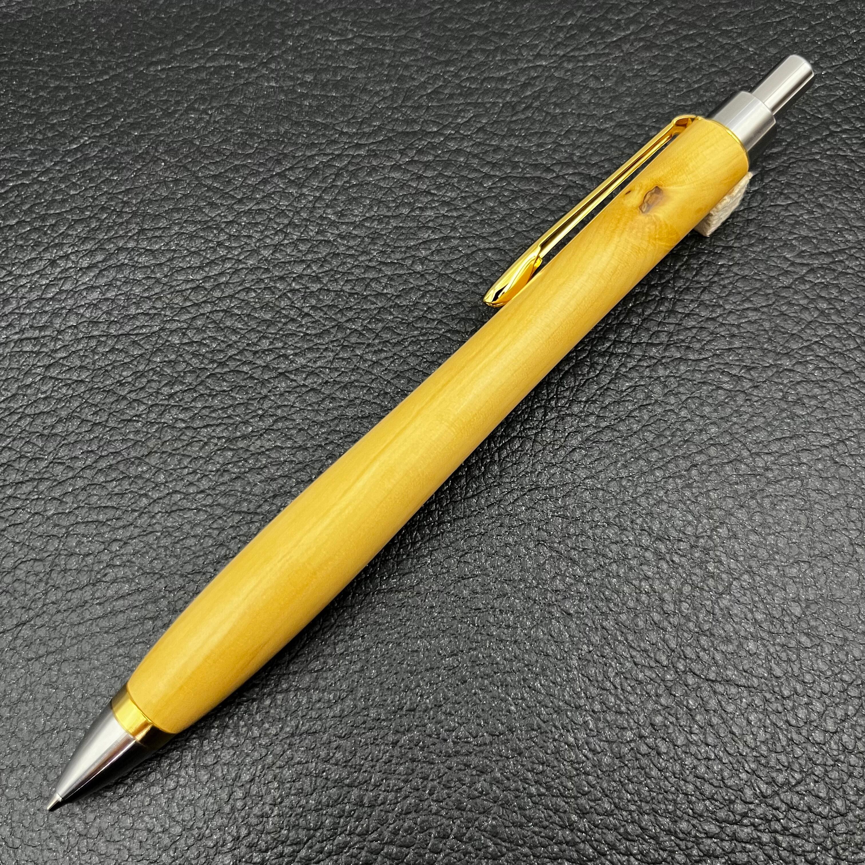 ペンシルは軸ブレが起こりにくい固定式口金を採用し、木の表情を最大限に楽しめる木軸の長さと、書き心地にこだわったバランスで金具を設計してあります。