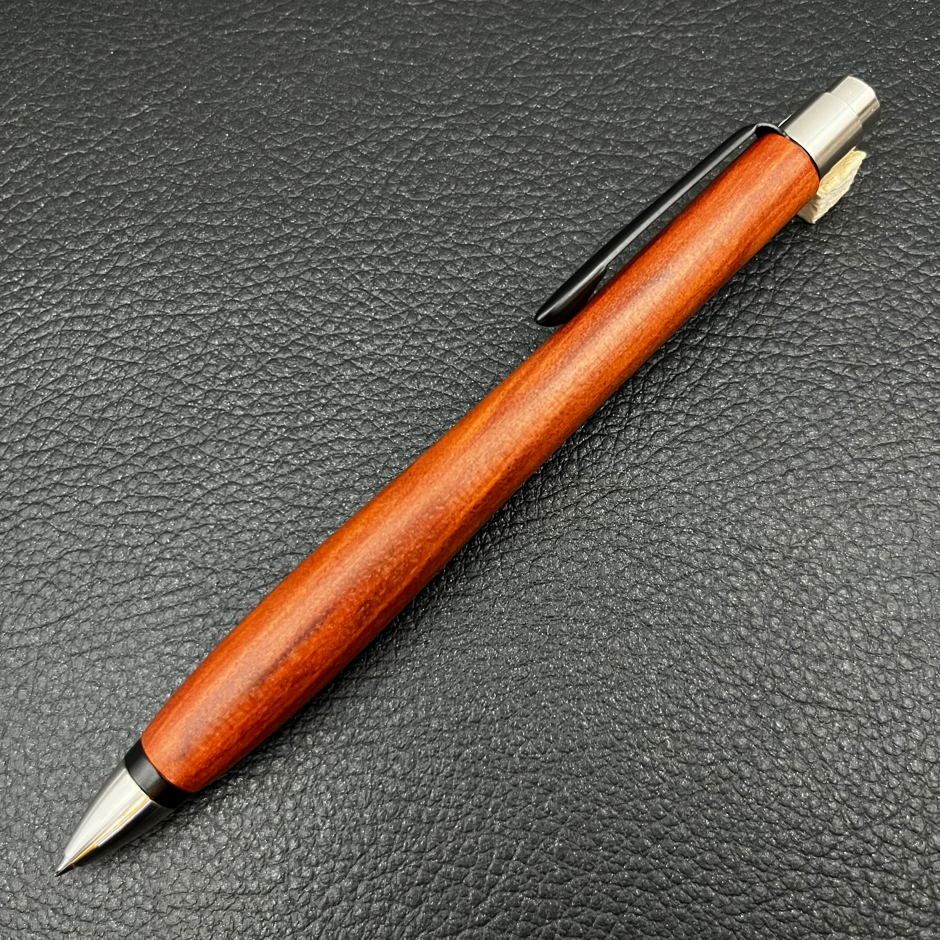 ボールペンのノックシステムは、ドイツ最高のクリックメカニズムを採用してあります。このメカニズムはユニークな機構のため、クリックしたときのカチカチ音が静かで、どんな場所でも気兼ねなく使うことができます。滑らかに動くこのプッシュ感覚を一度味わうと他には戻れなくなってしまうほどの魅力があります。 100分の1単位の加工精度で削り出されたペン先は、軸ブレも全くありません。