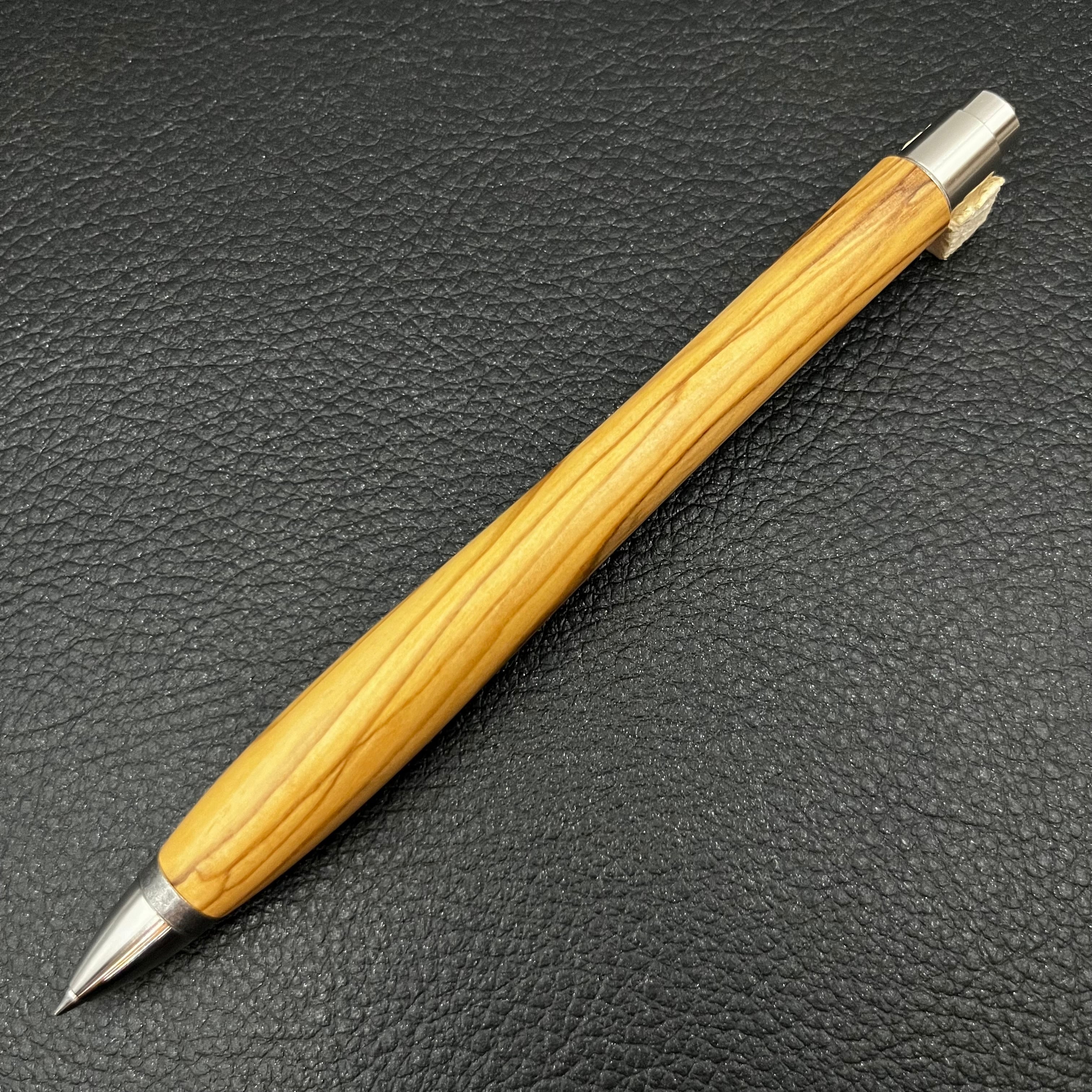 ボールペンのノックシステムは、ドイツ最高のクリックメカニズムを採用してあります。このメカニズムはユニークな機構のため、クリックしたときのカチカチ音が静かで、どんな場所でも気兼ねなく使うことができます。滑らかに動くこのプッシュ感覚を一度味わうと他には戻れなくなってしまうほどの魅力があります。 100分の1単位の加工精度で削り出されたペン先は、軸ブレも全くありません。