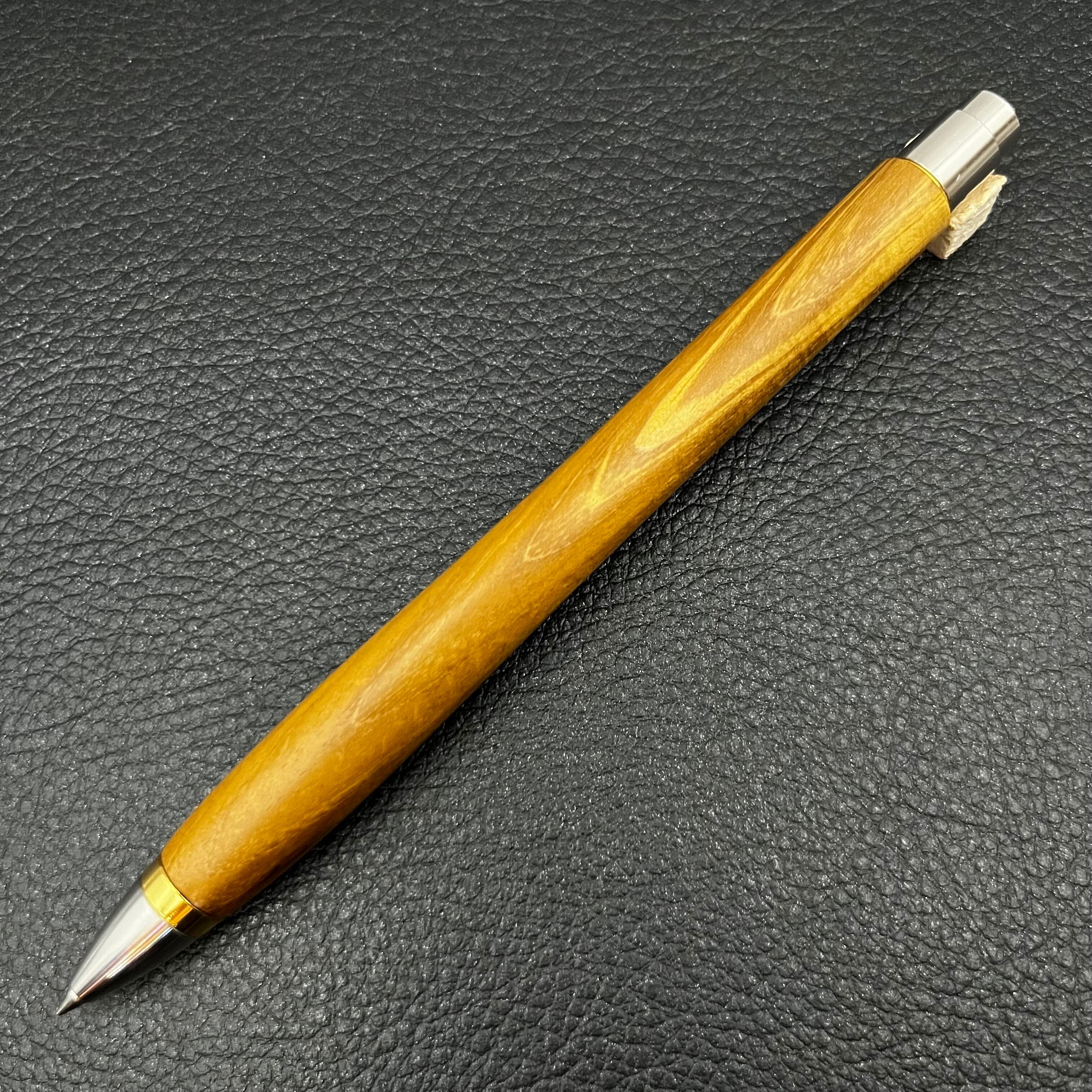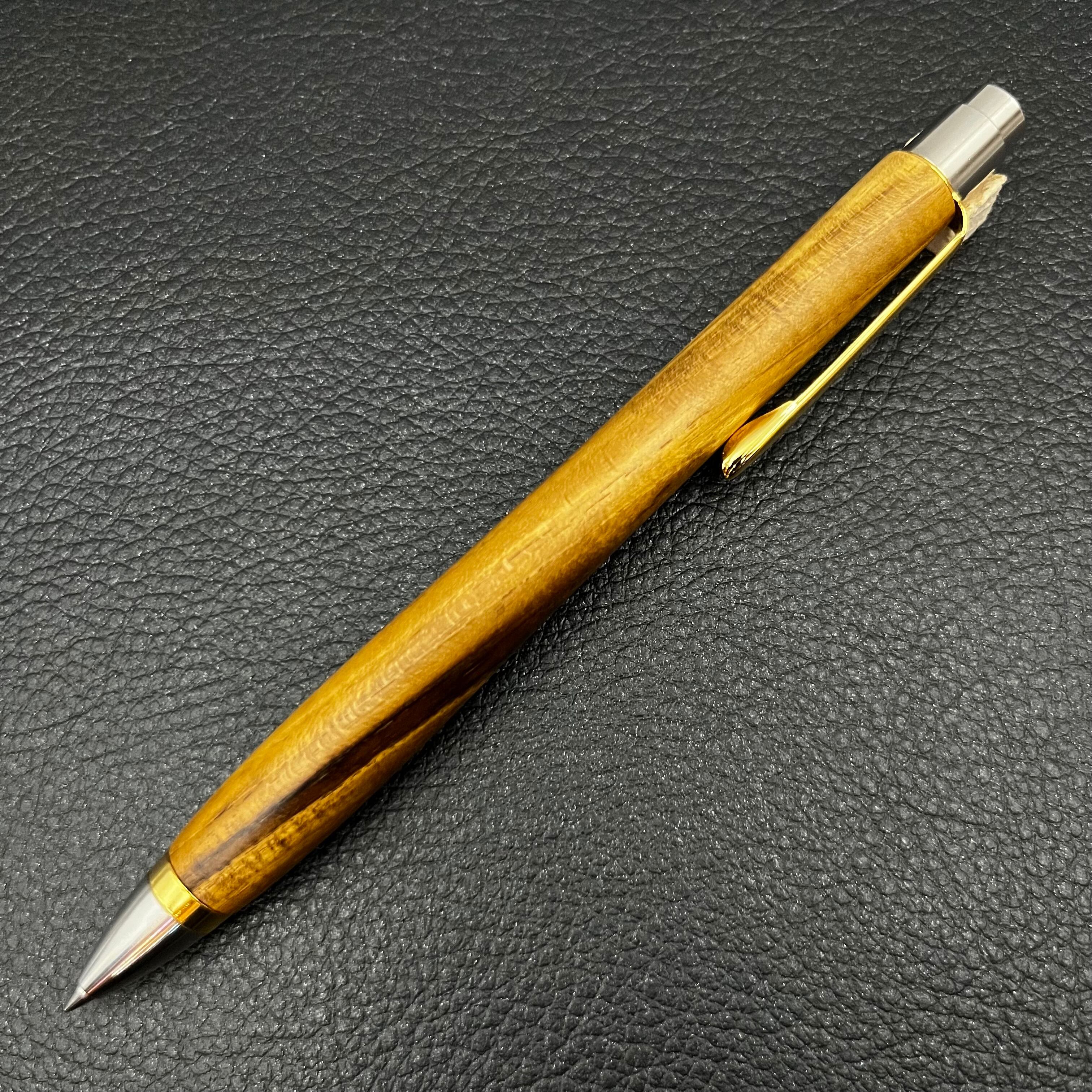 ボールペンのノックシステムは、ドイツ最高のクリックメカニズムを採用してあります。このメカニズムはユニークな機構のため、クリックしたときのカチカチ音が静かで、どんな場所でも気兼ねなく使うことができます。滑らかに動くこのプッシュ感覚を一度味わうと他には戻れなくなってしまうほどの魅力があります。 100分の1単位の加工精度で削り出されたペン先は、軸ブレも全くありません。