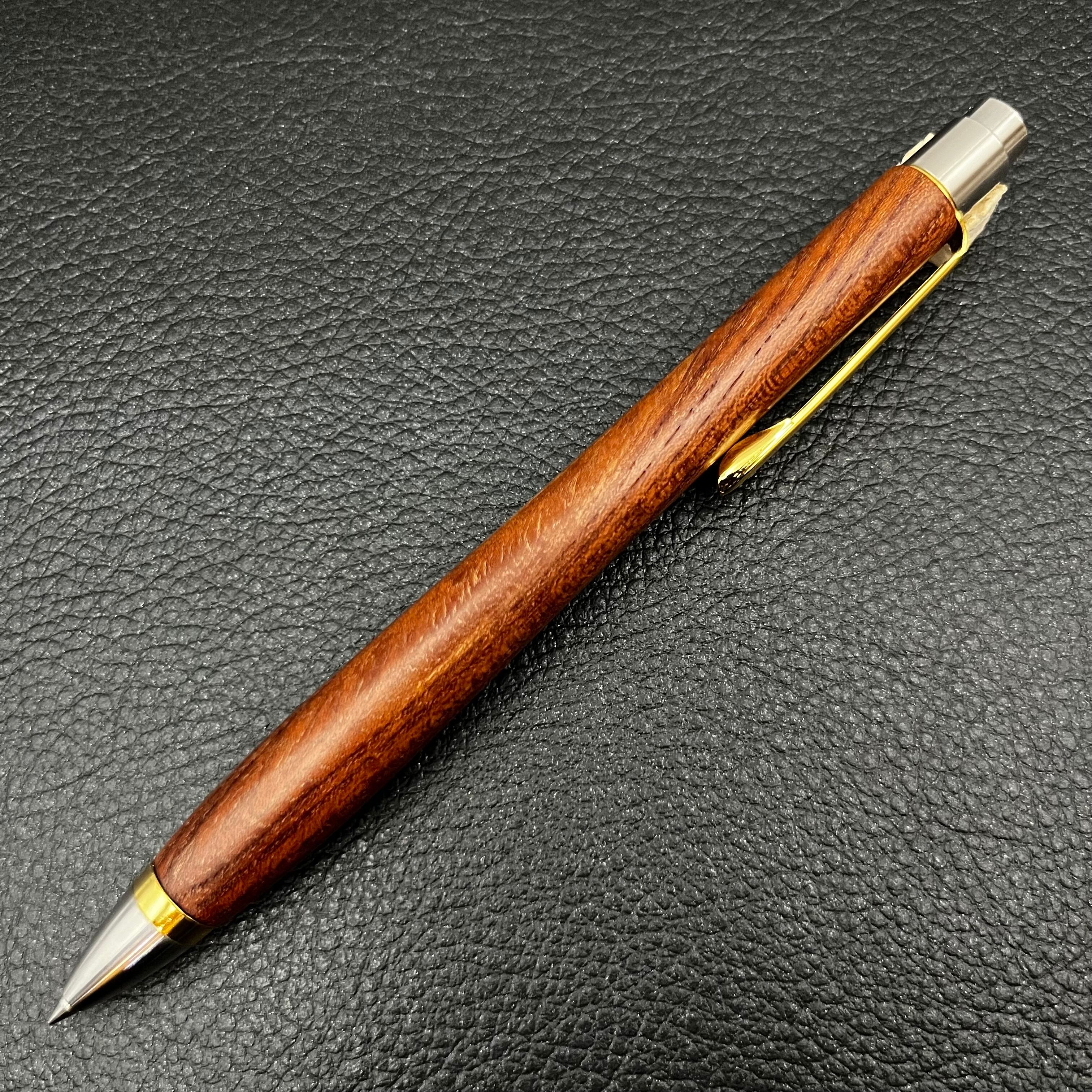ペンに使った木は、推定50年以上も前に雷に打たれた大枝を強剪定したもので、巨木と雷の影響で普通の欅と色合いが全く違い濃いです。
