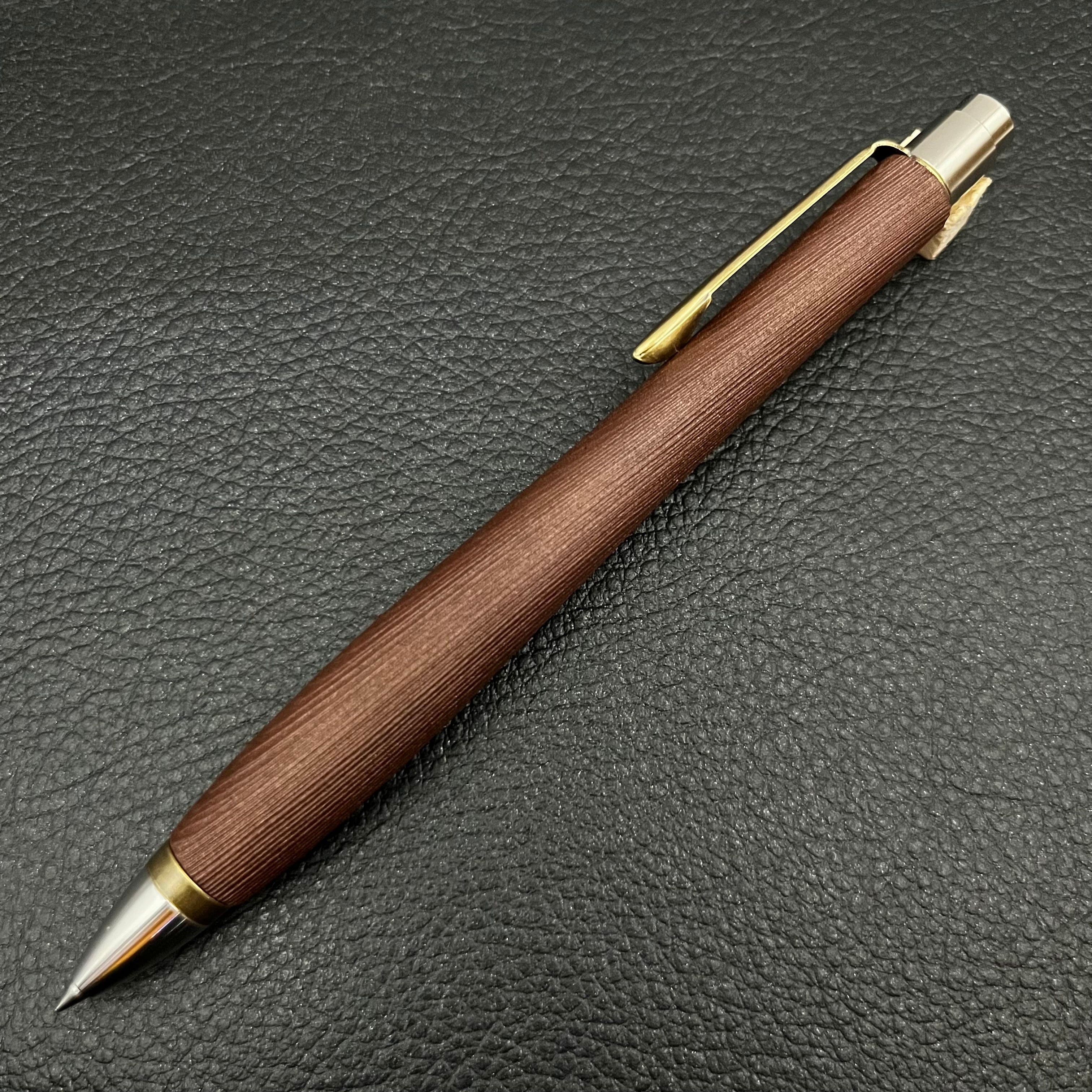 ボールペンのノックシステムは、ドイツ最高のクリックメカニズムを採用してあります。このメカニズムはユニークな機構のため、クリックしたときのカチカチ音が静かで、どんな場所でも気兼ねなく使うことができます。滑らかに動くこのプッシュ感覚を一度味わうと他には戻れなくなってしまうほどの魅力があります。 100分の1単位の加工精度で削り出されたペン先は、軸ブレも全くありません。