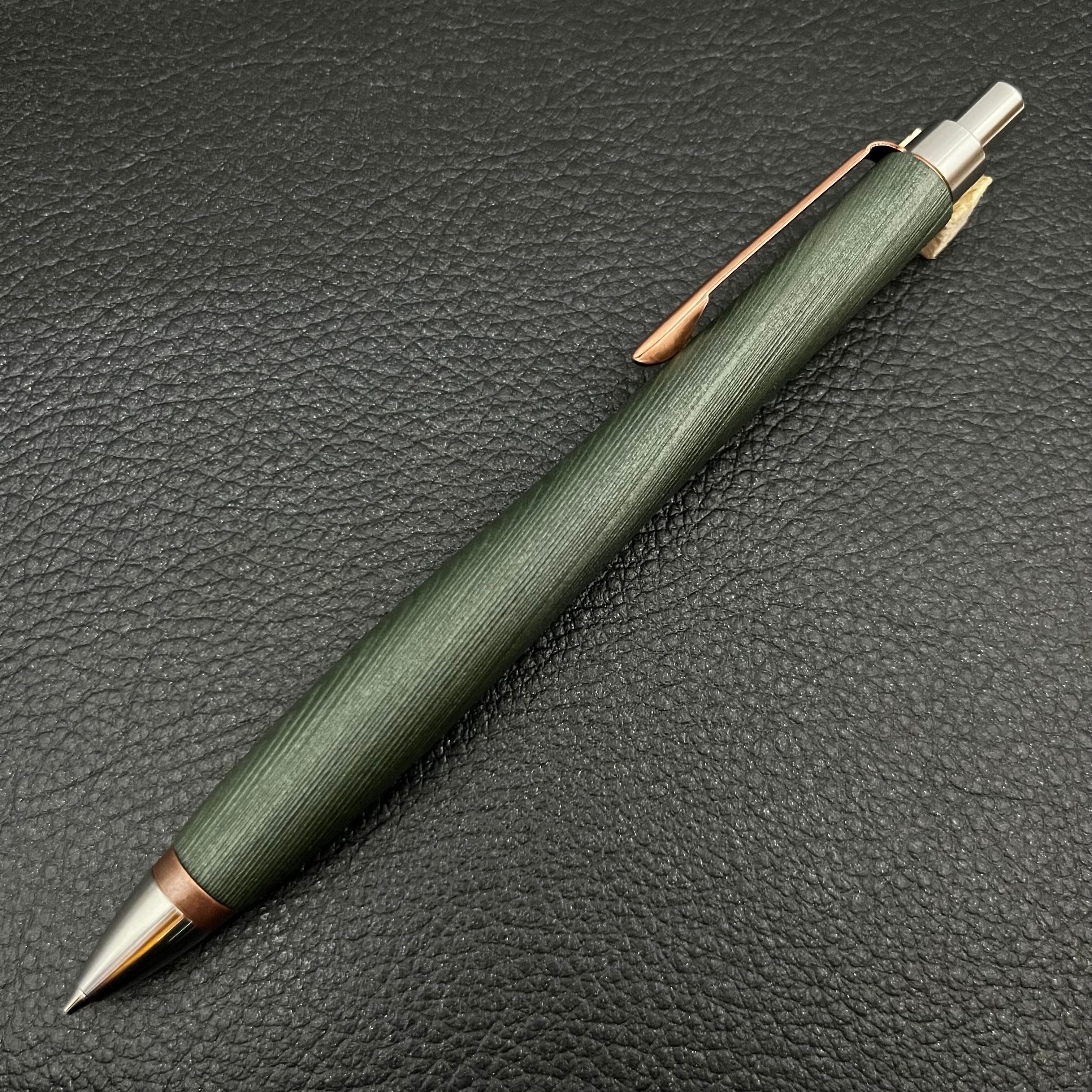 ペンシルは軸ブレが起こりにくい固定式口金を採用し、木の表情を最大限に楽しめる木軸の長さと、書き心地にこだわったバランスで金具を設計してあります。