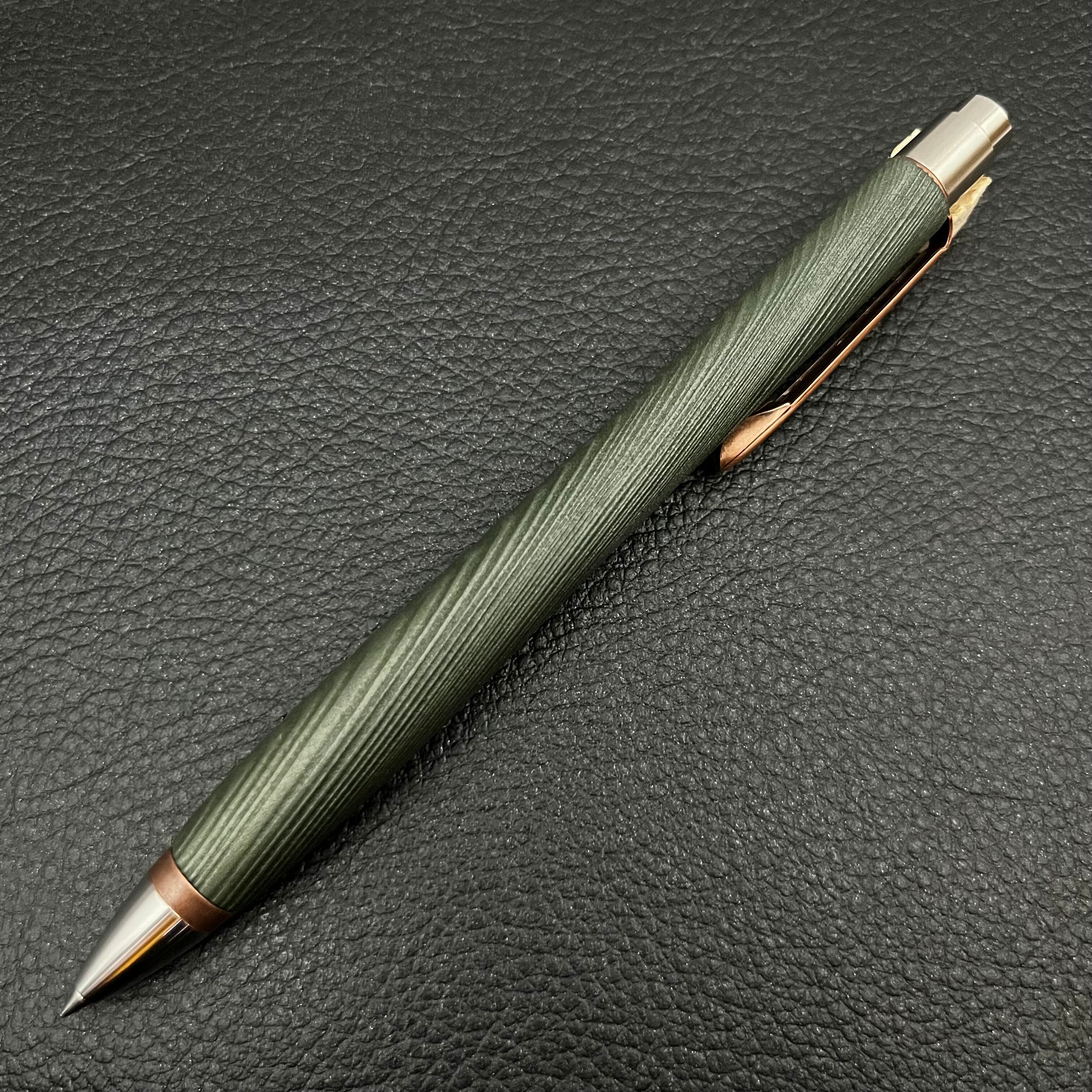 ボールペンのノックシステムは、ドイツ最高のクリックメカニズムを採用してあります。このメカニズムはユニークな機構のため、クリックしたときのカチカチ音が静かで、どんな場所でも気兼ねなく使うことができます。滑らかに動くこのプッシュ感覚を一度味わうと他には戻れなくなってしまうほどの魅力があります。 100分の1単位の加工精度で削り出されたペン先は、軸ブレも全くありません。