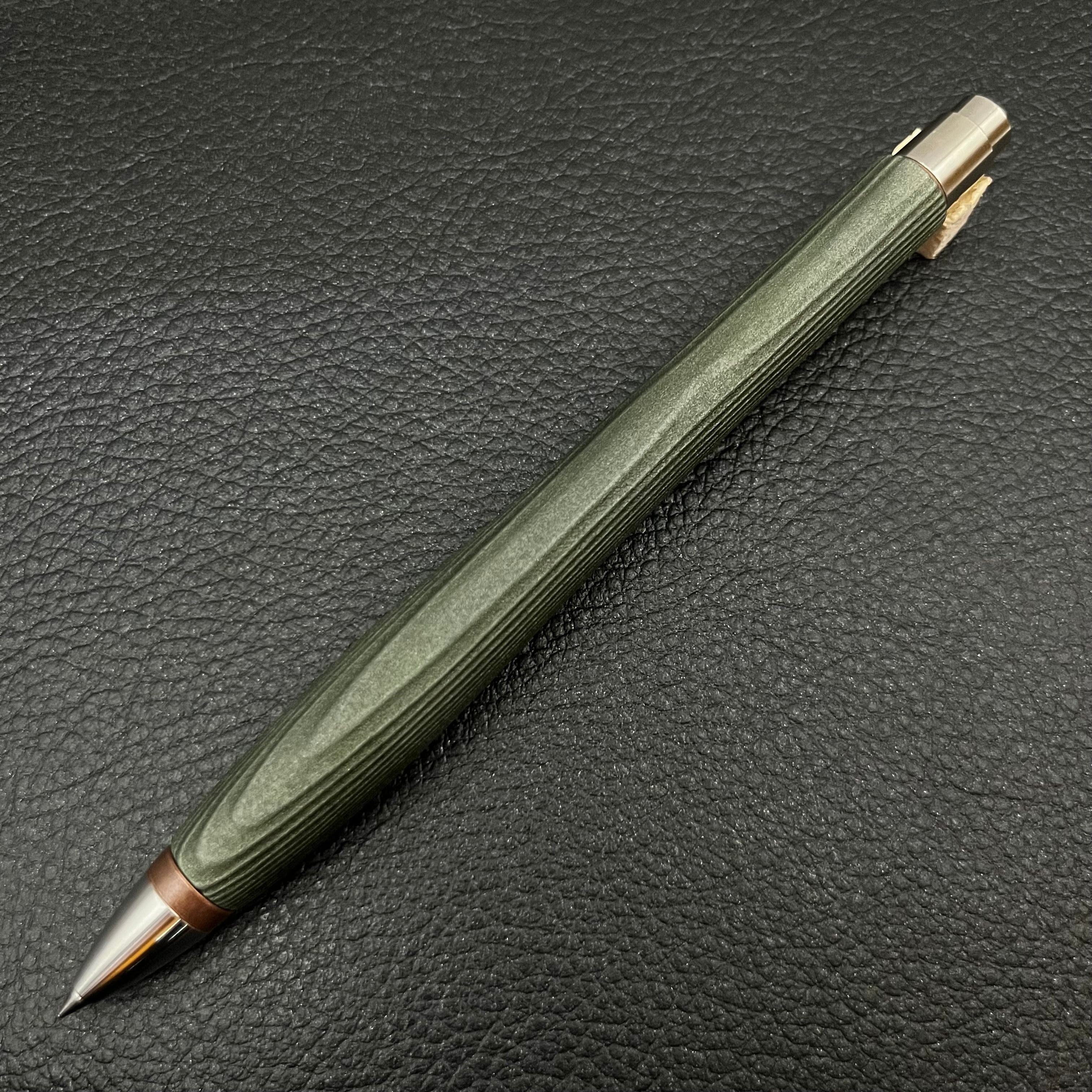 ボールペンのノックシステムは、ドイツ最高のクリックメカニズムを採用してあります。このメカニズムはユニークな機構のため、クリックしたときのカチカチ音が静かで、どんな場所でも気兼ねなく使うことができます。滑らかに動くこのプッシュ感覚を一度味わうと他には戻れなくなってしまうほどの魅力があります。 100分の1単位の加工精度で削り出されたペン先は、軸ブレも全くありません。