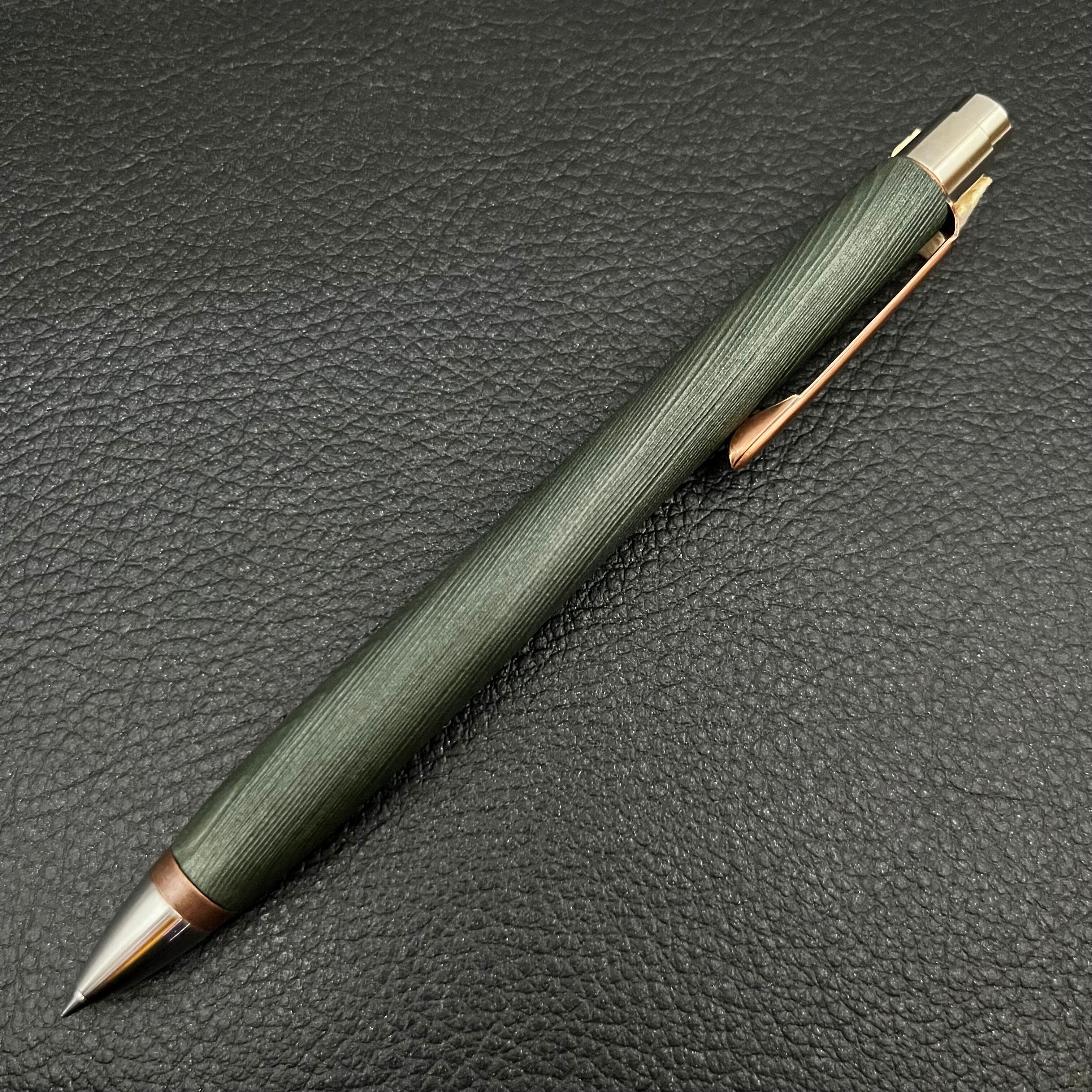 ボールペンのノックシステムは、ドイツ最高のクリックメカニズムを採用してあります。このメカニズムはユニークな機構のため、クリックしたときのカチカチ音が静かで、どんな場所でも気兼ねなく使うことができます。滑らかに動くこのプッシュ感覚を一度味わうと他には戻れなくなってしまうほどの魅力があります。 100分の1単位の加工精度で削り出されたペン先は、軸ブレも全くありません。