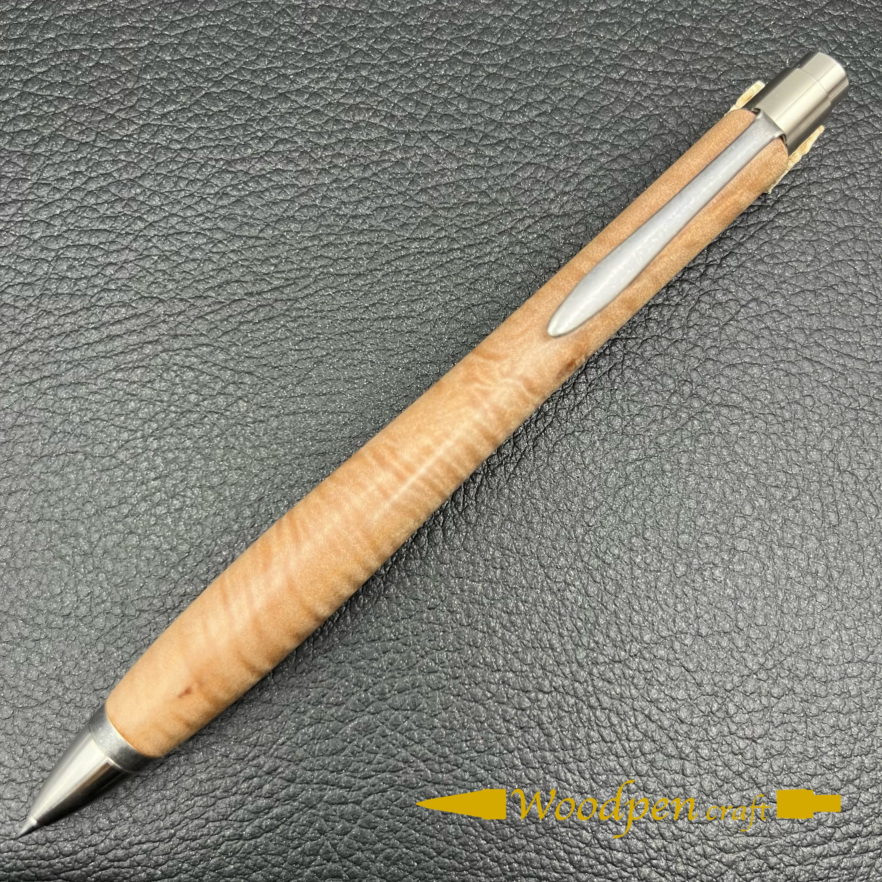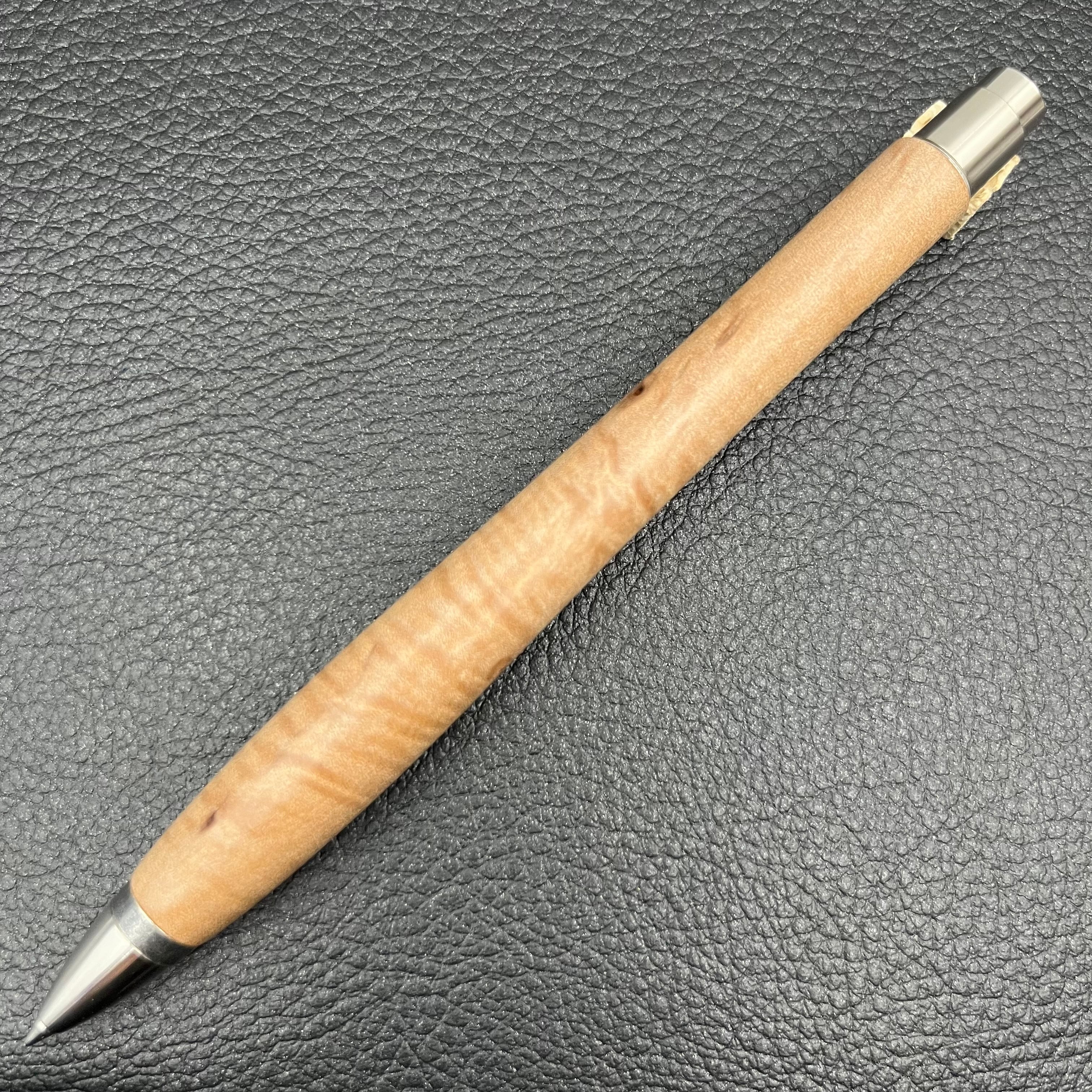 ボールペンのノックシステムは、ドイツ最高のクリックメカニズムを採用してあります。このメカニズムはユニークな機構のため、クリックしたときのカチカチ音が静かで、どんな場所でも気兼ねなく使うことができます。滑らかに動くこのプッシュ感覚を一度味わうと他には戻れなくなってしまうほどの魅力があります。 100分の1単位の加工精度で削り出されたペン先は、軸ブレも全くありません。