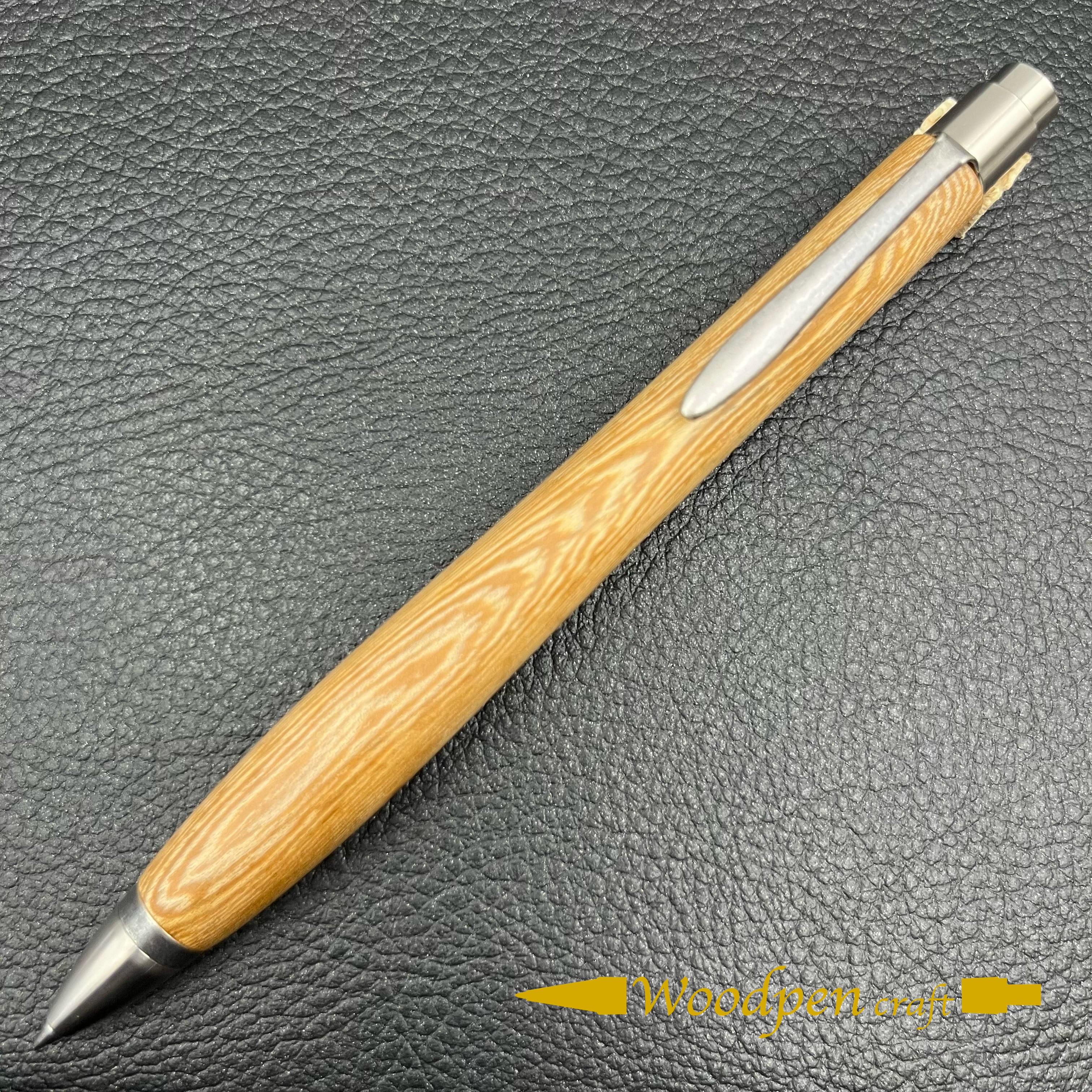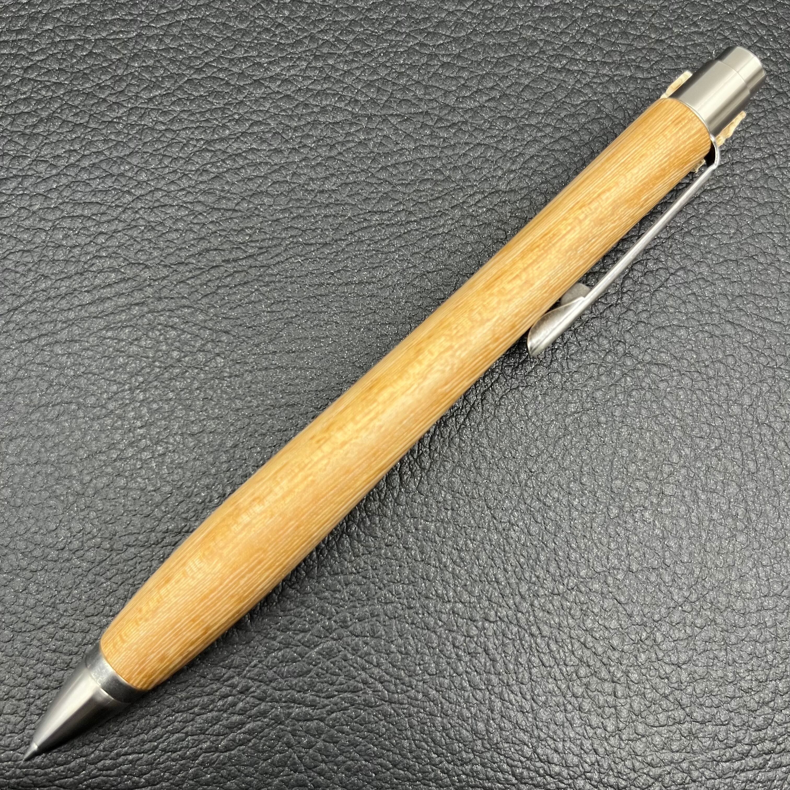 ボールペンのノックシステムは、ドイツ最高のクリックメカニズムを採用してあります。このメカニズムはユニークな機構のため、クリックしたときのカチカチ音が静かで、どんな場所でも気兼ねなく使うことができます。滑らかに動くこのプッシュ感覚を一度味わうと他には戻れなくなってしまうほどの魅力があります。 100分の1単位の加工精度で削り出されたペン先は、軸ブレも全くありません。