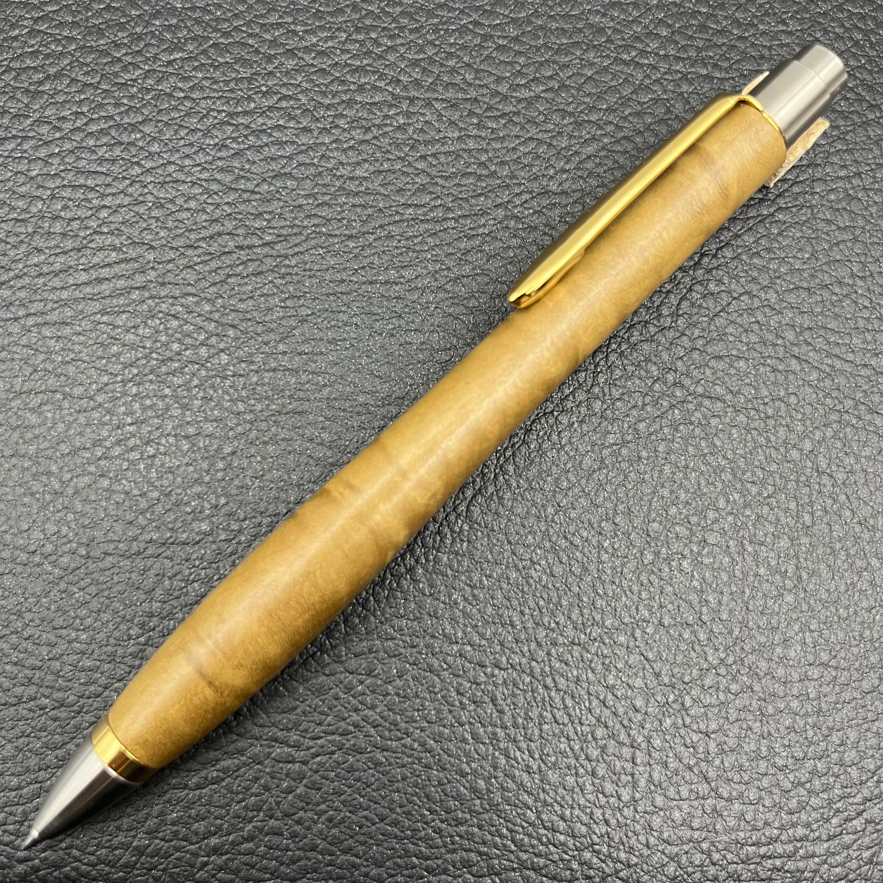 ボールペンのノックシステムは、ドイツ最高のクリックメカニズムを採用してあります。このメカニズムはユニークな機構のため、クリックしたときのカチカチ音が静かで、どんな場所でも気兼ねなく使うことができます。滑らかに動くこのプッシュ感覚を一度味わうと他には戻れなくなってしまうほどの魅力があります。 100分の1単位の加工精度で削り出されたペン先は、軸ブレも全くありません。