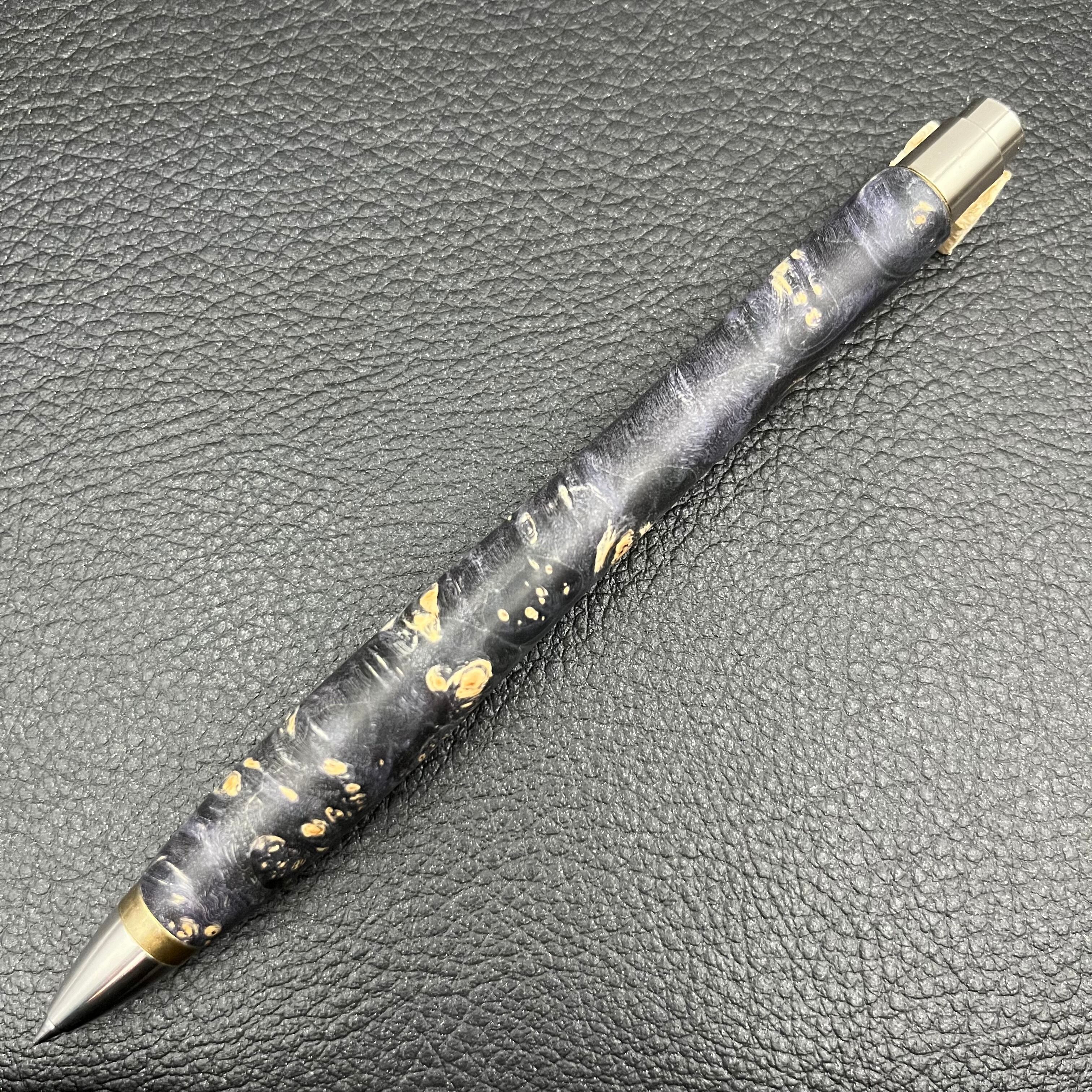 ※トネリコバノカエデのバール(こぶ)に染料と樹脂を浸み込ませて安定化させた木材