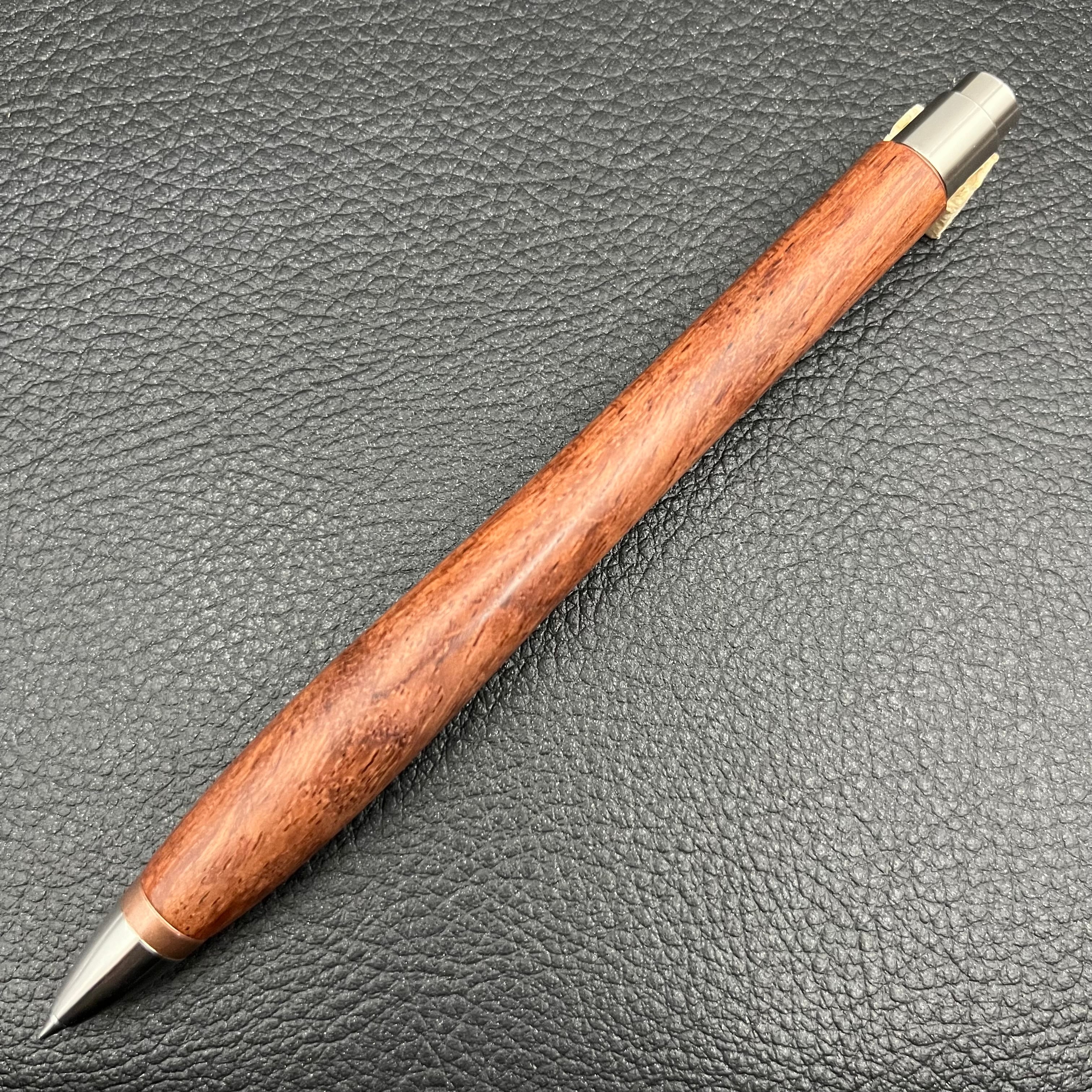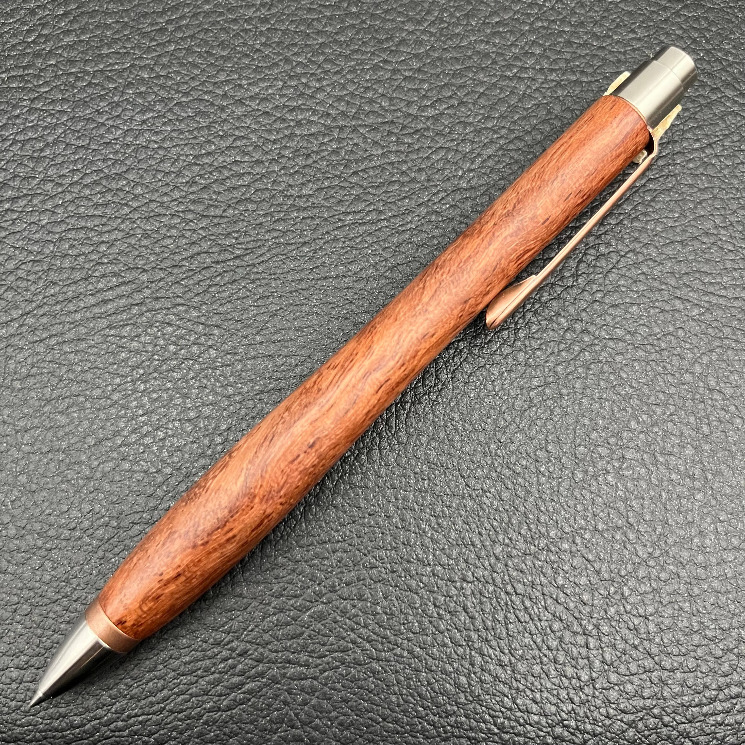 ボールペンのノックシステムは、ドイツ最高のクリックメカニズムを採用してあります。このメカニズムはユニークな機構のため、クリックしたときのカチカチ音が静かで、どんな場所でも気兼ねなく使うことができます。滑らかに動くこのプッシュ感覚を一度味わうと他には戻れなくなってしまうほどの魅力があります。 100分の1単位の加工精度で削り出されたペン先は、軸ブレも全くありません。