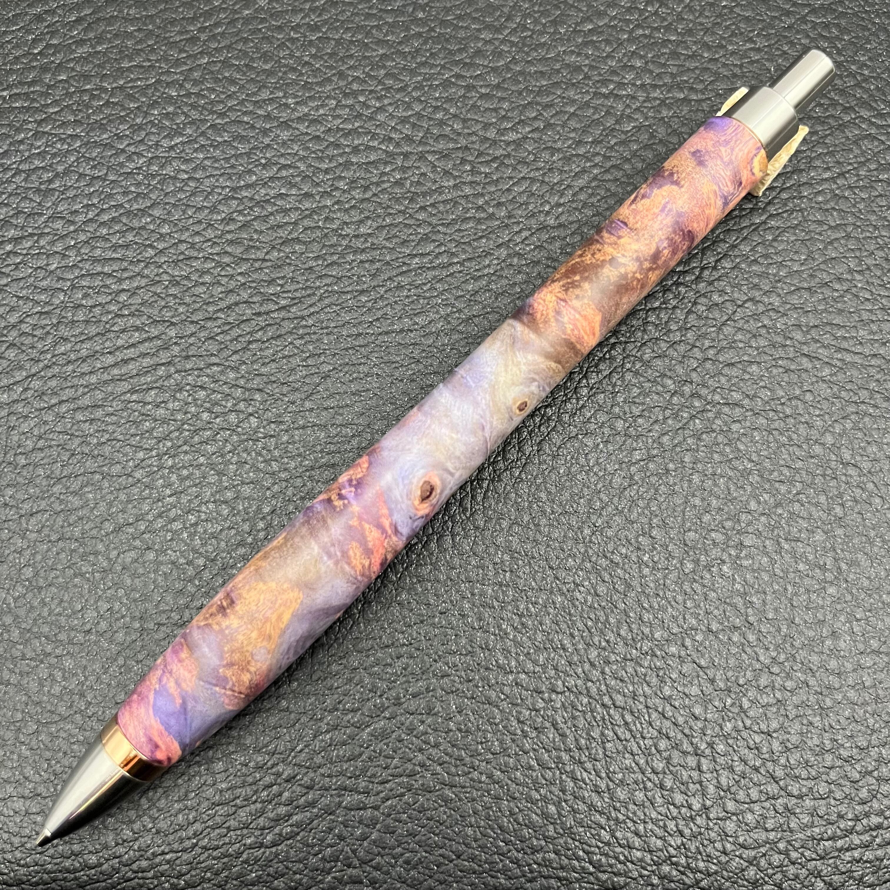 ※トネリコバノカエデのバール(こぶ)に染料と樹脂を浸み込ませて安定化させた木材