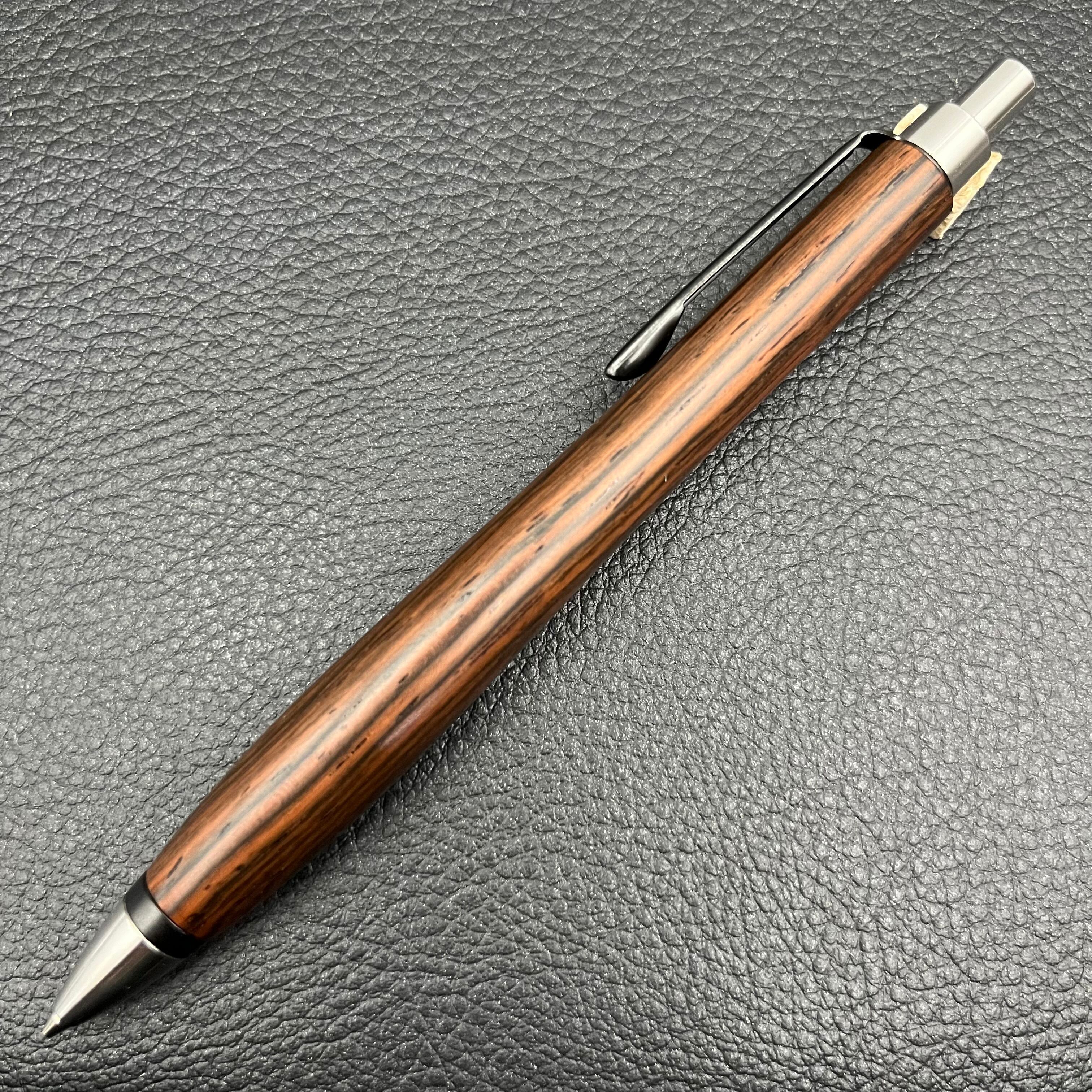 ペンシルは軸ブレが起こりにくい固定式口金を採用し、木の表情を最大限に楽しめる木軸の長さと、書き心地にこだわったバランスで金具を設計してあります。