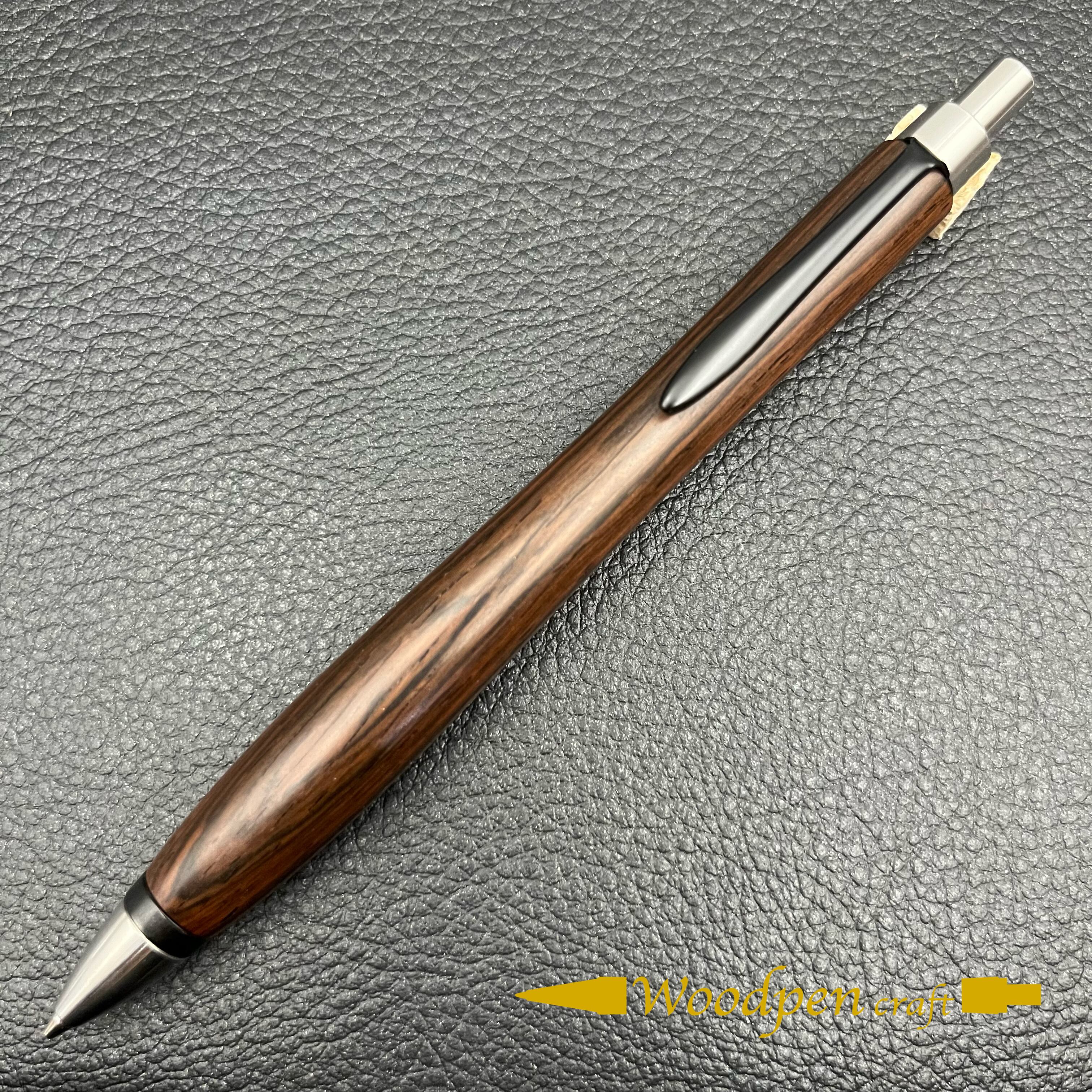 オリジナルペン金具は、大阪に在る金属精密加工会社の職人さんが100分の1㎜単位の加工精度で制作されています。口金・上スリーブ・ノックカバーは高級ステンレス削り出しです。