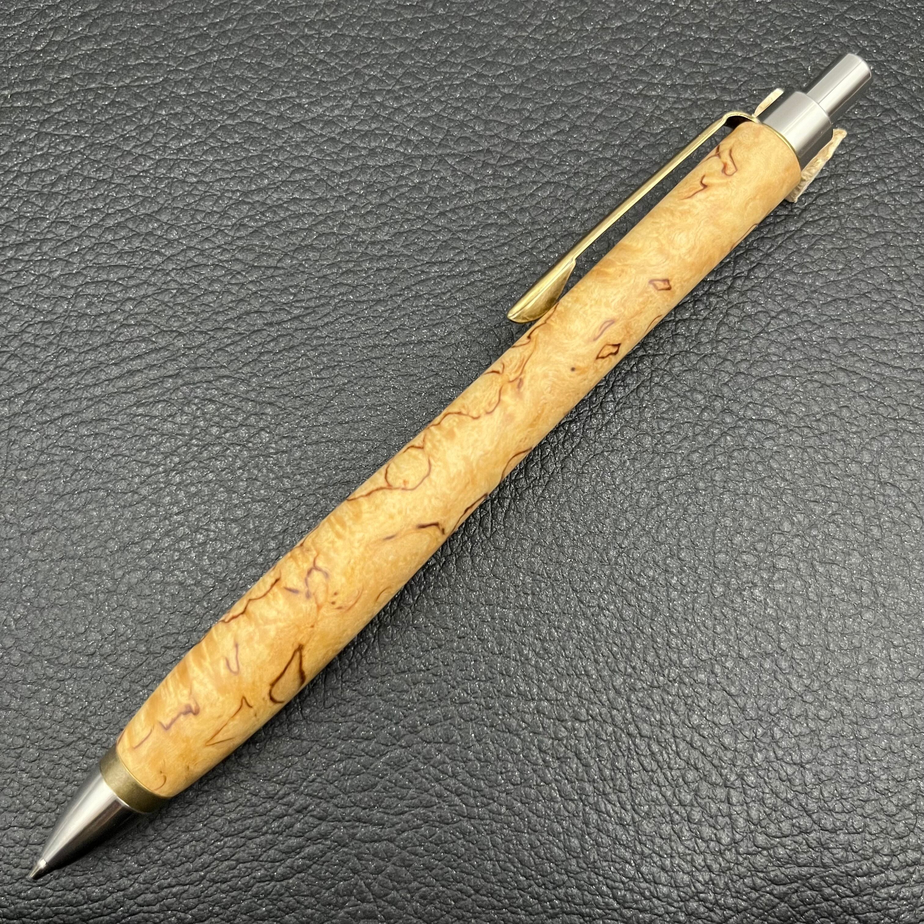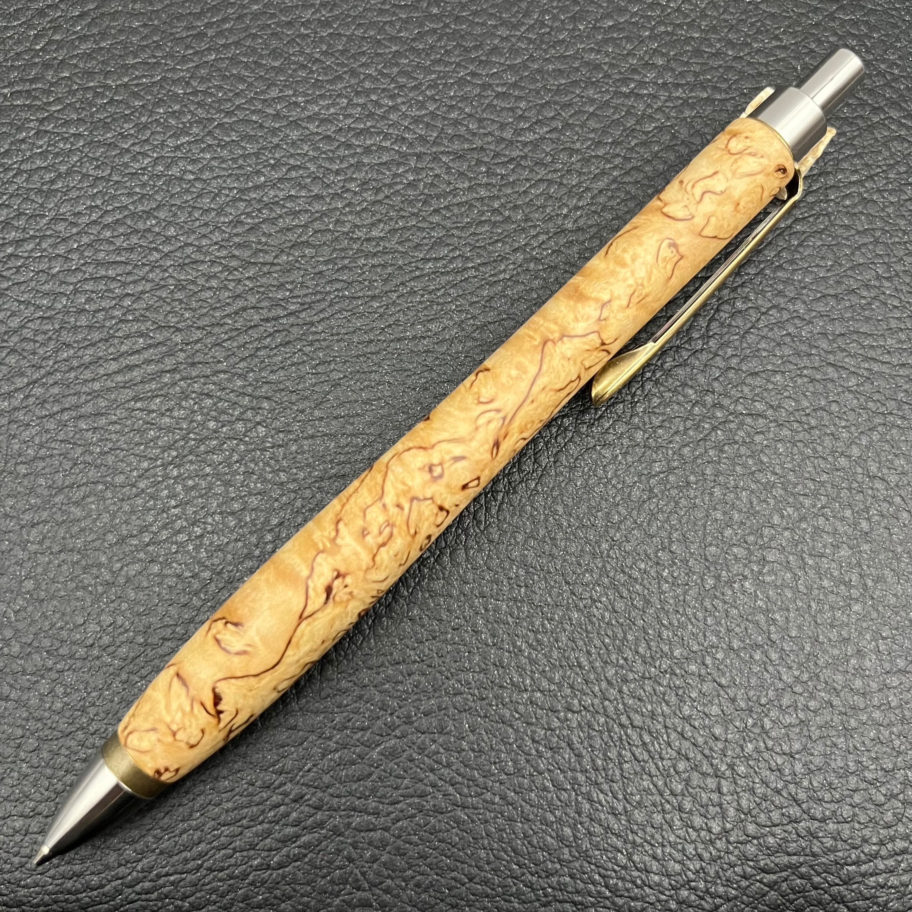 ペンシルは軸ブレが起こりにくい固定式口金を採用し、木の表情を最大限に楽しめる木軸の長さと、書き心地にこだわったバランスで金具を設計してあります。