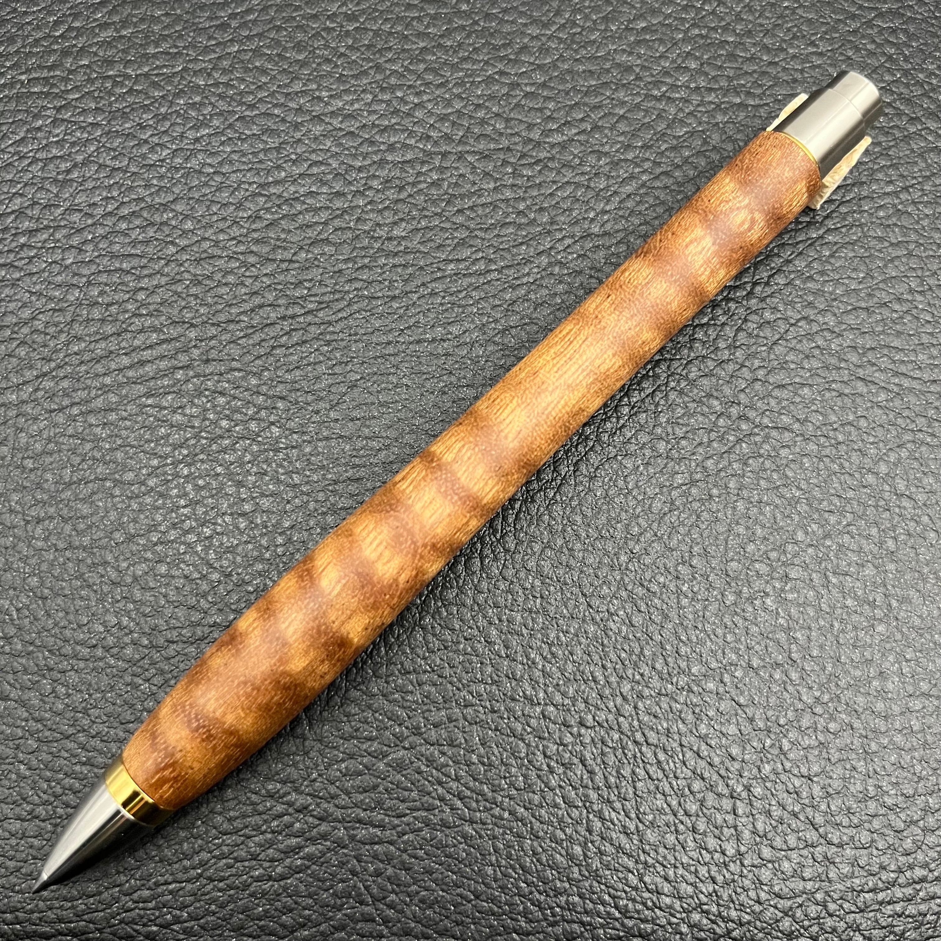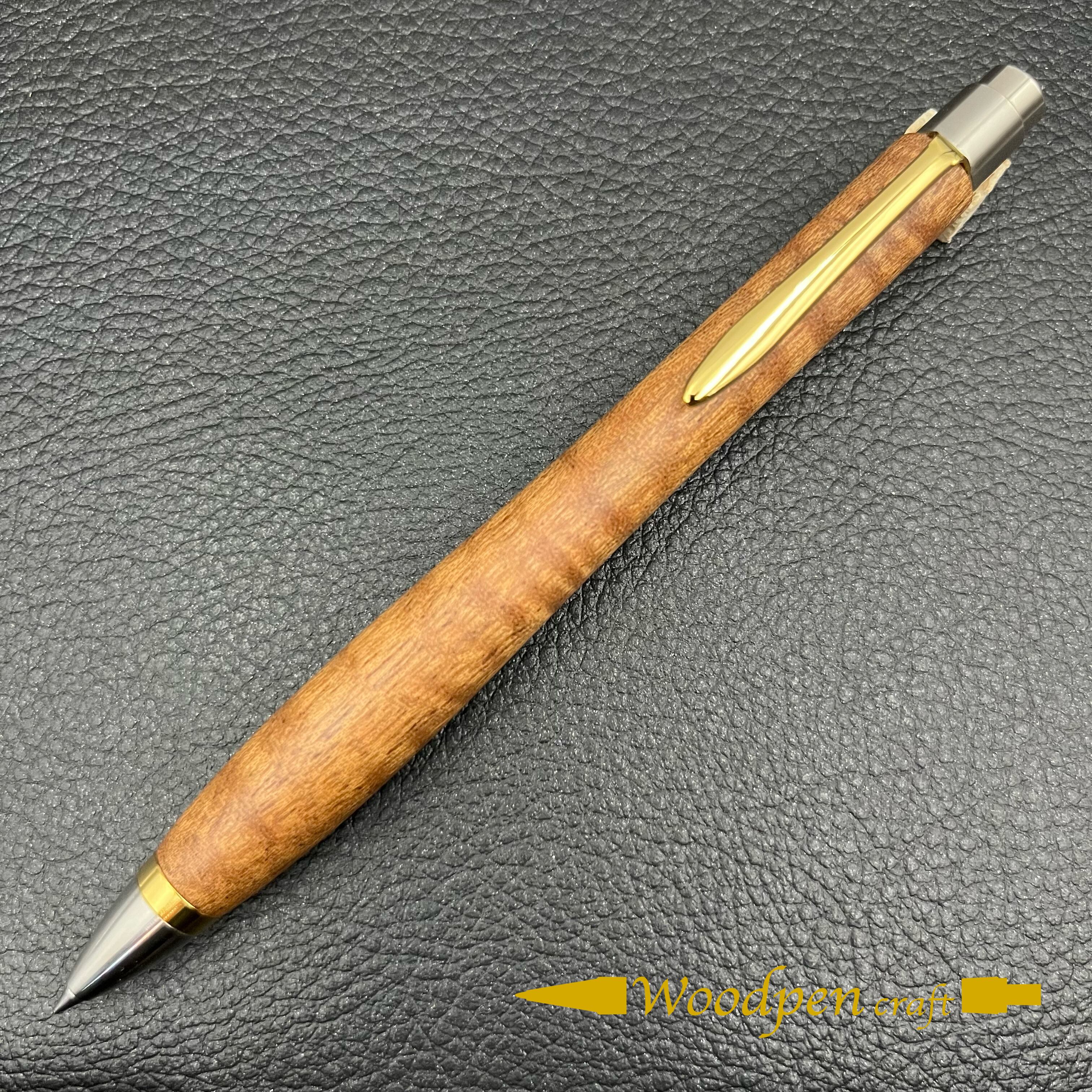 ボールペンのノックシステムは、ドイツ最高のクリックメカニズムを採用してあります。このメカニズムはユニークな機構のため、クリックしたときのカチカチ音が静かで、どんな場所でも気兼ねなく使うことができます。滑らかに動くこのプッシュ感覚を一度味わうと他には戻れなくなってしまうほどの魅力があります。 100分の1単位の加工精度で削り出されたペン先は、軸ブレも全くありません。