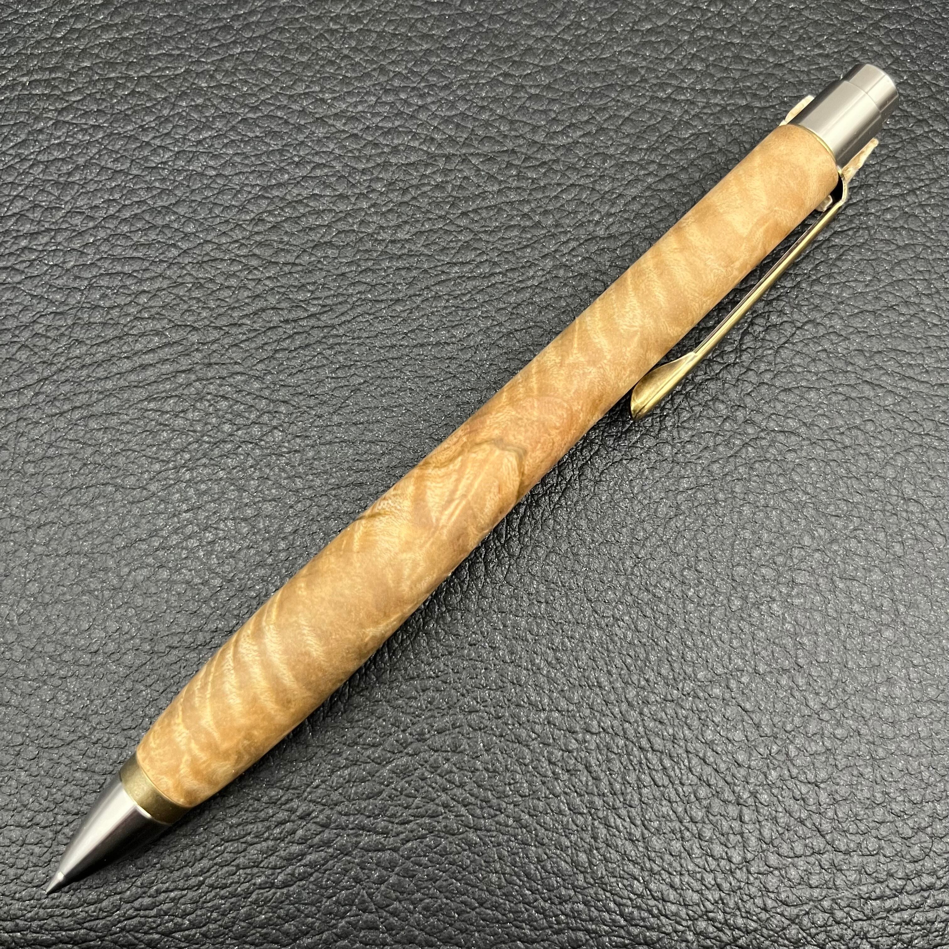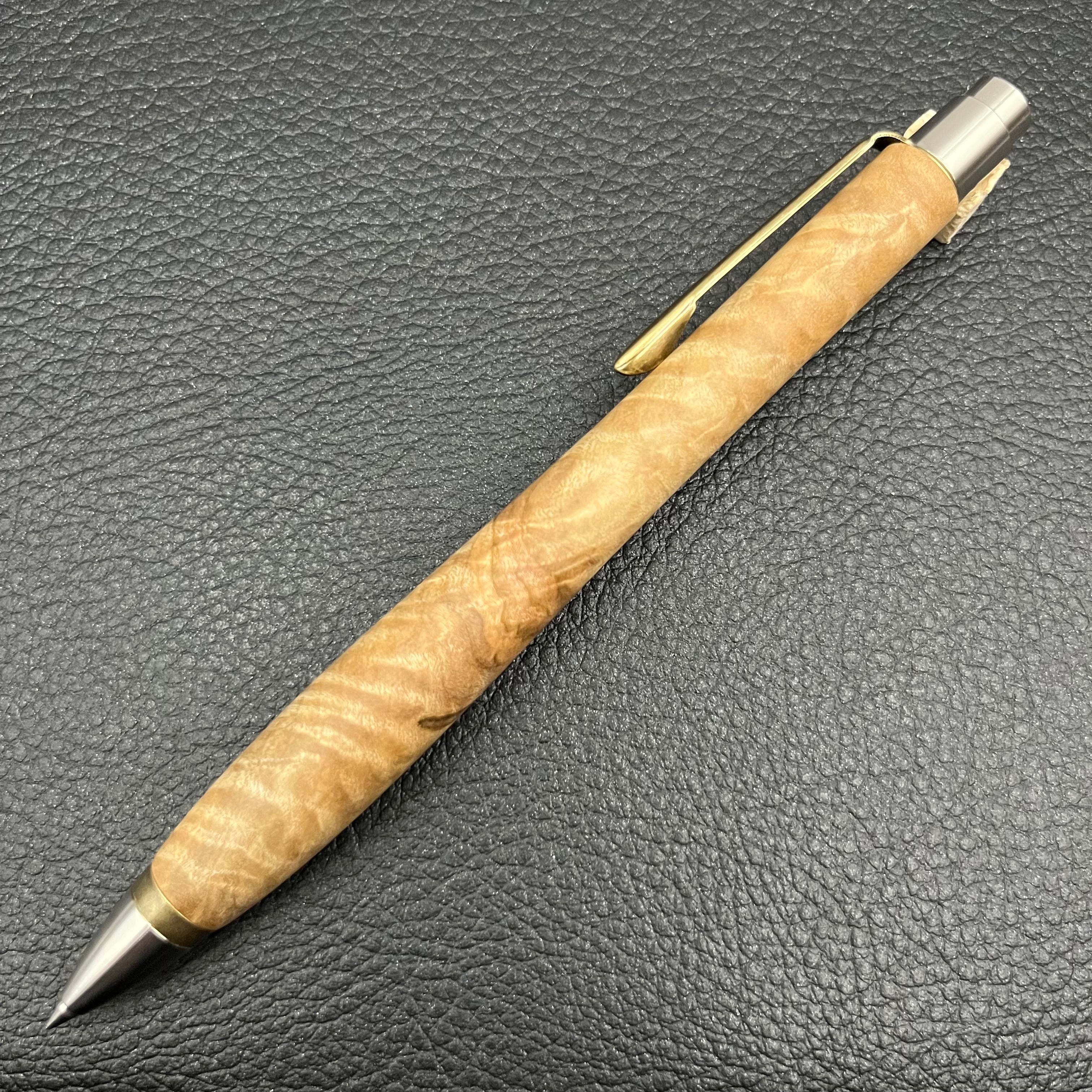 ボールペンのノックシステムは、ドイツ最高のクリックメカニズムを採用してあります。このメカニズムはユニークな機構のため、クリックしたときのカチカチ音が静かで、どんな場所でも気兼ねなく使うことができます。滑らかに動くこのプッシュ感覚を一度味わうと他には戻れなくなってしまうほどの魅力があります。 100分の1単位の加工精度で削り出されたペン先は、軸ブレも全くありません。