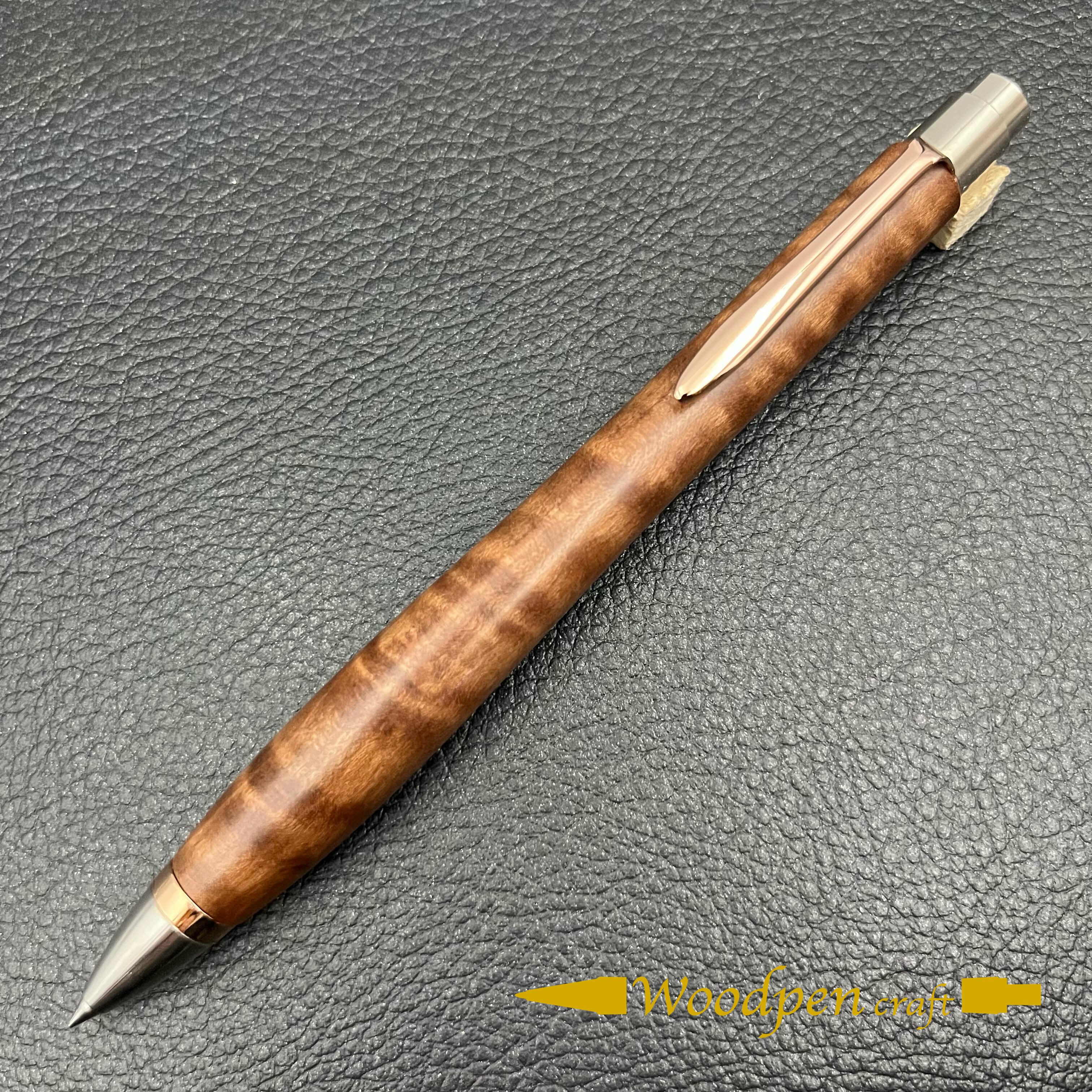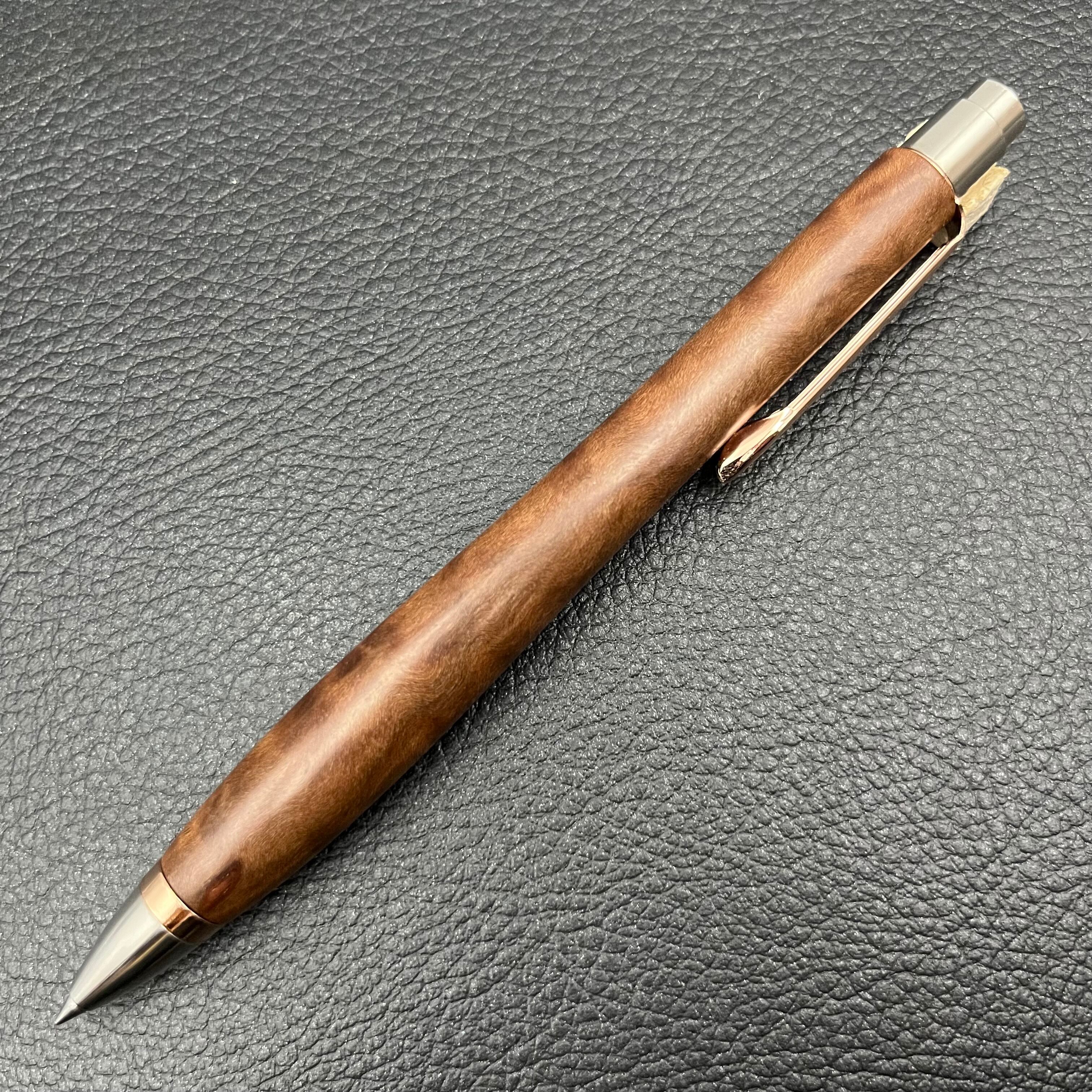 ボールペンのノックシステムは、ドイツ最高のクリックメカニズムを採用してあります。このメカニズムはユニークな機構のため、クリックしたときのカチカチ音が静かで、どんな場所でも気兼ねなく使うことができます。滑らかに動くこのプッシュ感覚を一度味わうと他には戻れなくなってしまうほどの魅力があります。 100分の1単位の加工精度で削り出されたペン先は、軸ブレも全くありません。