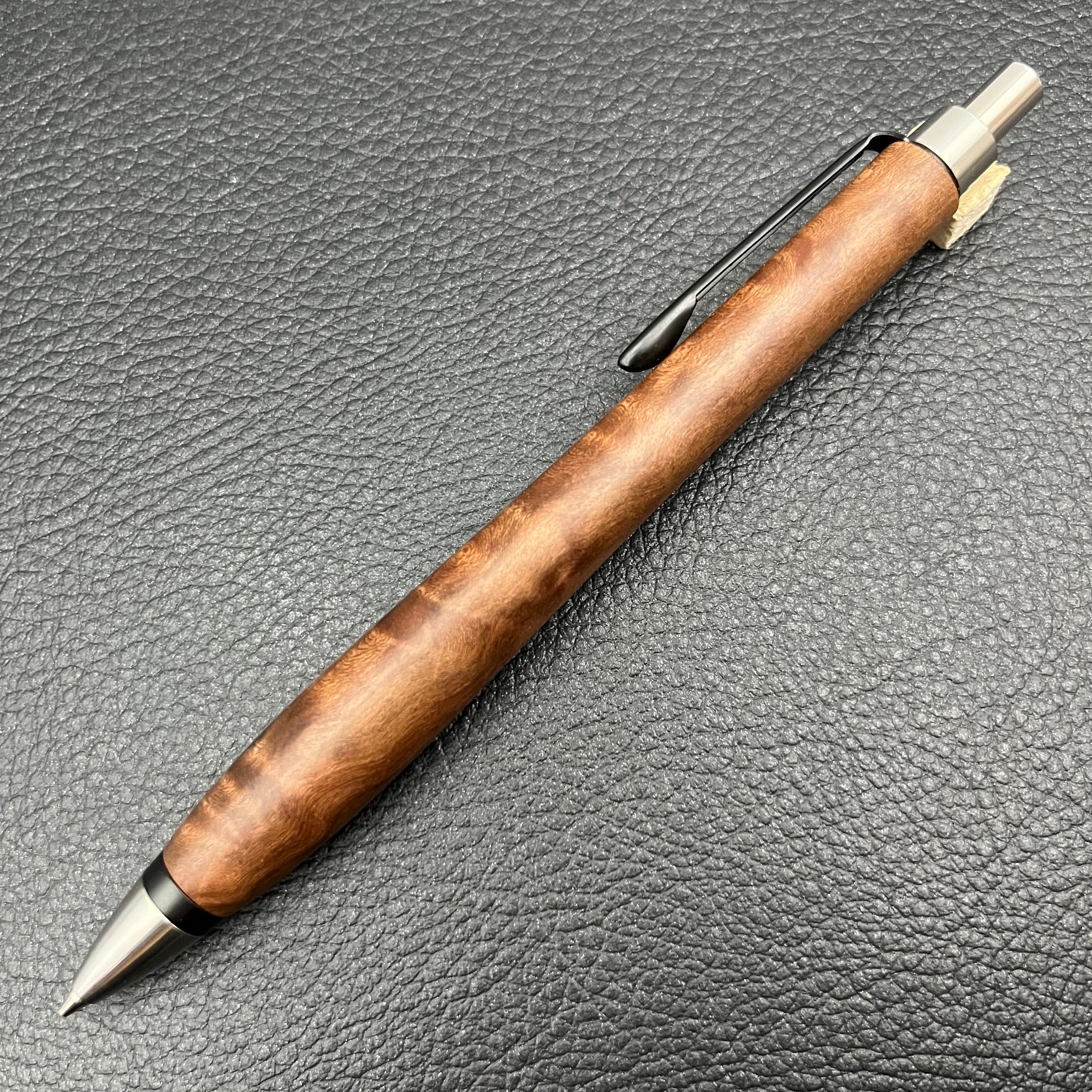 ペンシルは軸ブレが起こりにくい固定式口金を採用し、木の表情を最大限に楽しめる木軸の長さと、書き心地にこだわったバランスで金具を設計してあります。