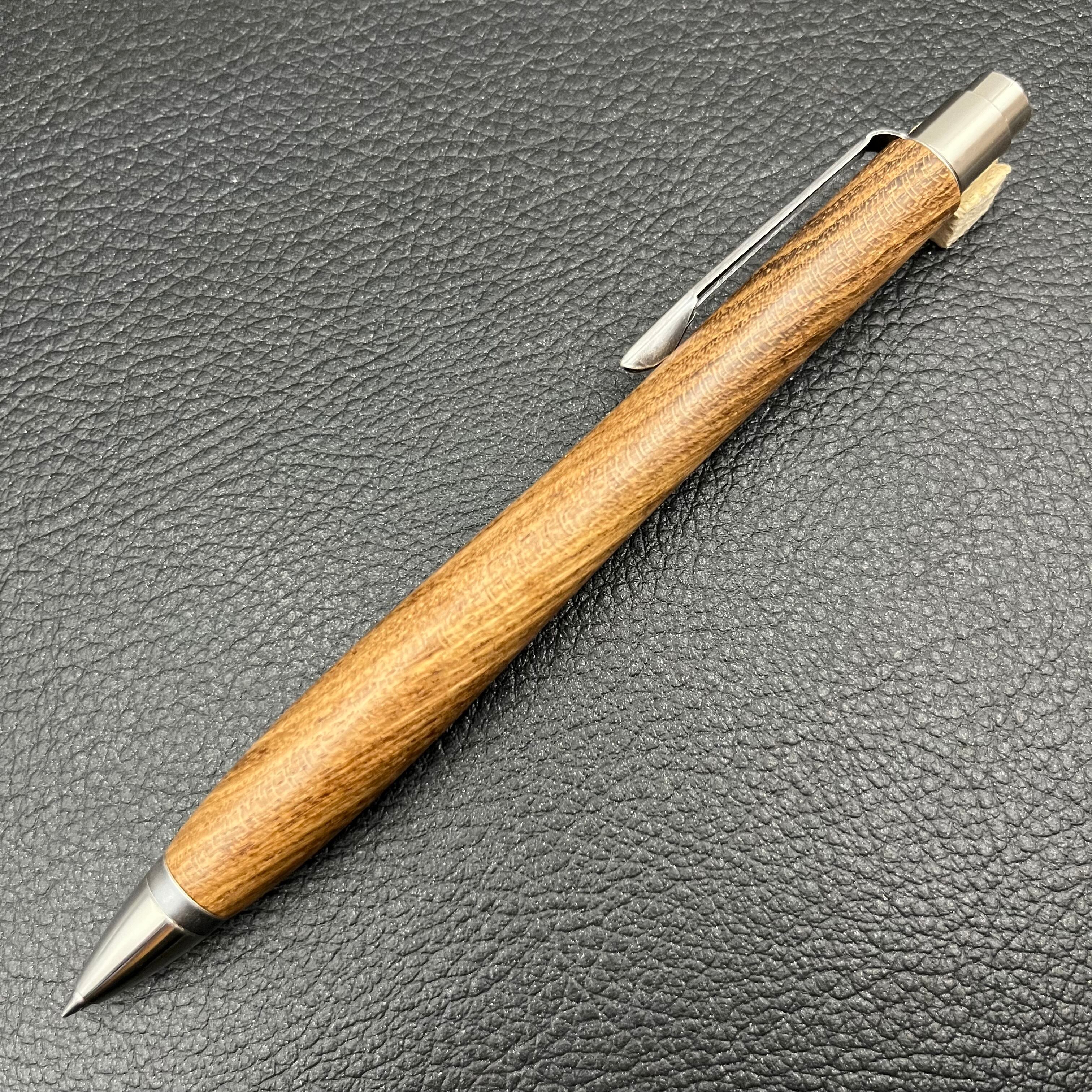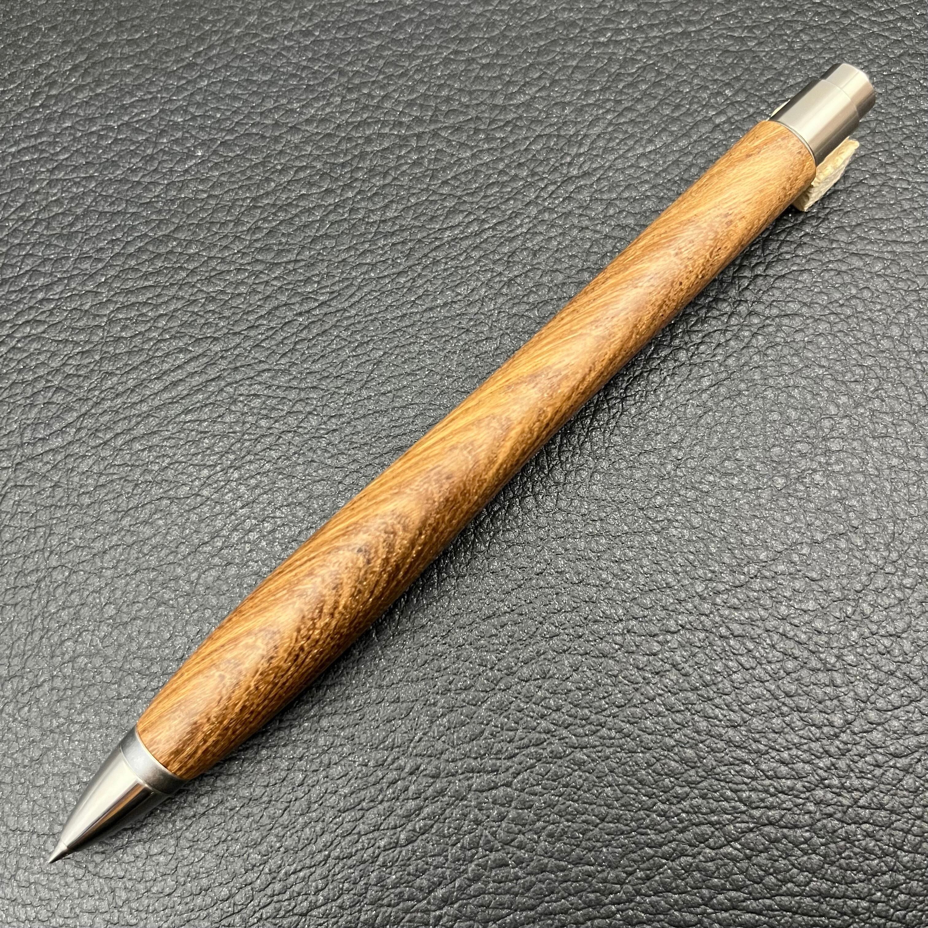 ボールペンのノックシステムは、ドイツ最高のクリックメカニズムを採用してあります。このメカニズムはユニークな機構のため、クリックしたときのカチカチ音が静かで、どんな場所でも気兼ねなく使うことができます。滑らかに動くこのプッシュ感覚を一度味わうと他には戻れなくなってしまうほどの魅力があります。 100分の1単位の加工精度で削り出されたペン先は、軸ブレも全くありません。