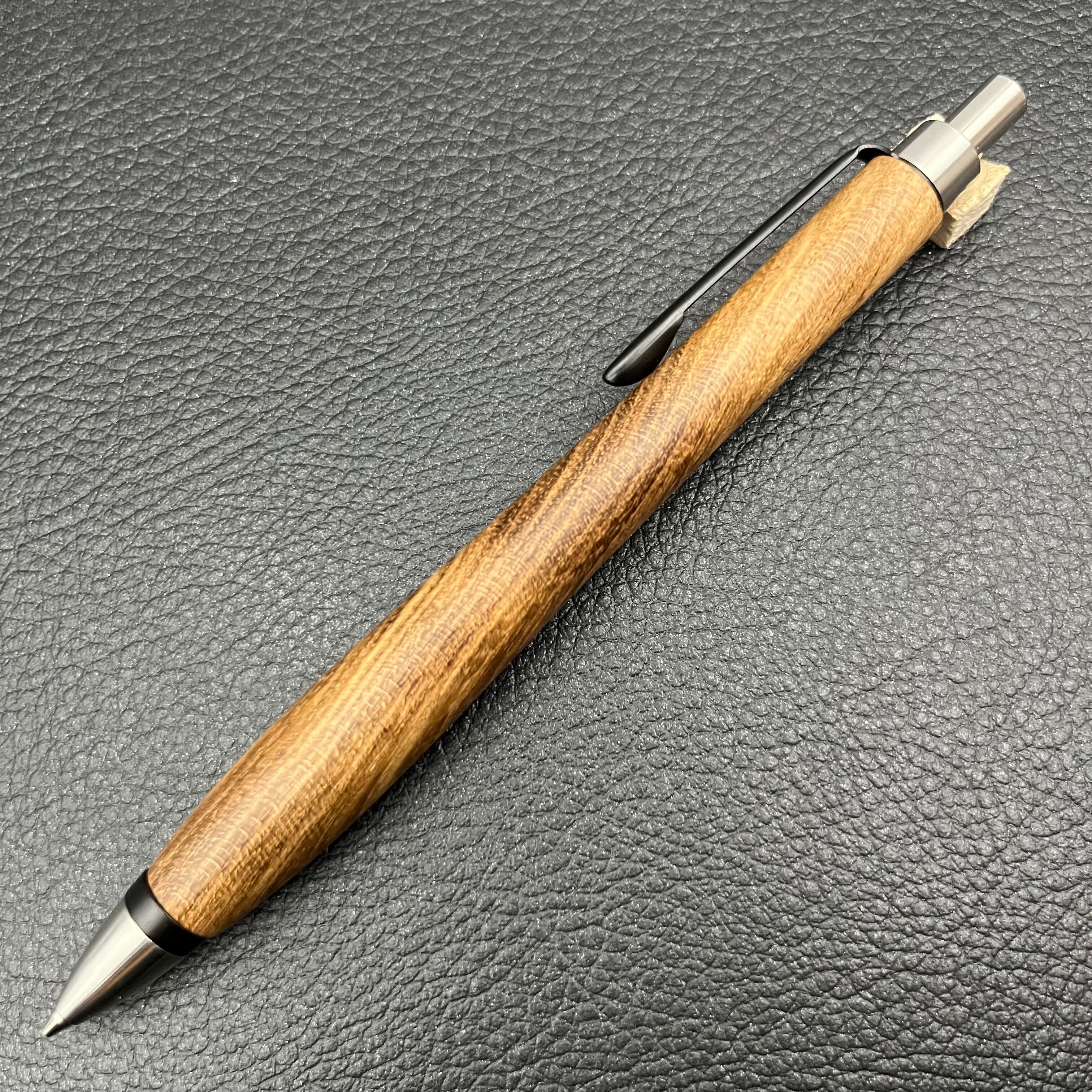 ペンシルは軸ブレが起こりにくい固定式口金を採用し、木の表情を最大限に楽しめる木軸の長さと、書き心地にこだわったバランスで金具を設計してあります。