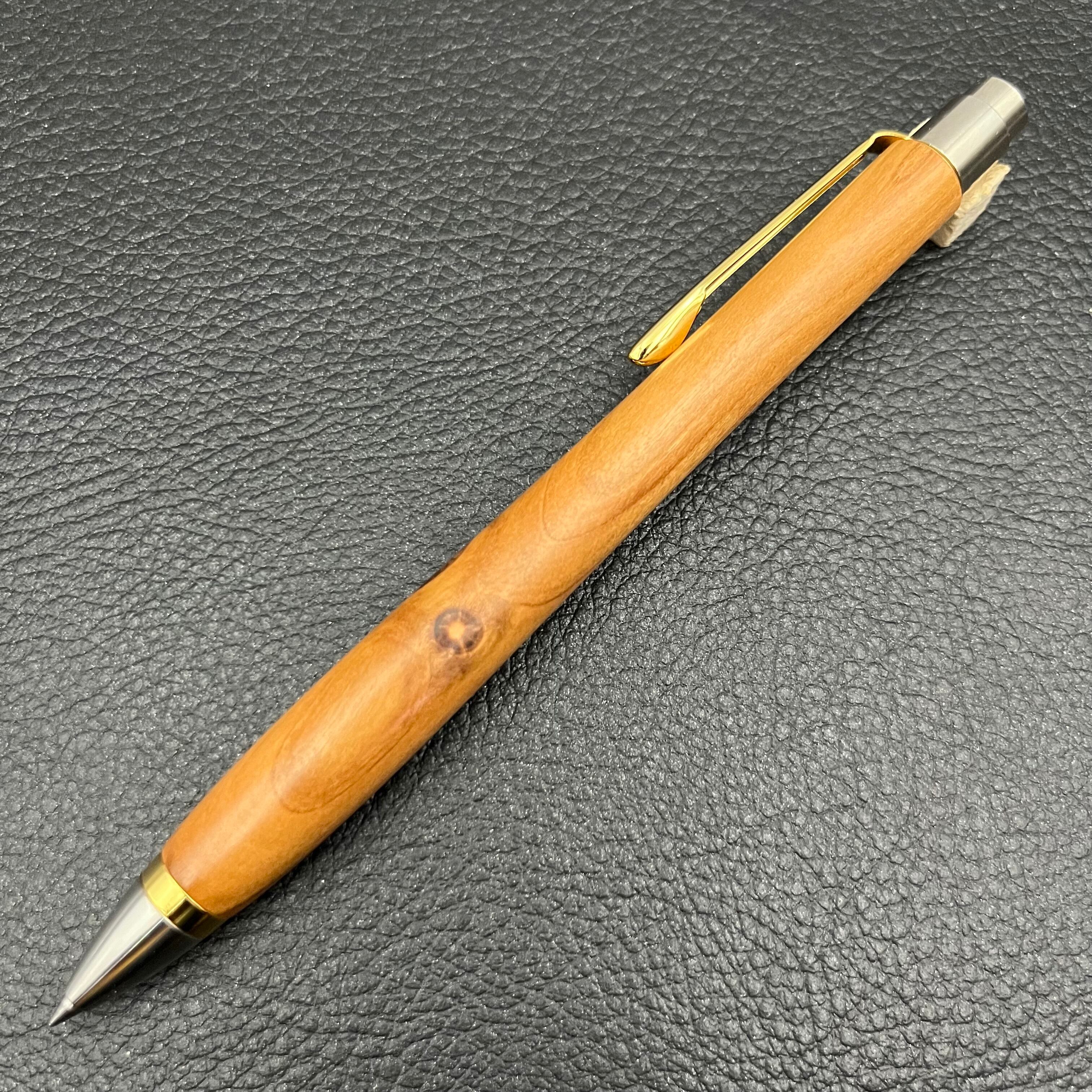 ボールペンのノックシステムは、ドイツ最高のクリックメカニズムを採用してあります。このメカニズムはユニークな機構のため、クリックしたときのカチカチ音が静かで、どんな場所でも気兼ねなく使うことができます。滑らかに動くこのプッシュ感覚を一度味わうと他には戻れなくなってしまうほどの魅力があります。 100分の1単位の加工精度で削り出されたペン先は、軸ブレも全くありません。