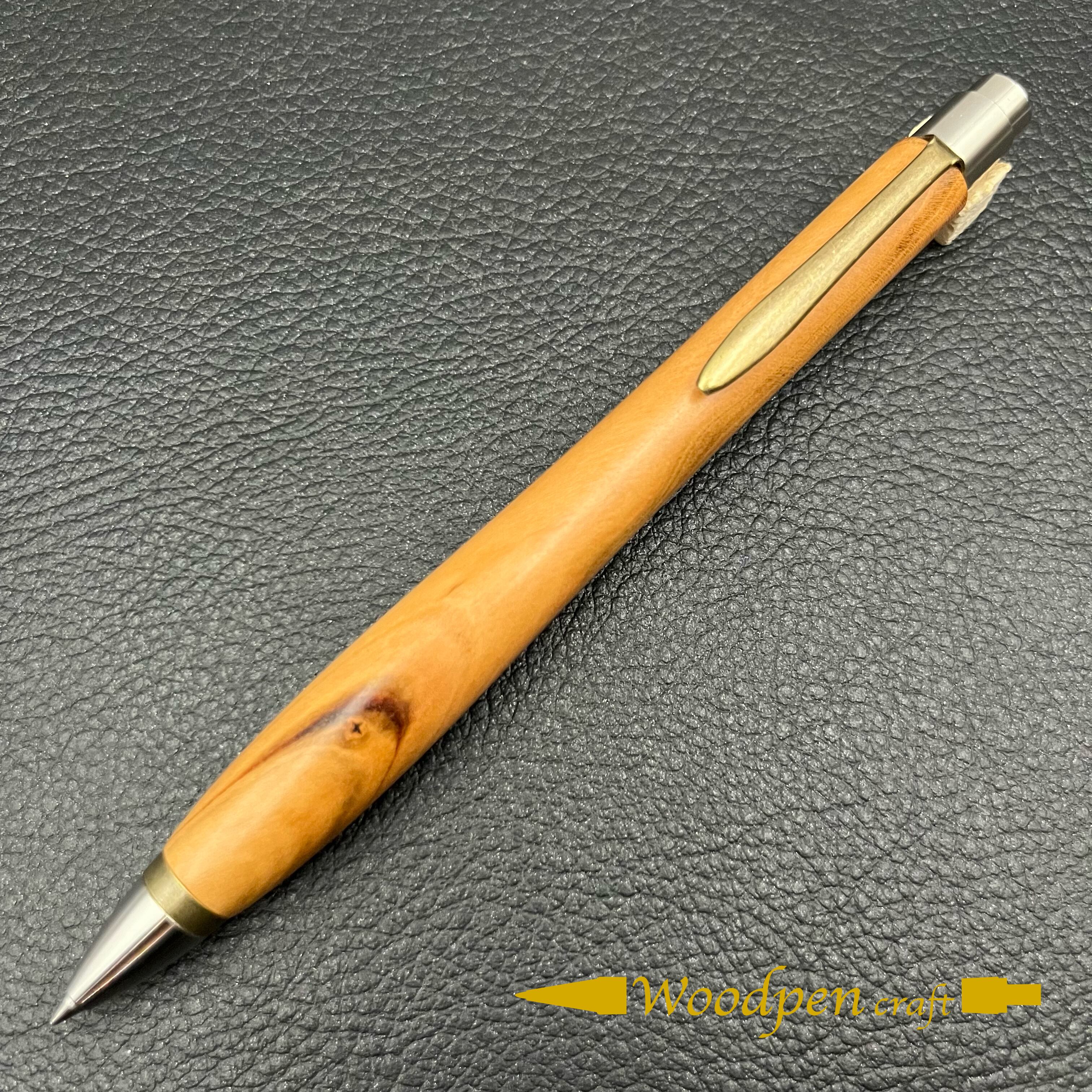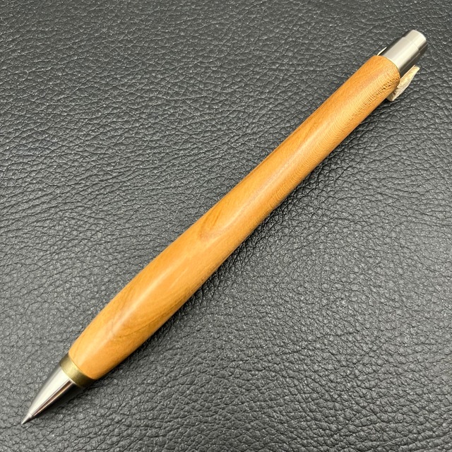 ボールペンのノックシステムは、ドイツ最高のクリックメカニズムを採用してあります。このメカニズムはユニークな機構のため、クリックしたときのカチカチ音が静かで、どんな場所でも気兼ねなく使うことができます。滑らかに動くこのプッシュ感覚を一度味わうと他には戻れなくなってしまうほどの魅力があります。 100分の1単位の加工精度で削り出されたペン先は、軸ブレも全くありません。