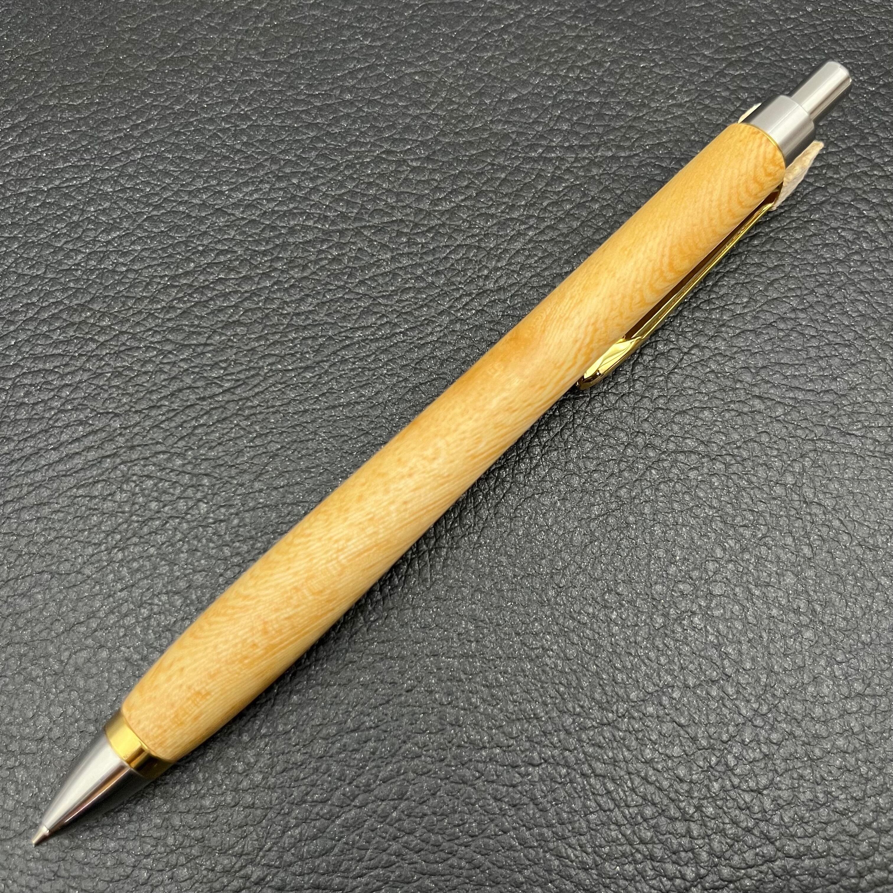 ペンシルは軸ブレが起こりにくい固定式口金を採用し、木の表情を最大限に楽しめる木軸の長さと、書き心地にこだわったバランスで金具を設計してあります。