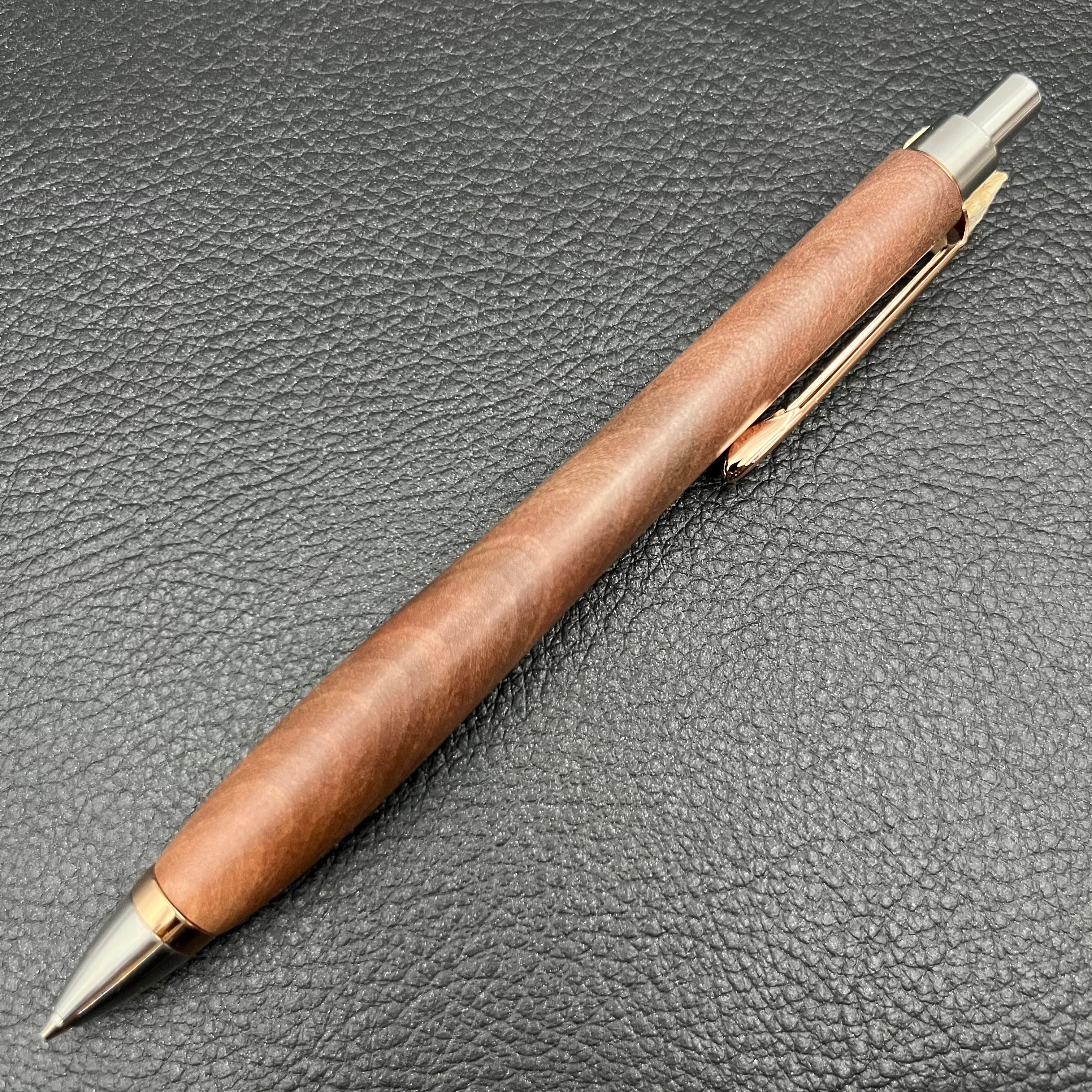 ペンシルは軸ブレが起こりにくい固定式口金を採用し、木の表情を最大限に楽しめる木軸の長さと、書き心地にこだわったバランスで金具を設計してあります。