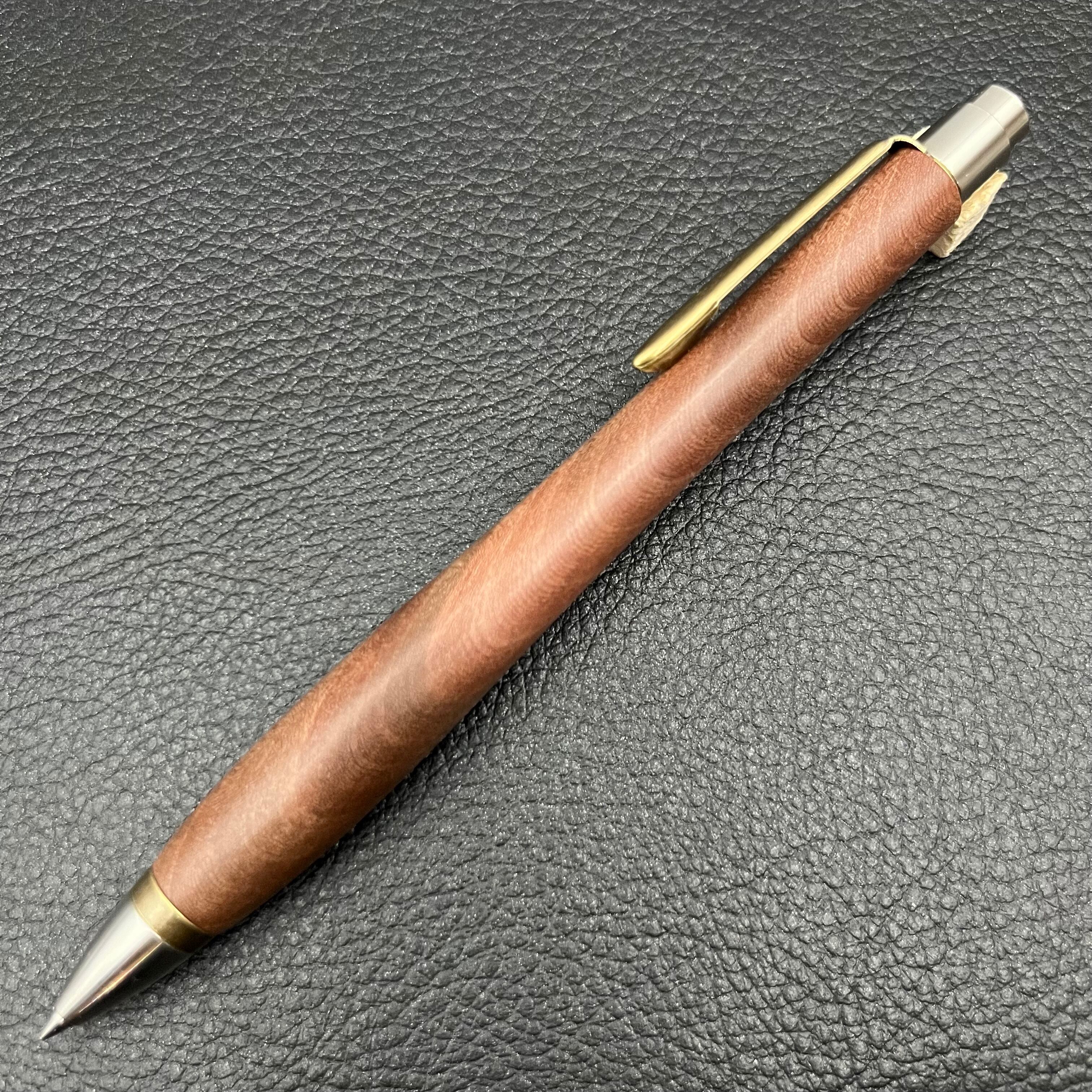 ボールペンのノックシステムは、ドイツ最高のクリックメカニズムを採用してあります。このメカニズムはユニークな機構のため、クリックしたときのカチカチ音が静かで、どんな場所でも気兼ねなく使うことができます。滑らかに動くこのプッシュ感覚を一度味わうと他には戻れなくなってしまうほどの魅力があります。 100分の1単位の加工精度で削り出されたペン先は、軸ブレも全くありません。