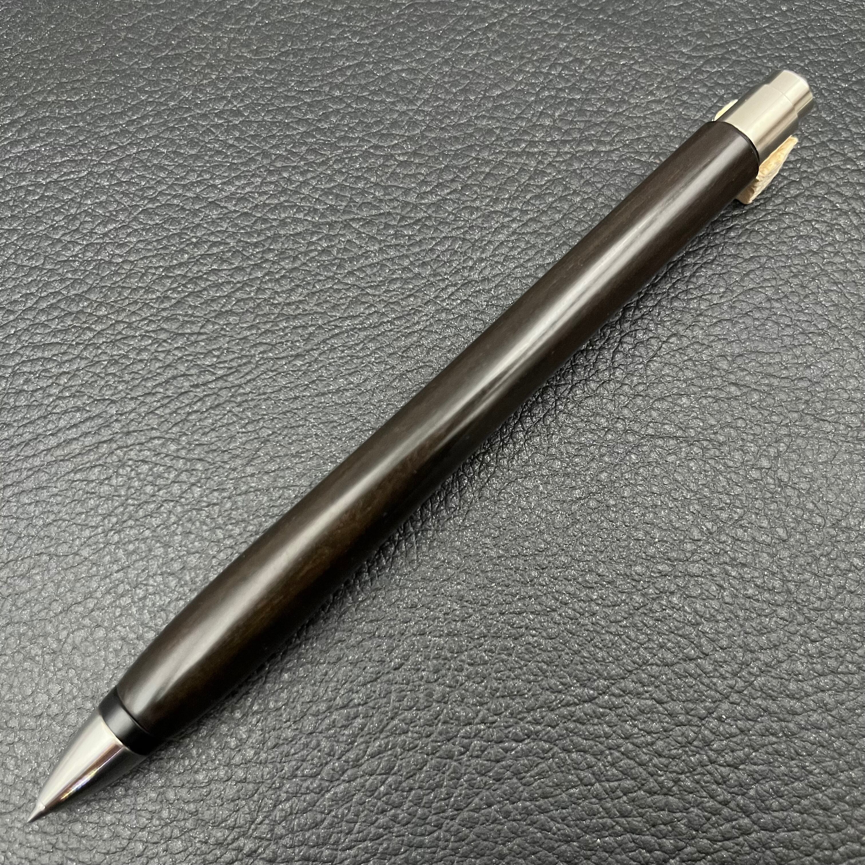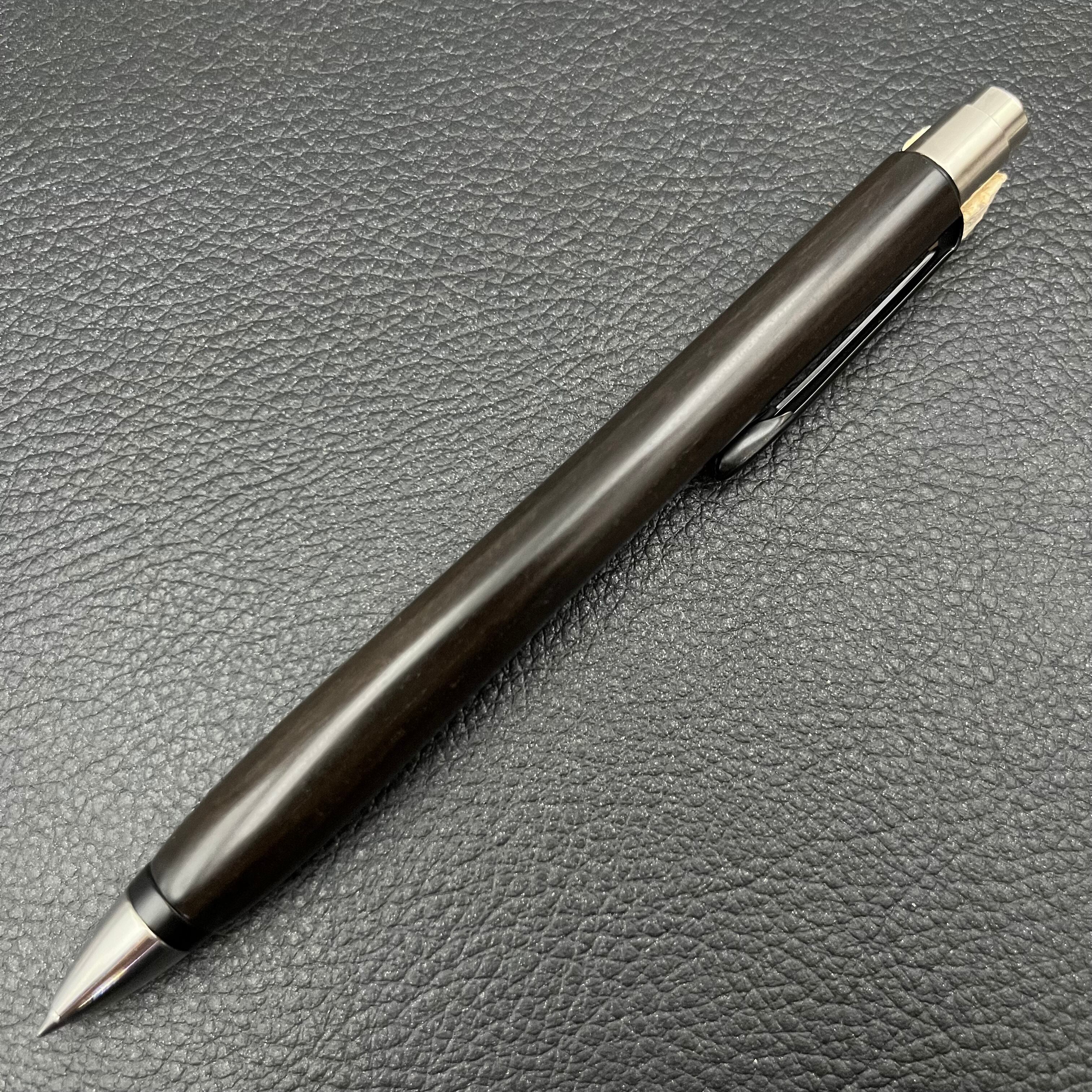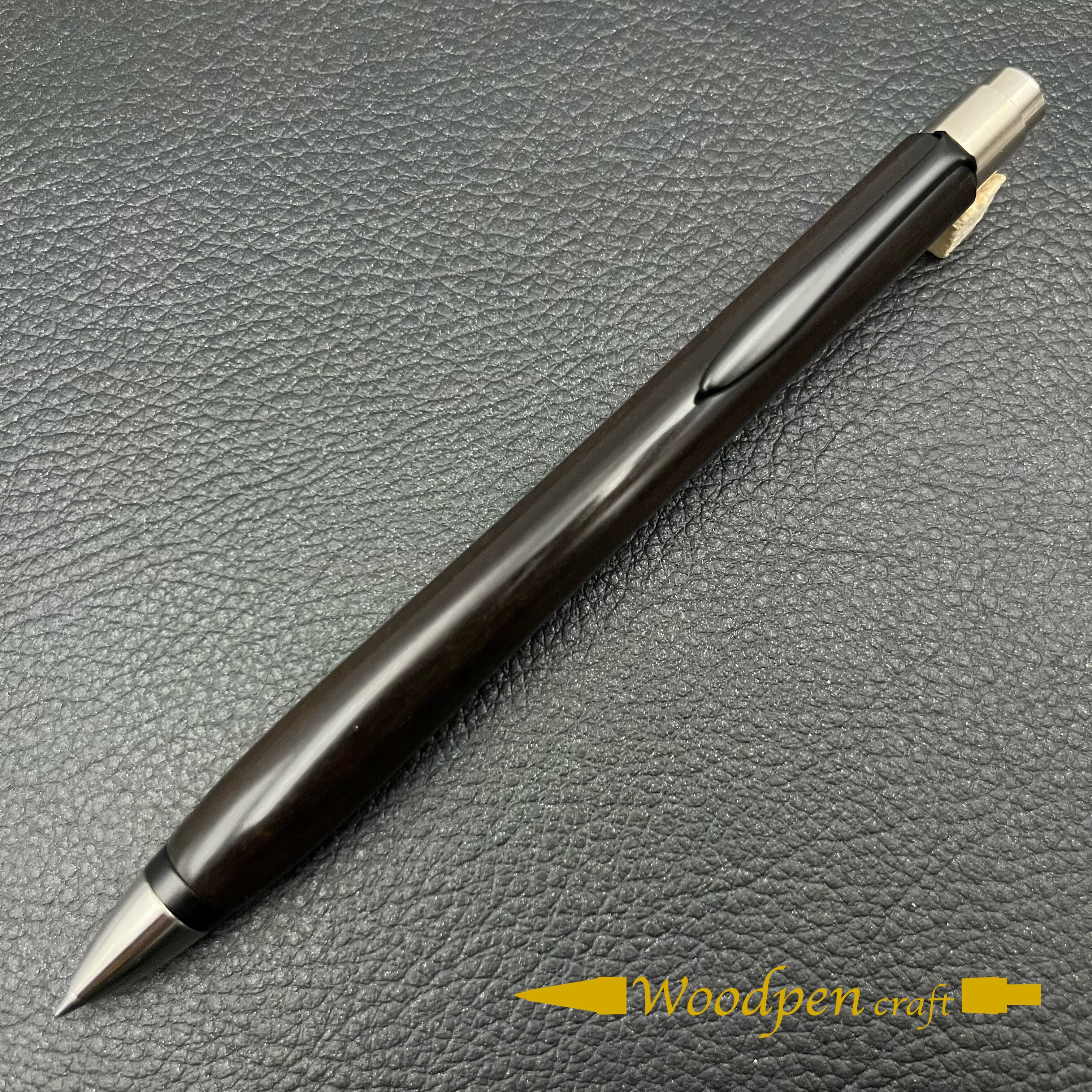 ボールペンのノックシステムは、ドイツ最高のクリックメカニズムを採用してあります。このメカニズムはユニークな機構のため、クリックしたときのカチカチ音が静かで、どんな場所でも気兼ねなく使うことができます。滑らかに動くこのプッシュ感覚を一度味わうと他には戻れなくなってしまうほどの魅力があります。 100分の1単位の加工精度で削り出されたペン先は、軸ブレも全くありません。