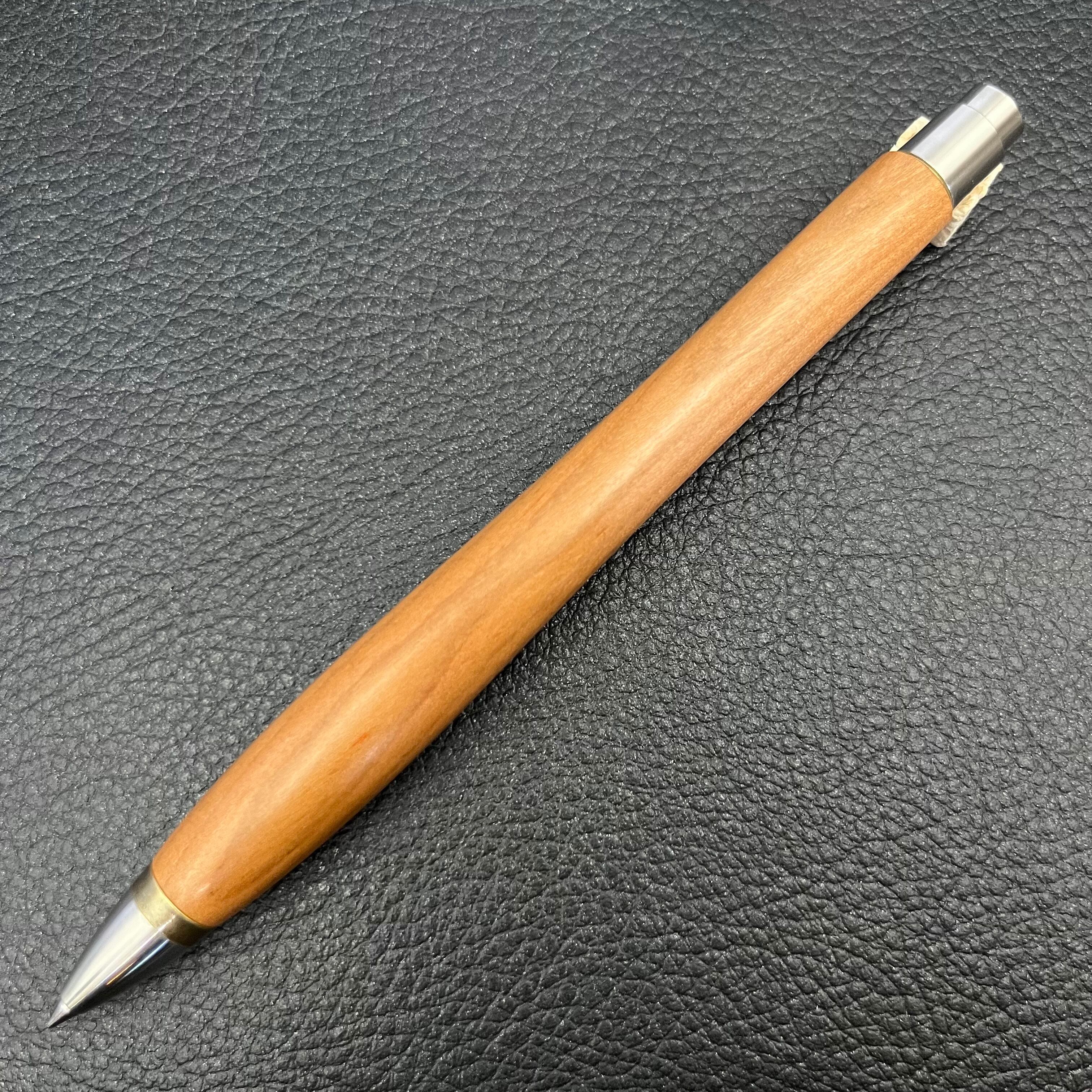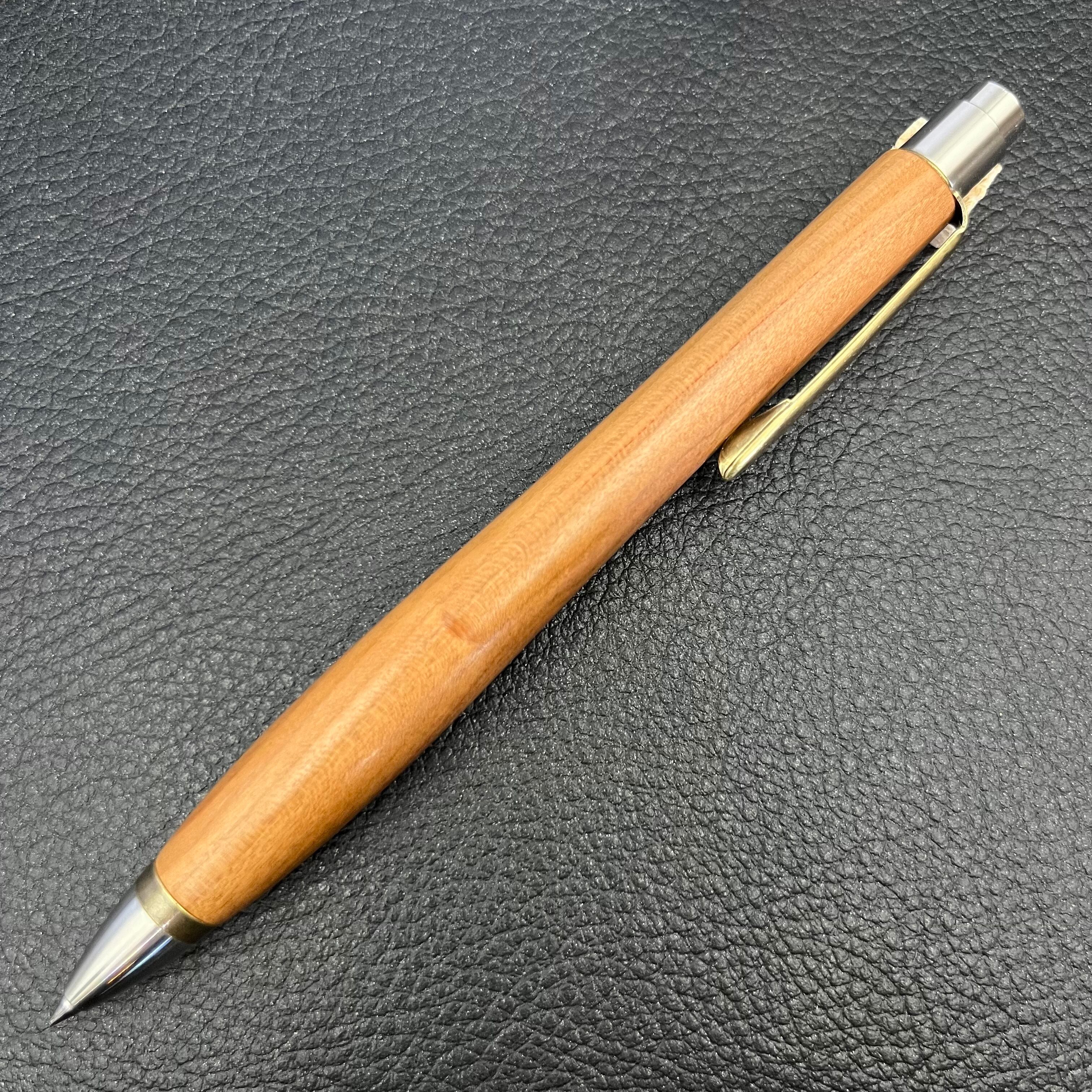 ボールペンのノックシステムは、ドイツ最高のクリックメカニズムを採用してあります。このメカニズムはユニークな機構のため、クリックしたときのカチカチ音が静かで、どんな場所でも気兼ねなく使うことができます。滑らかに動くこのプッシュ感覚を一度味わうと他には戻れなくなってしまうほどの魅力があります。 100分の1単位の加工精度で削り出されたペン先は、軸ブレも全くありません。