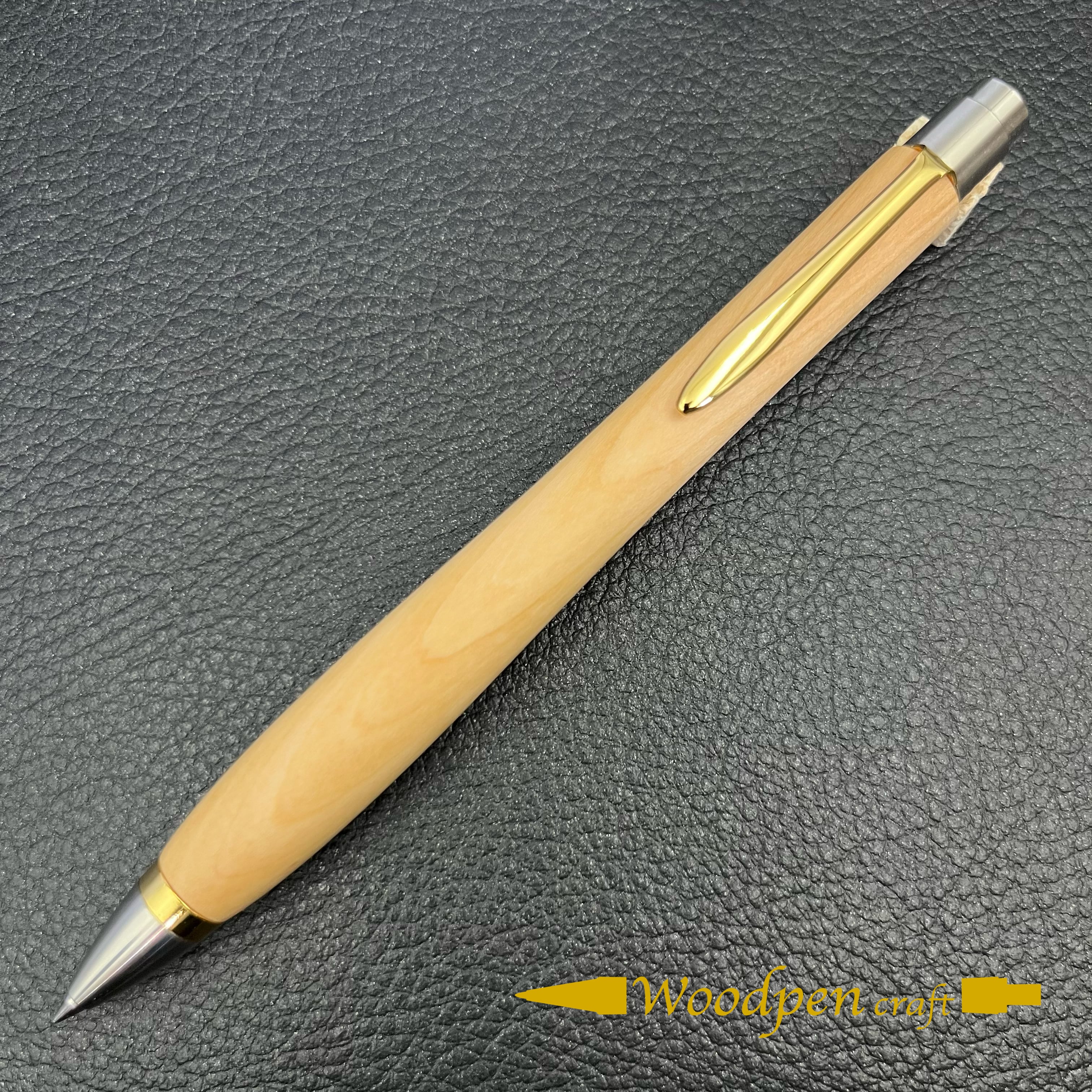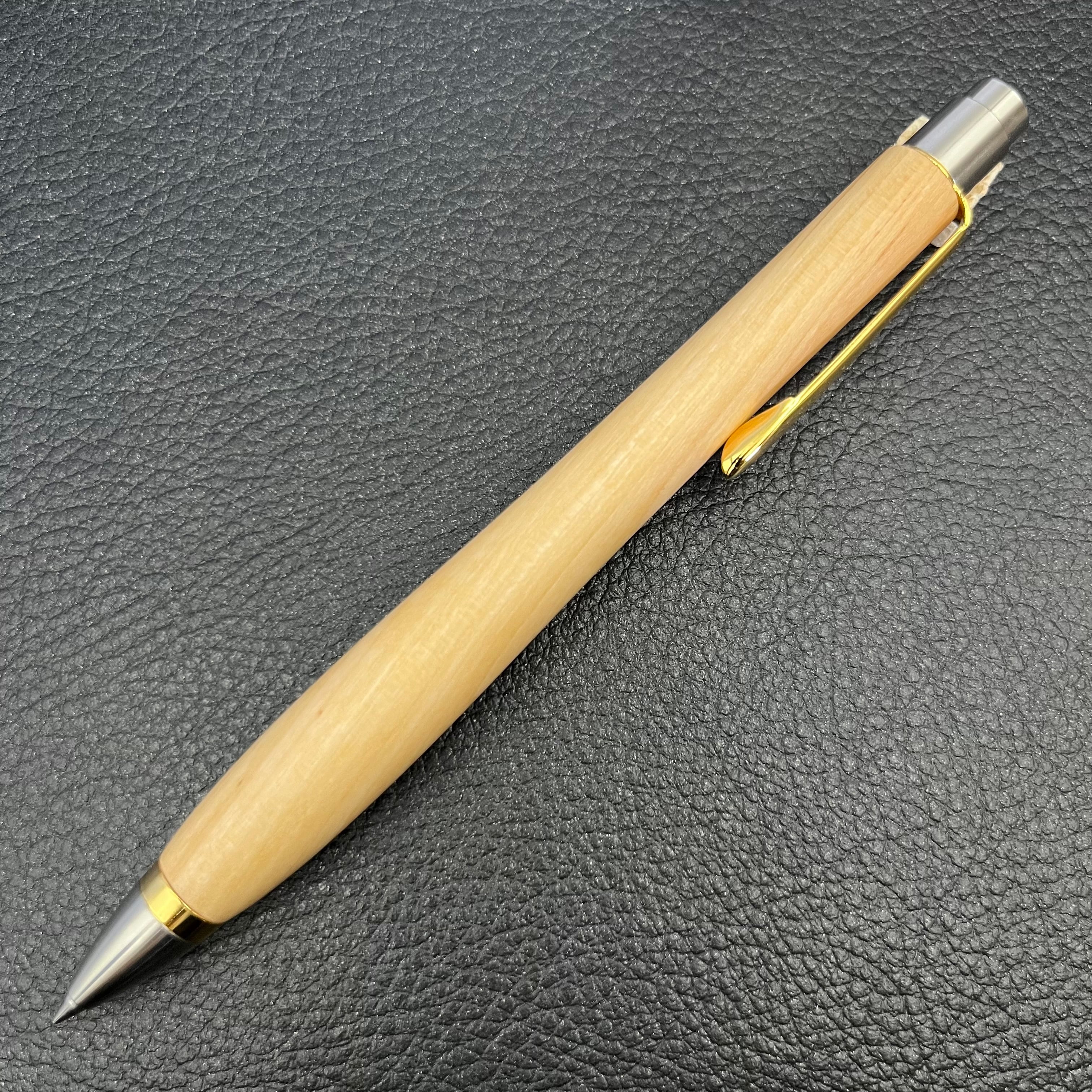 ボールペンのノックシステムは、ドイツ最高のクリックメカニズムを採用してあります。このメカニズムはユニークな機構のため、クリックしたときのカチカチ音が静かで、どんな場所でも気兼ねなく使うことができます。滑らかに動くこのプッシュ感覚を一度味わうと他には戻れなくなってしまうほどの魅力があります。 100分の1単位の加工精度で削り出されたペン先は、軸ブレも全くありません。
