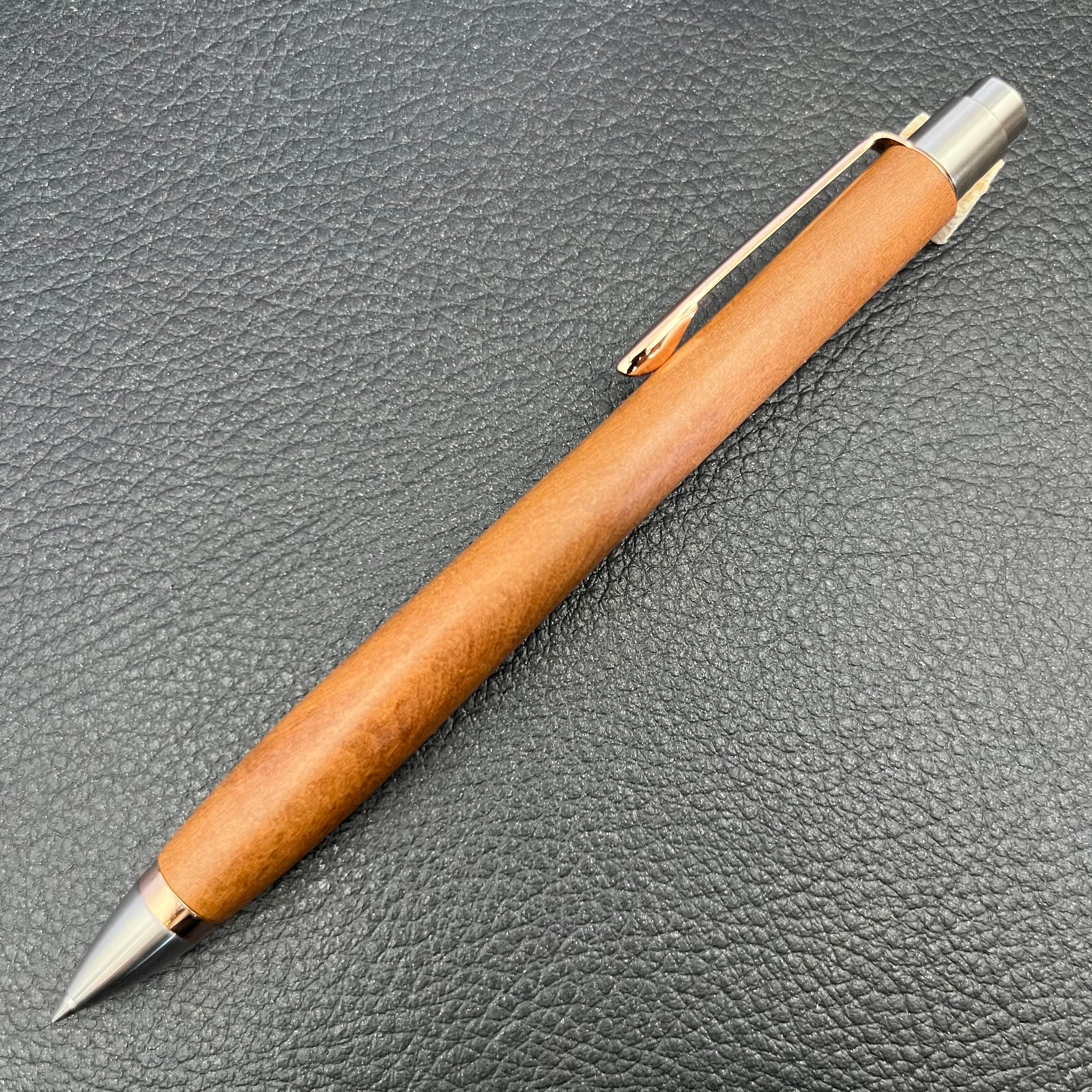 ボールペンのノックシステムは、ドイツ最高のクリックメカニズムを採用してあります。このメカニズムはユニークな機構のため、クリックしたときのカチカチ音が静かで、どんな場所でも気兼ねなく使うことができます。滑らかに動くこのプッシュ感覚を一度味わうと他には戻れなくなってしまうほどの魅力があります。 100分の1単位の加工精度で削り出されたペン先は、軸ブレも全くありません。