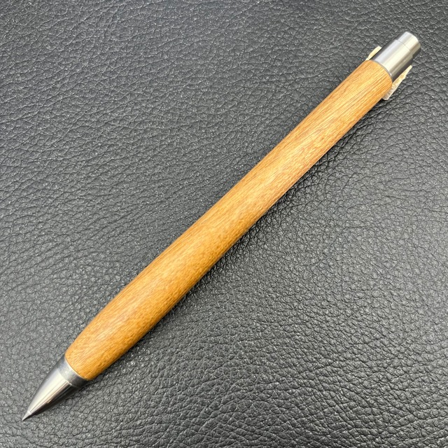 ボールペンのノックシステムは、ドイツ最高のクリックメカニズムを採用してあります。このメカニズムはユニークな機構のため、クリックしたときのカチカチ音が静かで、どんな場所でも気兼ねなく使うことができます。滑らかに動くこのプッシュ感覚を一度味わうと他には戻れなくなってしまうほどの魅力があります。 100分の1単位の加工精度で削り出されたペン先は、軸ブレも全くありません。