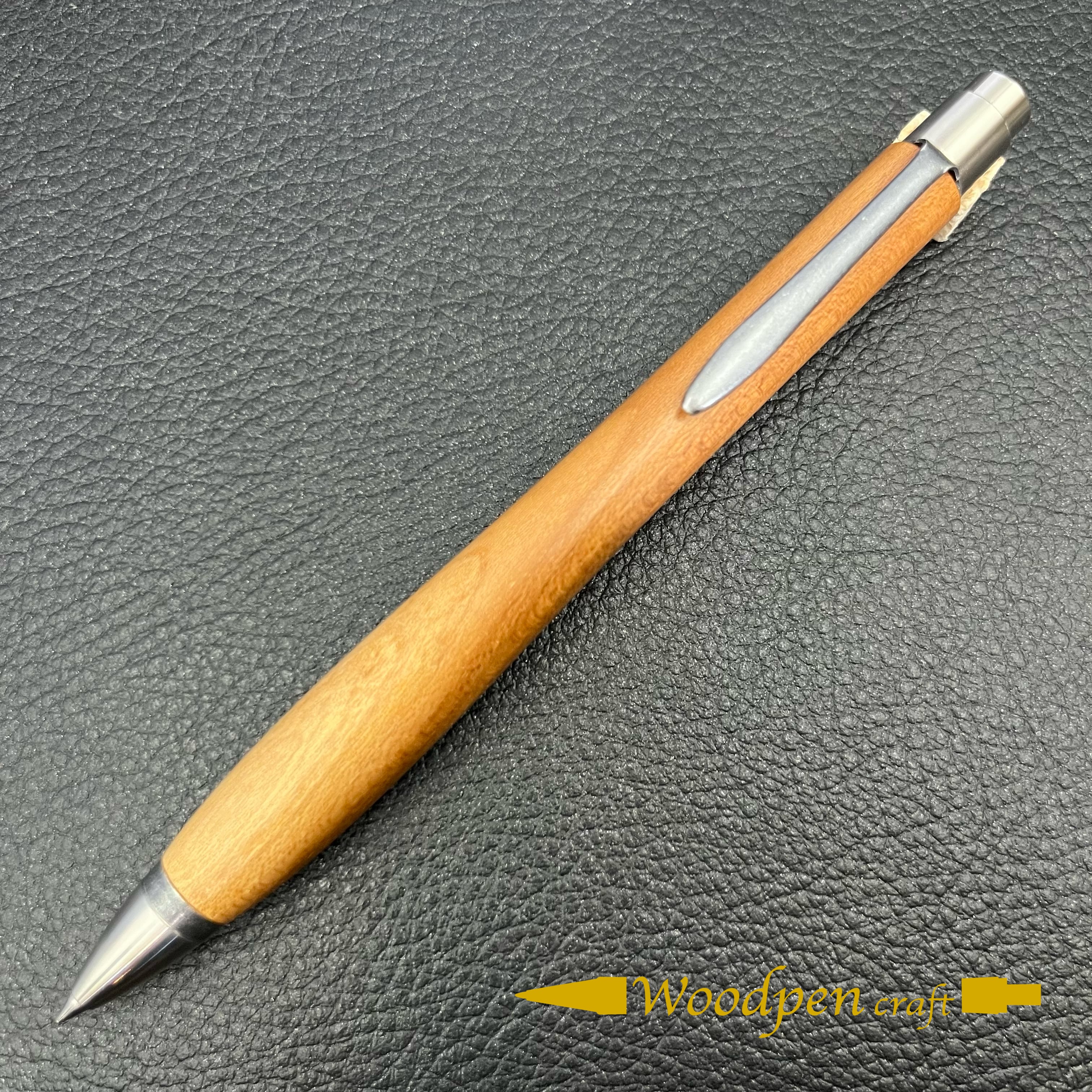 ボールペンのノックシステムは、ドイツ最高のクリックメカニズムを採用してあります。このメカニズムはユニークな機構のため、クリックしたときのカチカチ音が静かで、どんな場所でも気兼ねなく使うことができます。滑らかに動くこのプッシュ感覚を一度味わうと他には戻れなくなってしまうほどの魅力があります。 100分の1単位の加工精度で削り出されたペン先は、軸ブレも全くありません。