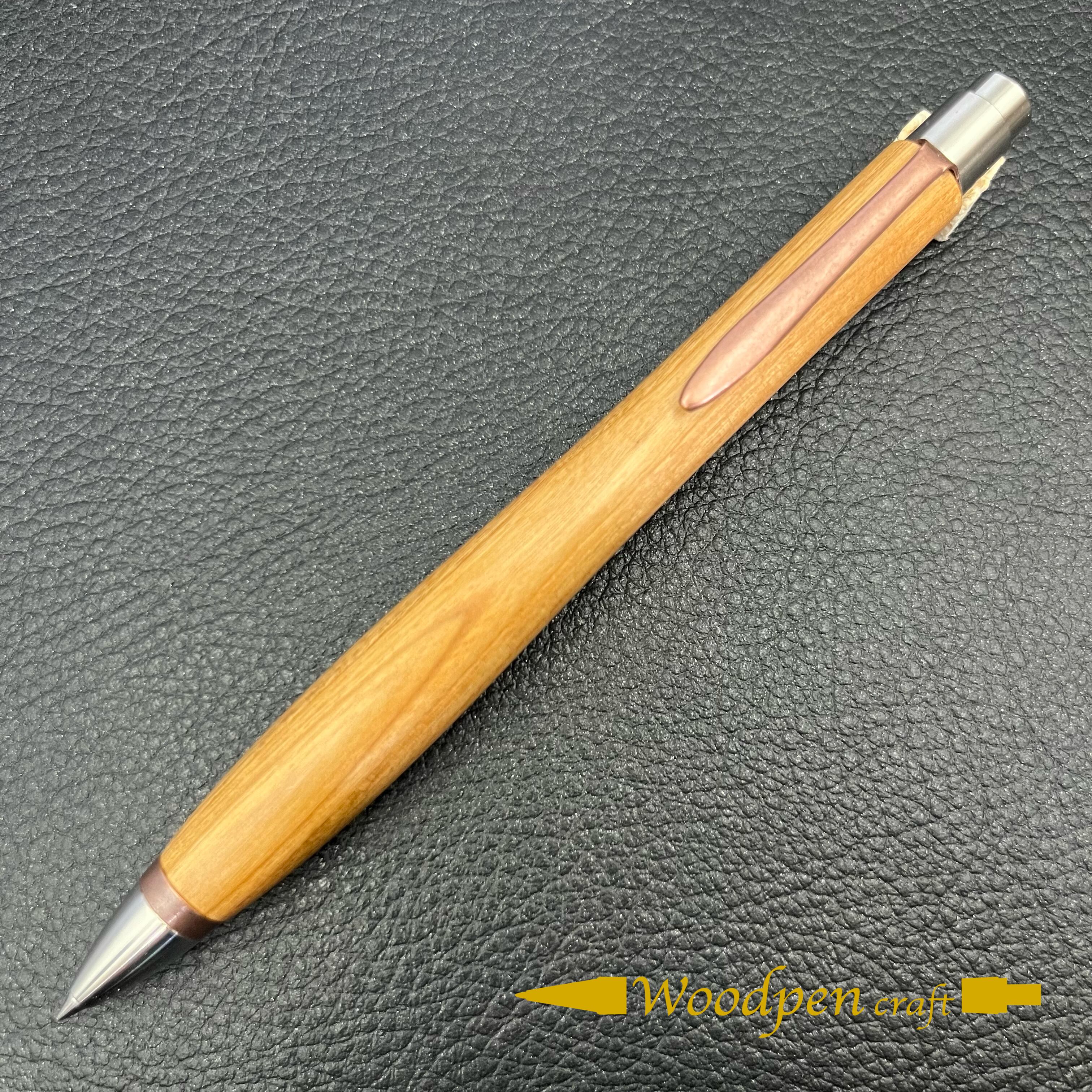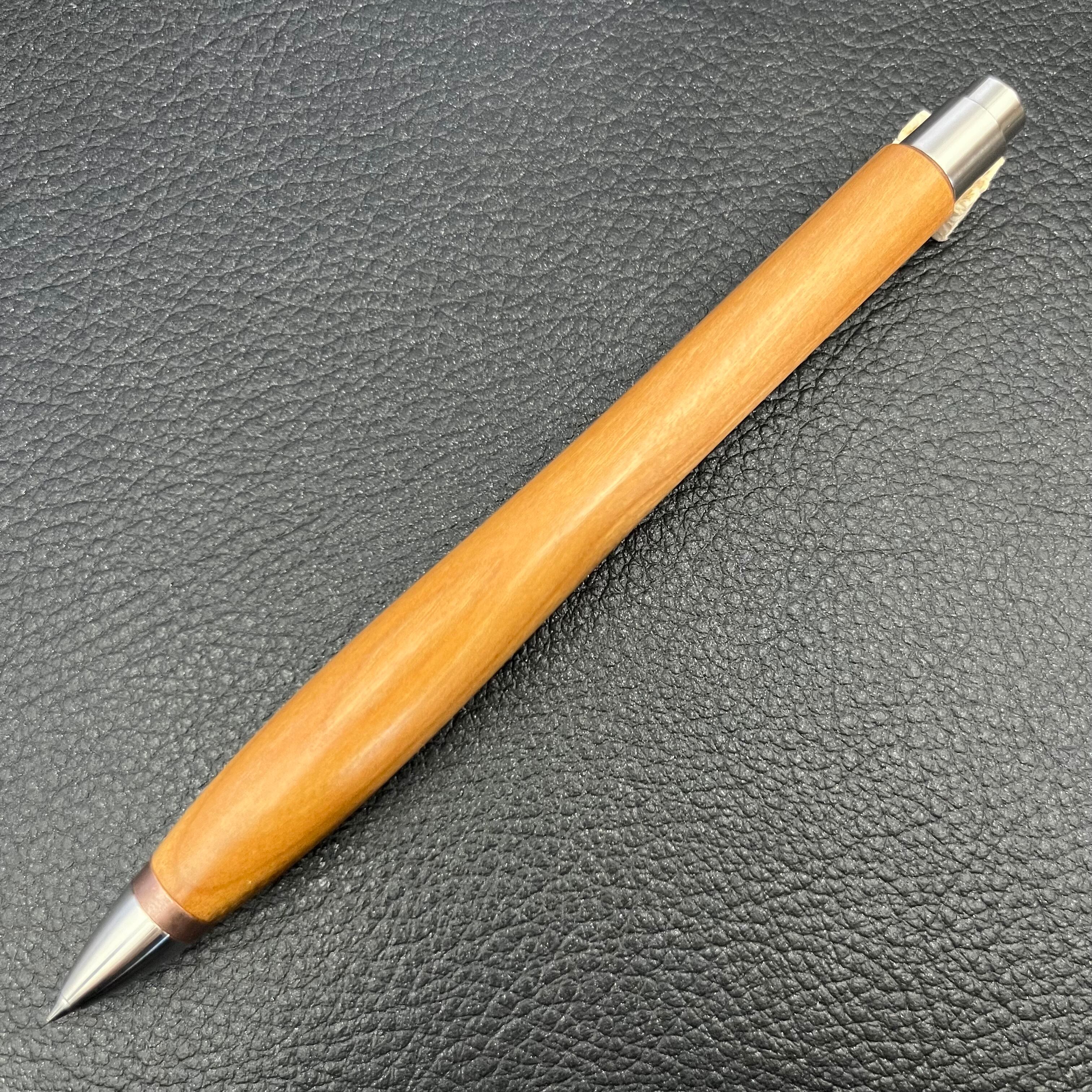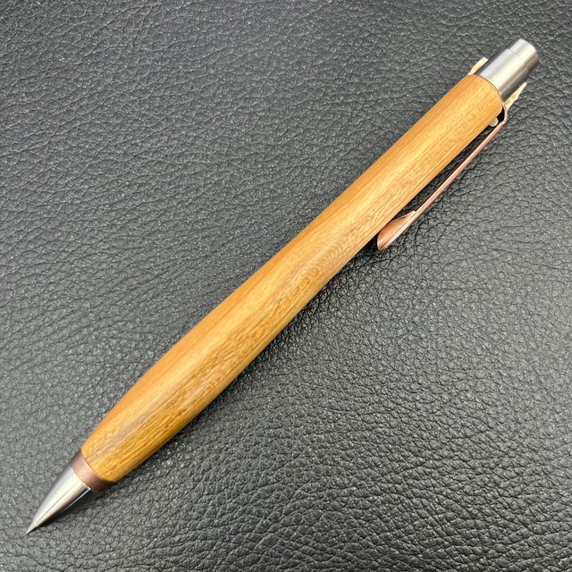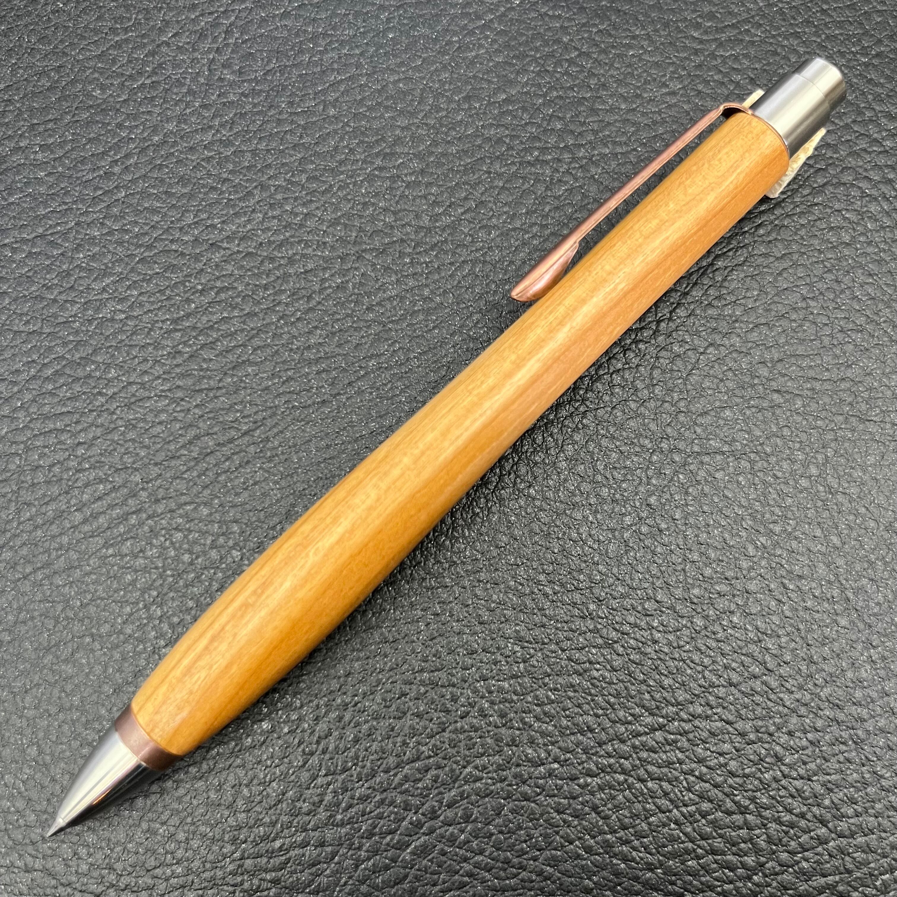 ボールペンのノックシステムは、ドイツ最高のクリックメカニズムを採用してあります。このメカニズムはユニークな機構のため、クリックしたときのカチカチ音が静かで、どんな場所でも気兼ねなく使うことができます。滑らかに動くこのプッシュ感覚を一度味わうと他には戻れなくなってしまうほどの魅力があります。 100分の1単位の加工精度で削り出されたペン先は、軸ブレも全くありません。
