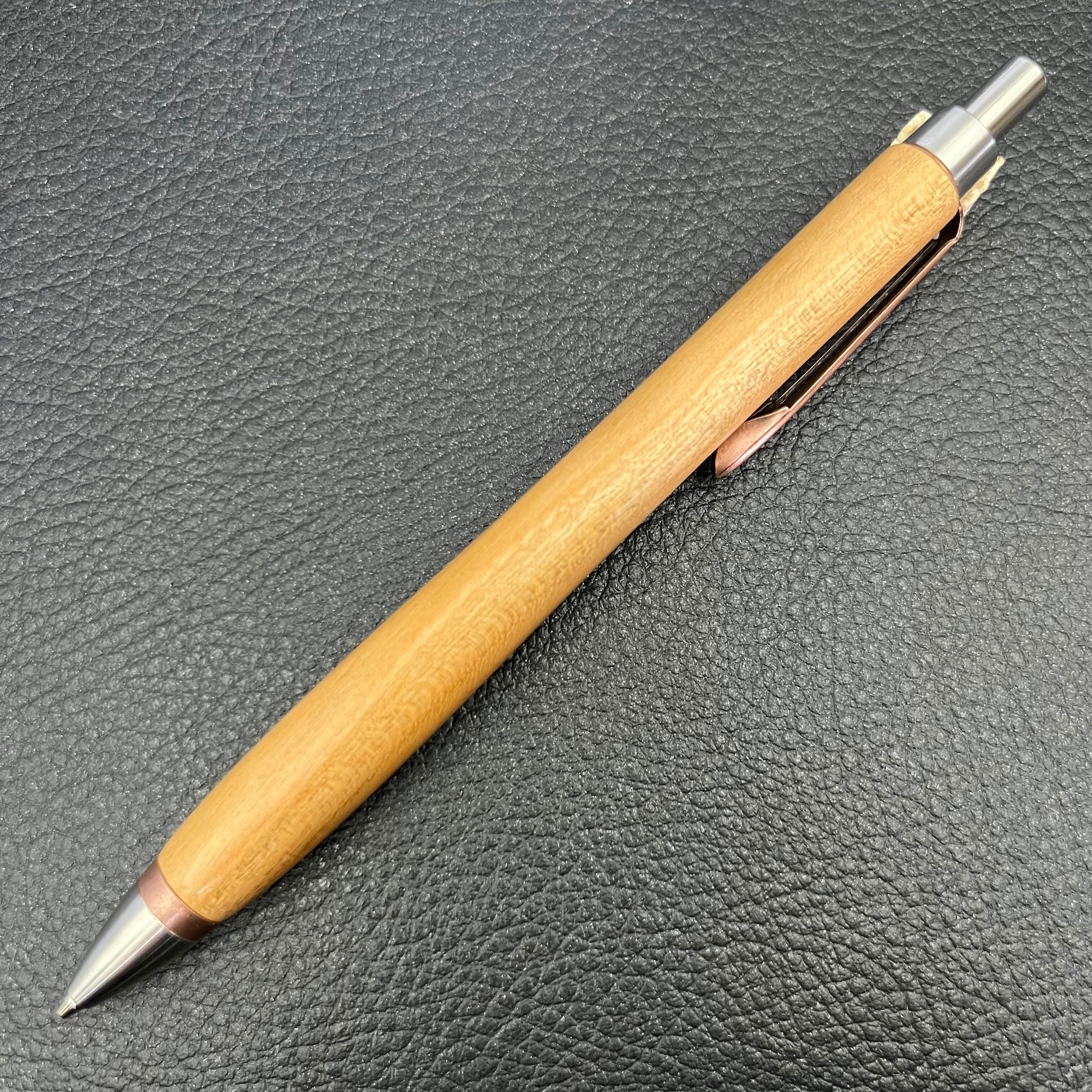 ペンシルは軸ブレが起こりにくい固定式口金を採用し、木の表情を最大限に楽しめる木軸の長さと、書き心地にこだわったバランスで金具を設計してあります。