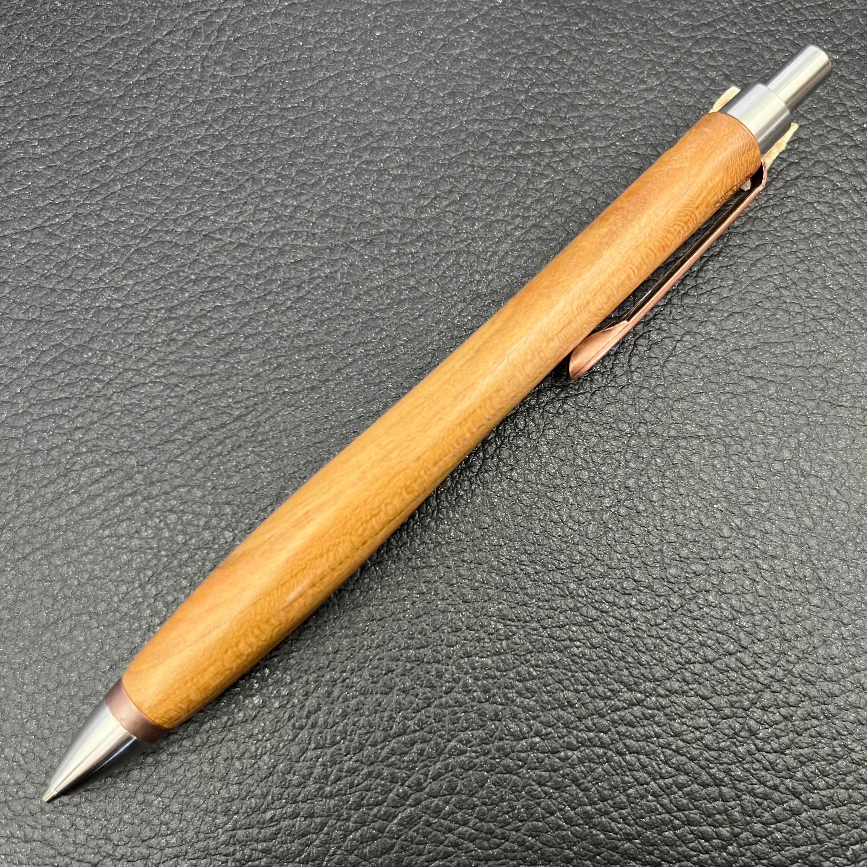 ペンシルは軸ブレが起こりにくい固定式口金を採用し、木の表情を最大限に楽しめる木軸の長さと、書き心地にこだわったバランスで金具を設計してあります。