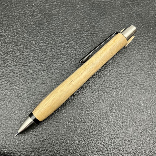 ボールペンのノックシステムは、ドイツ最高のクリックメカニズムを採用してあります。このメカニズムはユニークな機構のため、クリックしたときのカチカチ音が静かで、どんな場所でも気兼ねなく使うことができます。滑らかに動くこのプッシュ感覚を一度味わうと他には戻れなくなってしまうほどの魅力があります。 高級ステンレス材を100分の1単位の加工精度で削り出された口金により芯ブレも全くありません。内部のアルミを使ったリフィルアダプターもオリジナルです。