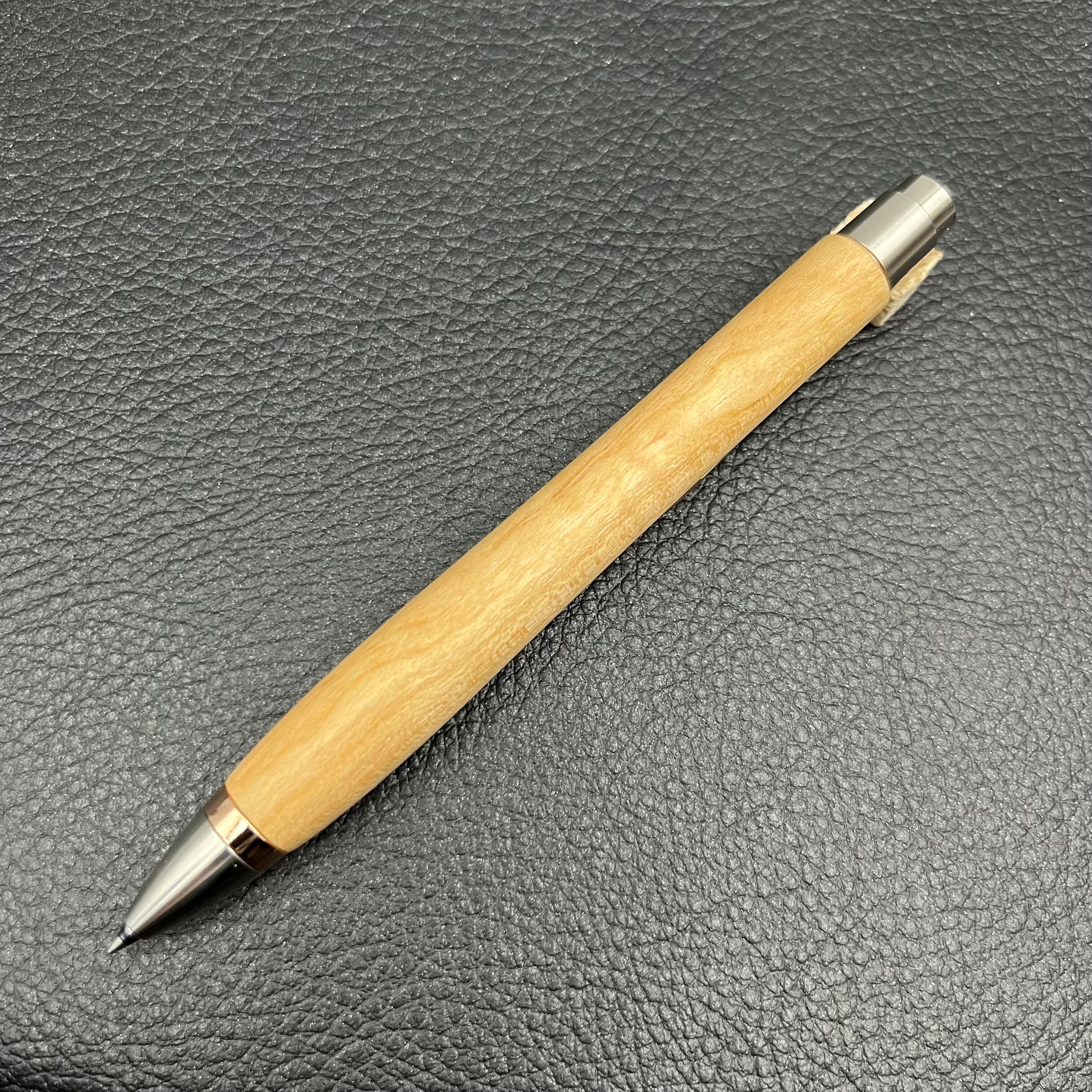 ボールペンのノックシステムは、ドイツ最高のクリックメカニズムを採用してあります。このメカニズムはユニークな機構のため、クリックしたときのカチカチ音が静かで、どんな場所でも気兼ねなく使うことができます。滑らかに動くこのプッシュ感覚を一度味わうと他には戻れなくなってしまうほどの魅力があります。 高級ステンレス材を100分の1単位の加工精度で削り出された口金により芯ブレも全くありません。内部のアルミを使ったリフィルアダプターもオリジナルです。