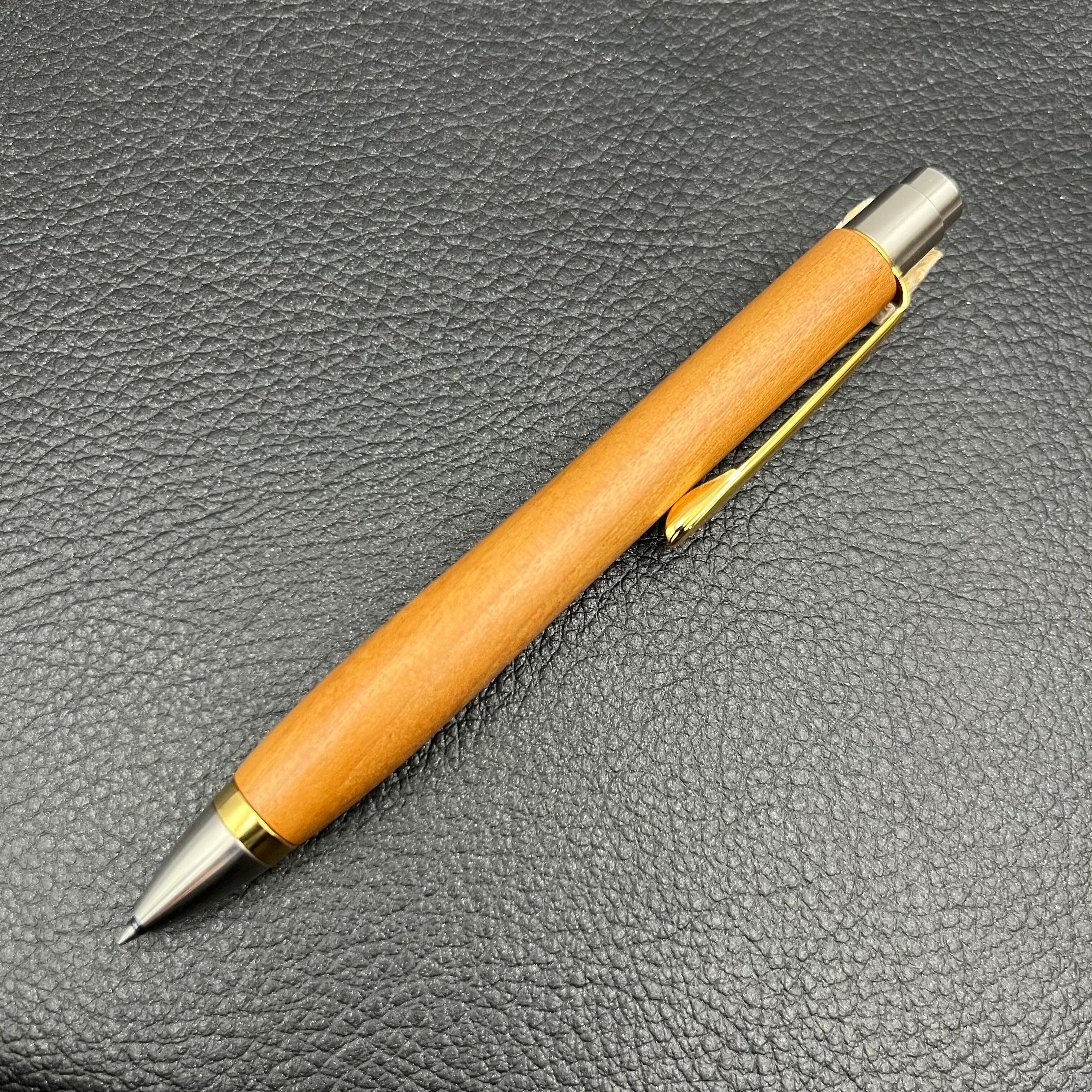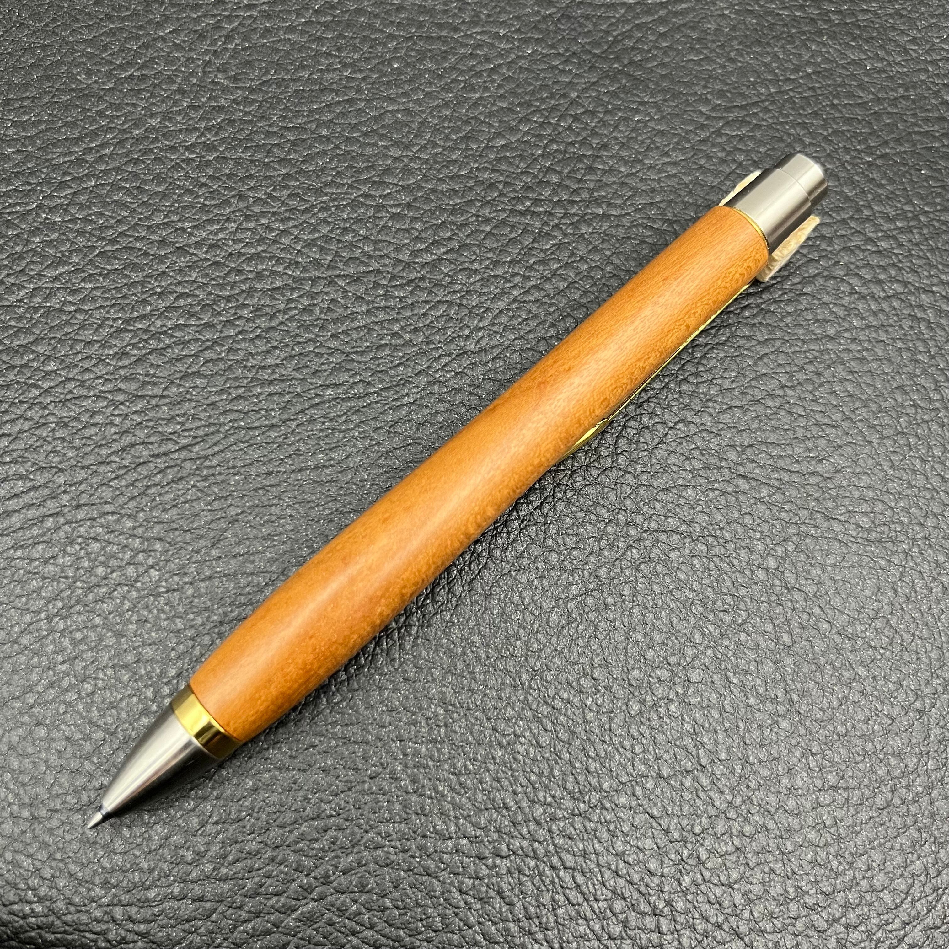 ボールペンのノックシステムは、ドイツ最高のクリックメカニズムを採用してあります。このメカニズムはユニークな機構のため、クリックしたときのカチカチ音が静かで、どんな場所でも気兼ねなく使うことができます。滑らかに動くこのプッシュ感覚を一度味わうと他には戻れなくなってしまうほどの魅力があります。 高級ステンレス材を100分の1単位の加工精度で削り出された口金により芯ブレも全くありません。内部のアルミを使ったリフィルアダプターもオリジナルです。