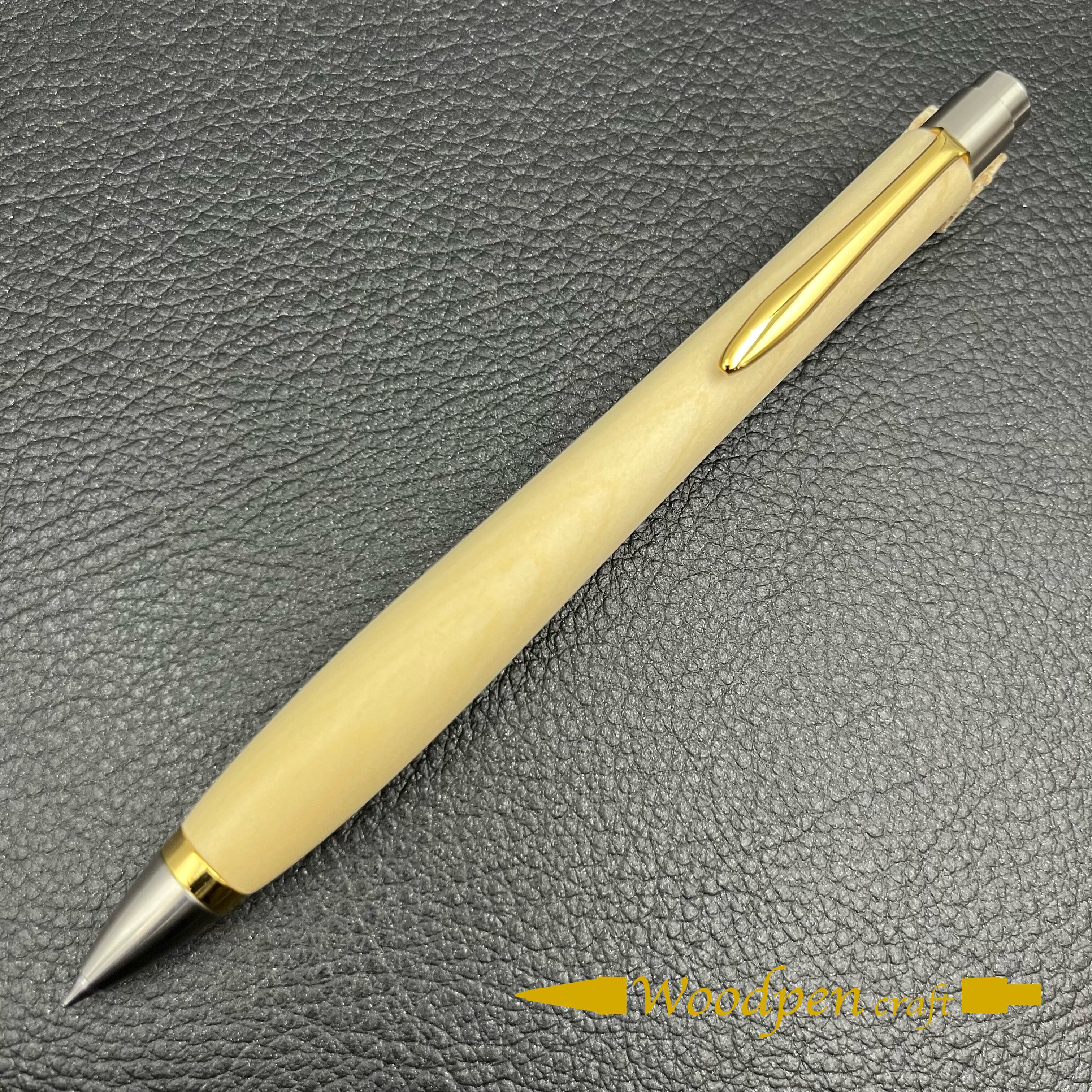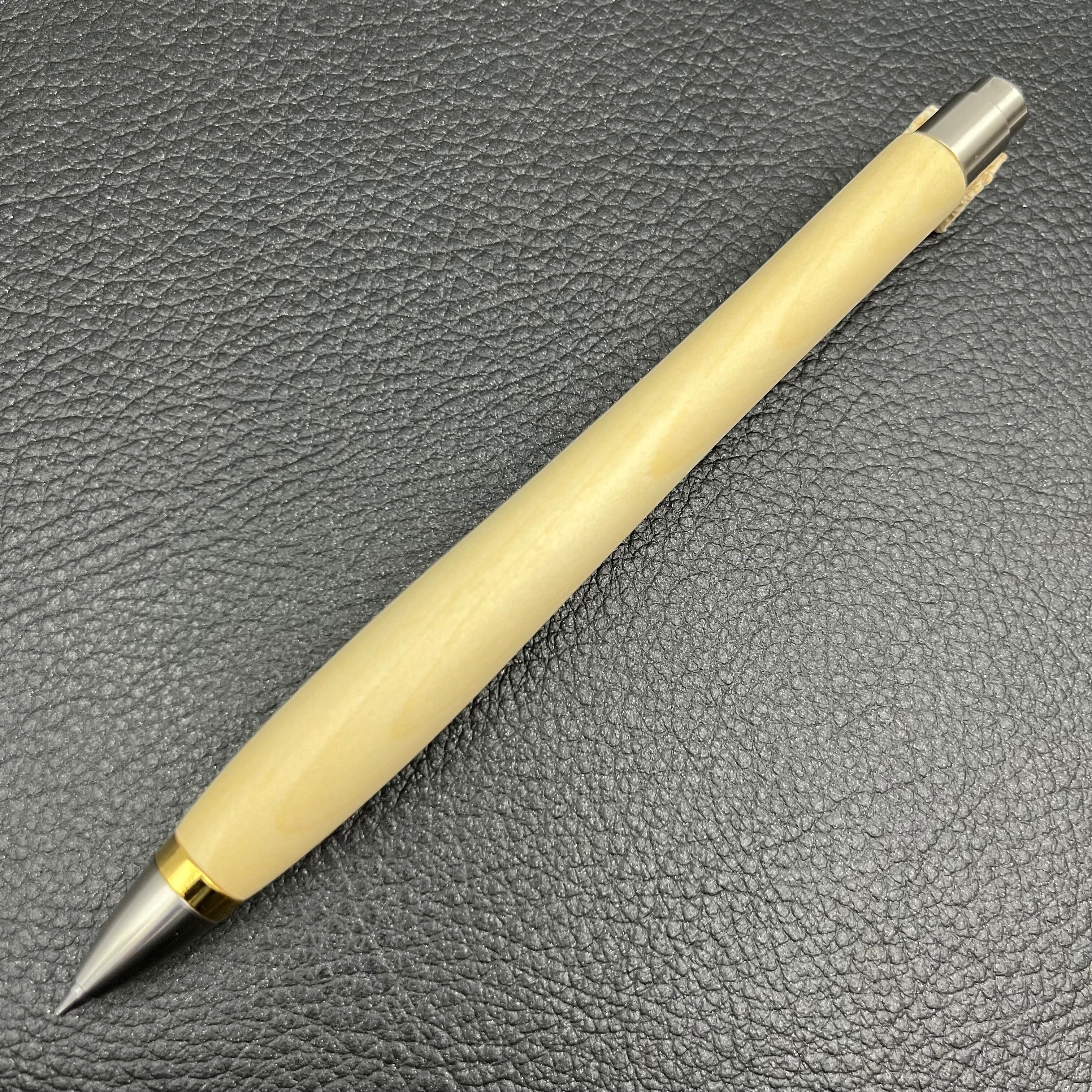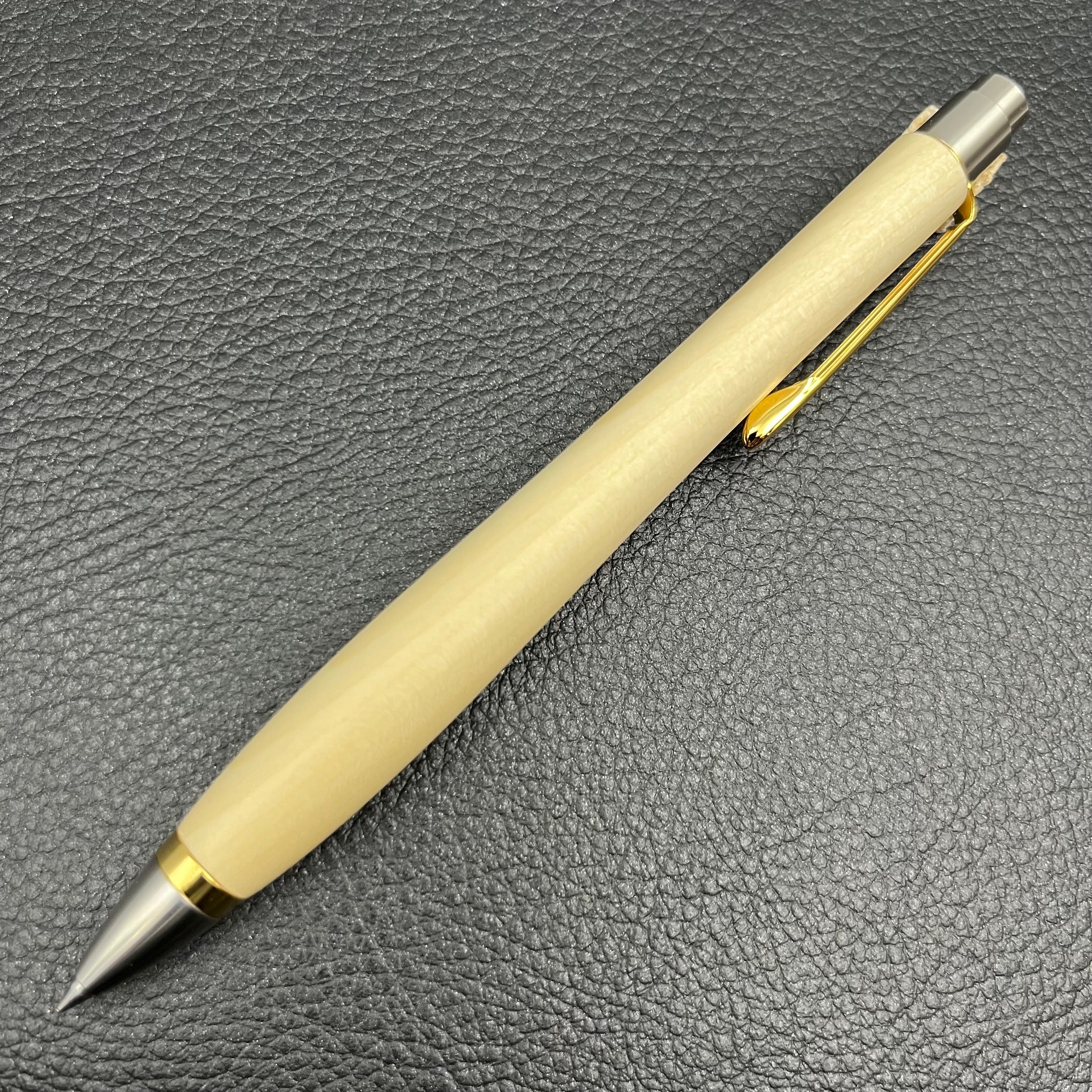 ボールペンのノックシステムは、ドイツ最高のクリックメカニズムを採用してあります。このメカニズムはユニークな機構のため、クリックしたときのカチカチ音が静かで、どんな場所でも気兼ねなく使うことができます。滑らかに動くこのプッシュ感覚を一度味わうと他には戻れなくなってしまうほどの魅力があります。 100分の1単位の加工精度で削り出されたペン先は、軸ブレも全くありません。