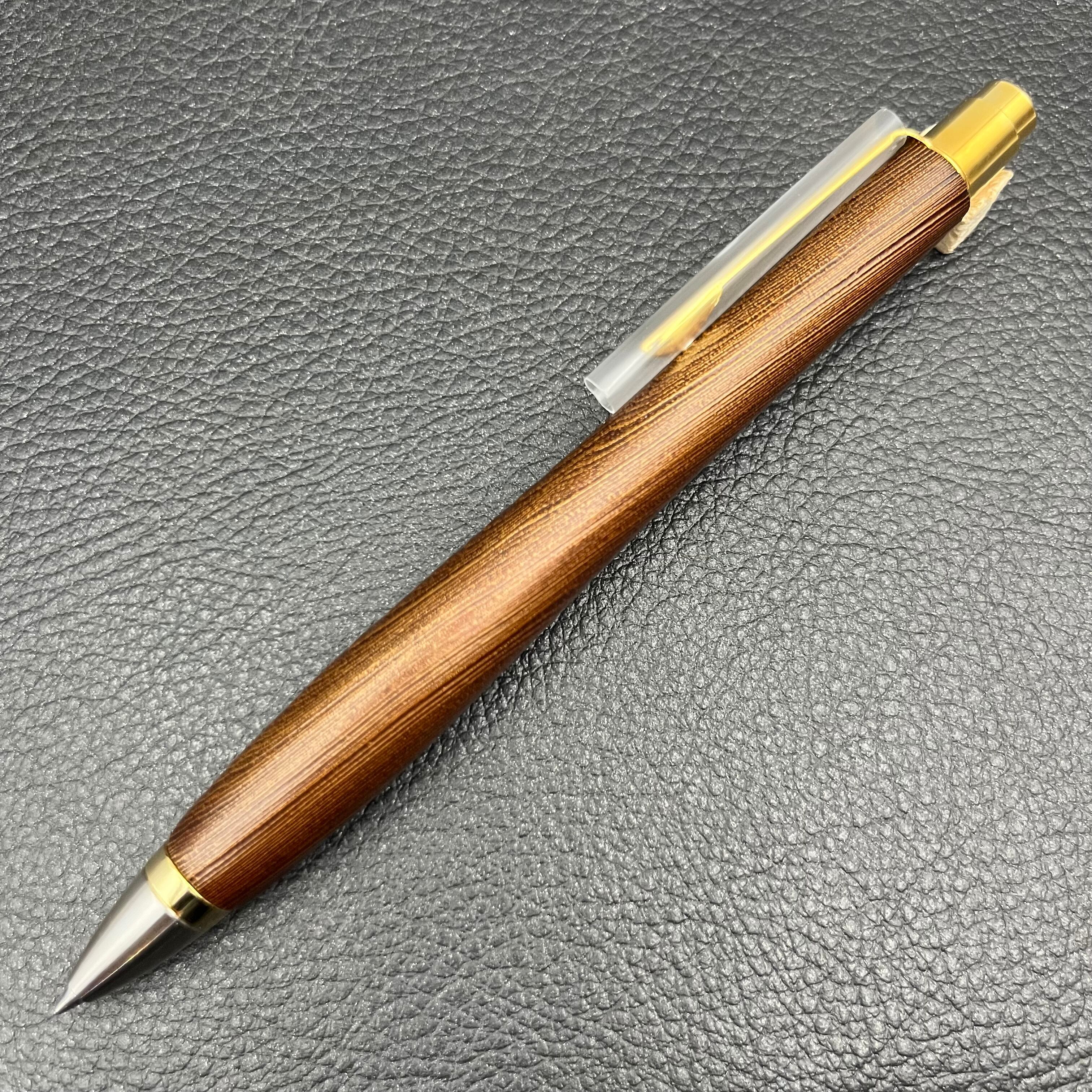 ※大阪の漆塗り職人さんの技術で浮造りした屋久杉に約1.77gの金粉を定着させ、国産生漆に染料を加えて金粉の発色を活かすことで、梨の肌のような仕上がりになっています。ノックは限定カラーのゴールドが付きます。このノックは、金メッキが取れますので研磨剤などでは磨かないようにして下さい。