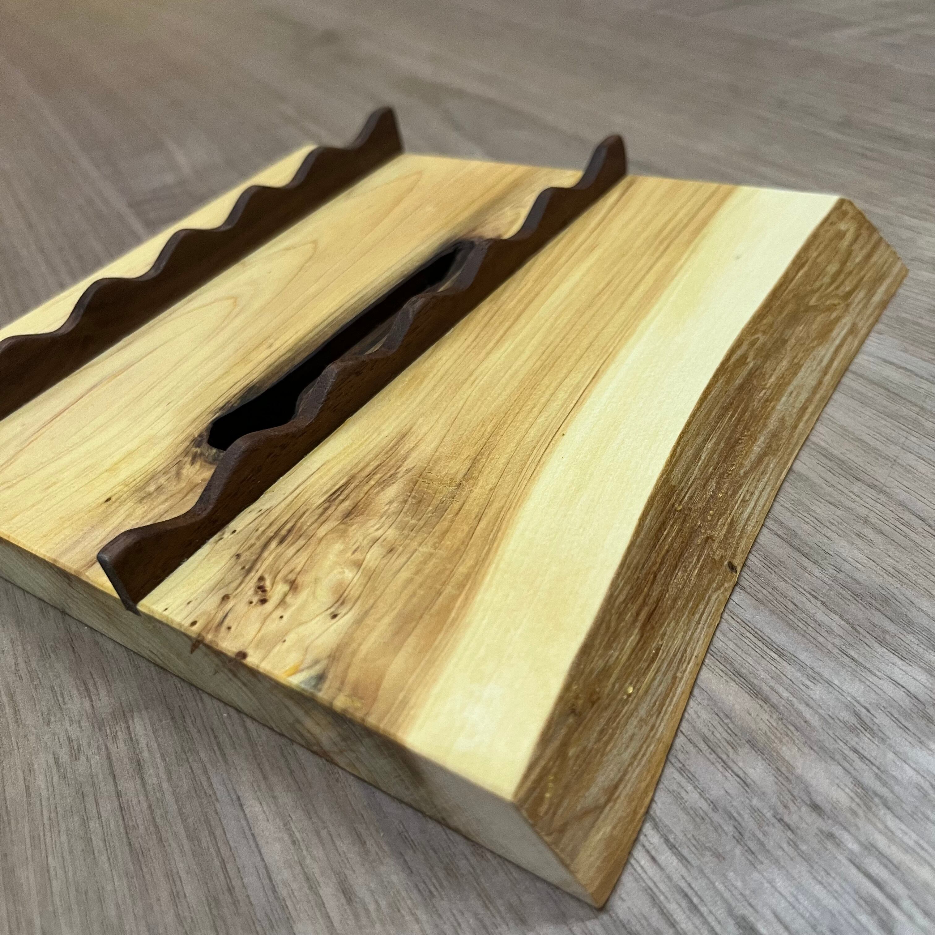 デスクの上でペンを6本飾ることができる、木の温かみや表情をそのまま活かした6本置きペントレイです。ペンを優しく支えれるように白い曲線部分はメイプルを加工しています。