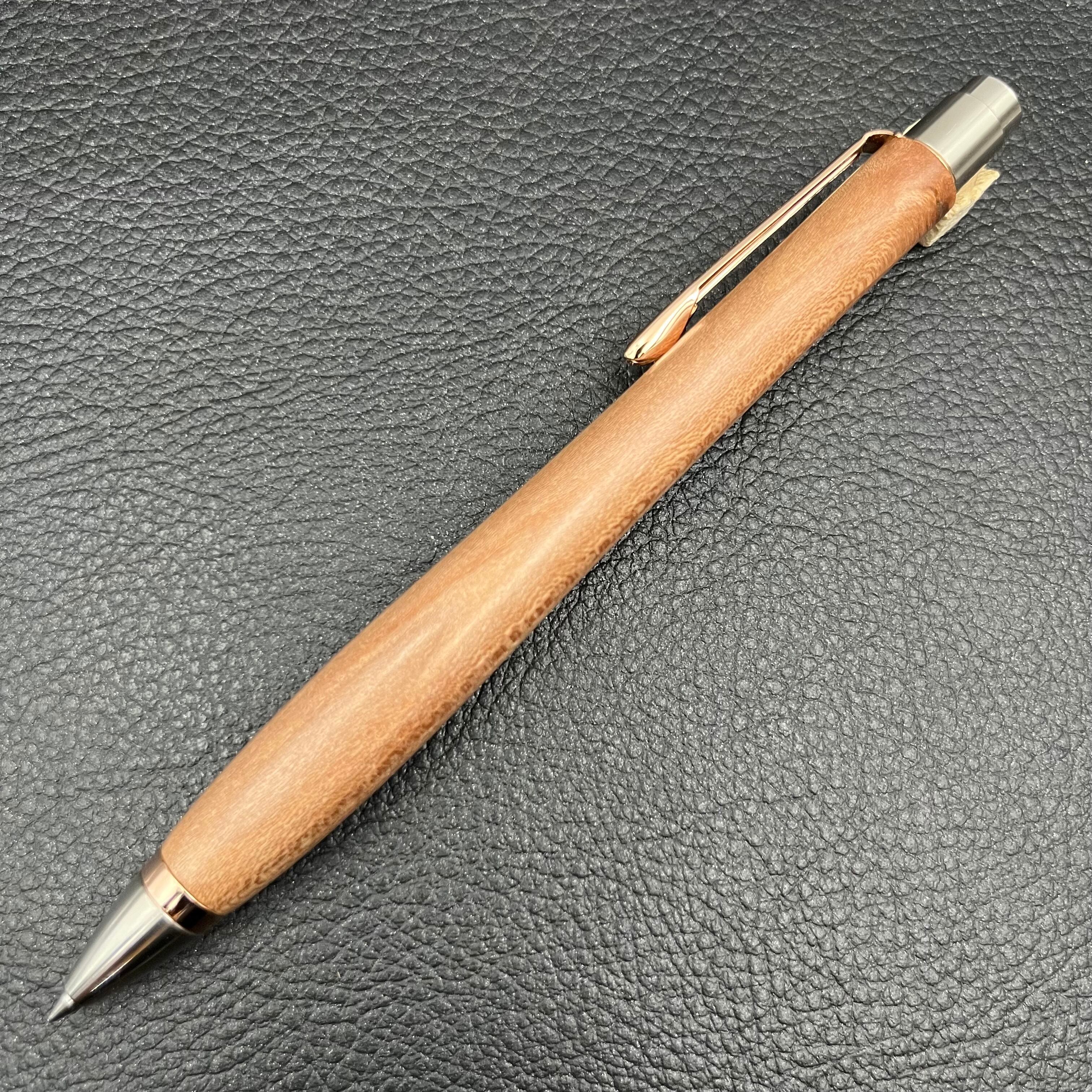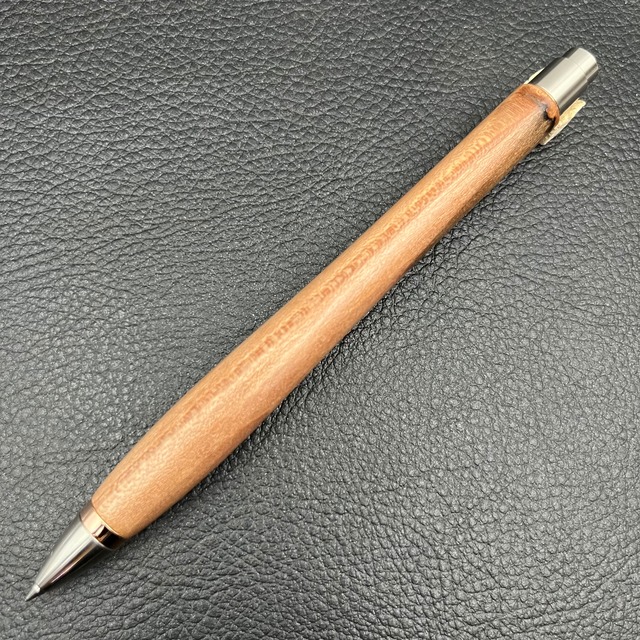 ボールペンのノックシステムは、ドイツ最高のクリックメカニズムを採用してあります。このメカニズムはユニークな機構のため、クリックしたときのカチカチ音が静かで、どんな場所でも気兼ねなく使うことができます。滑らかに動くこのプッシュ感覚を一度味わうと他には戻れなくなってしまうほどの魅力があります。 100分の1単位の加工精度で削り出されたペン先は、軸ブレも全くありません。