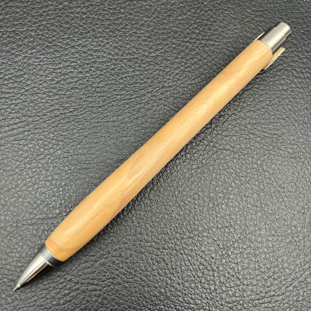 ボールペンのノックシステムは、ドイツ最高のクリックメカニズムを採用してあります。このメカニズムはユニークな機構のため、クリックしたときのカチカチ音が静かで、どんな場所でも気兼ねなく使うことができます。滑らかに動くこのプッシュ感覚を一度味わうと他には戻れなくなってしまうほどの魅力があります。 100分の1単位の加工精度で削り出されたペン先は、軸ブレも全くありません。